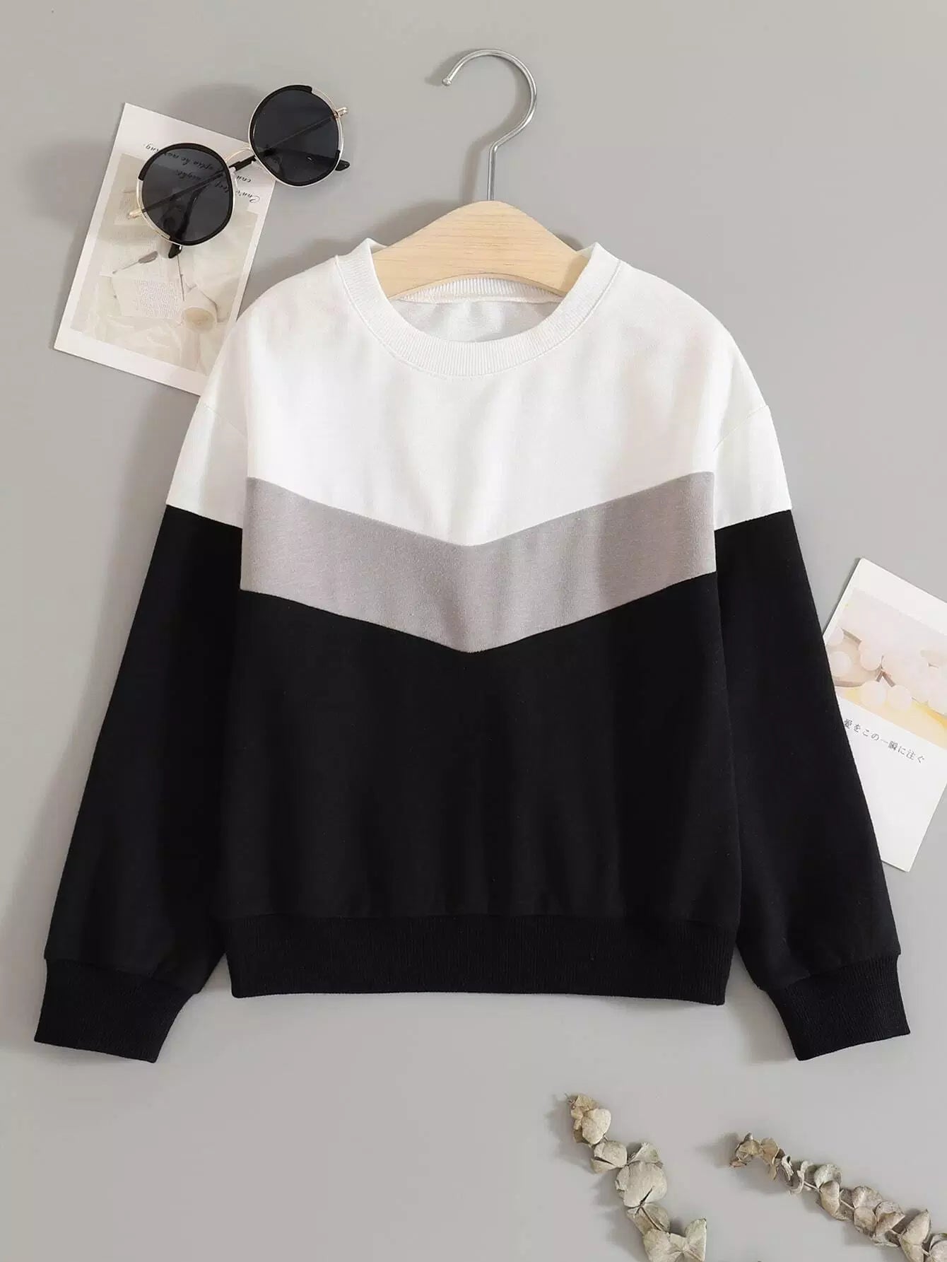 Toddler Girls Chevron Print Drop Shoulder Colorblock Sweatshirt