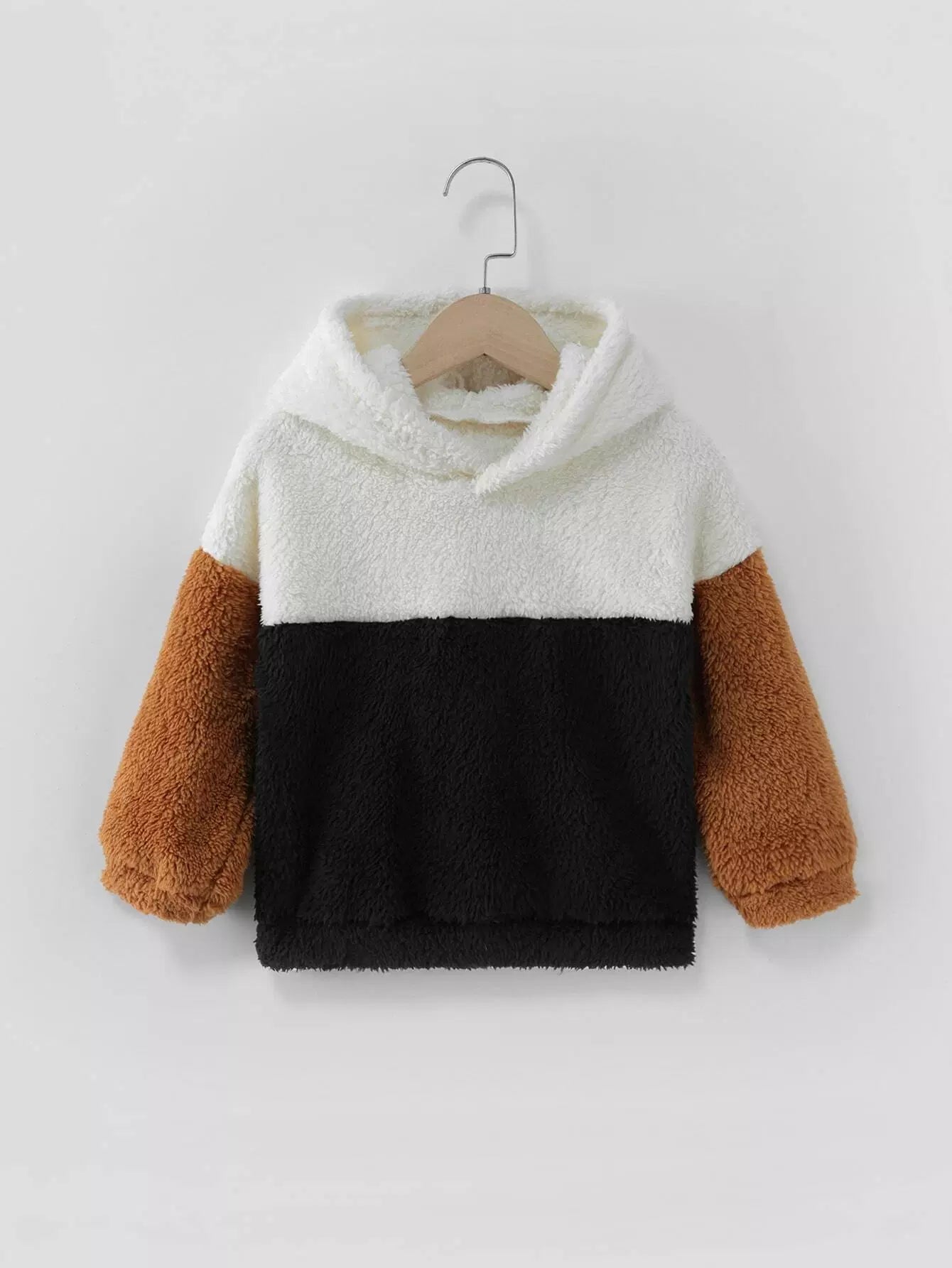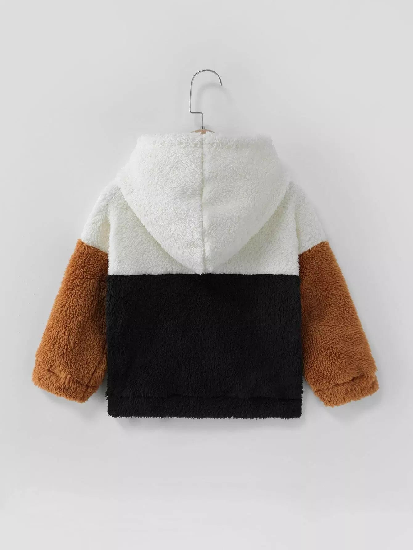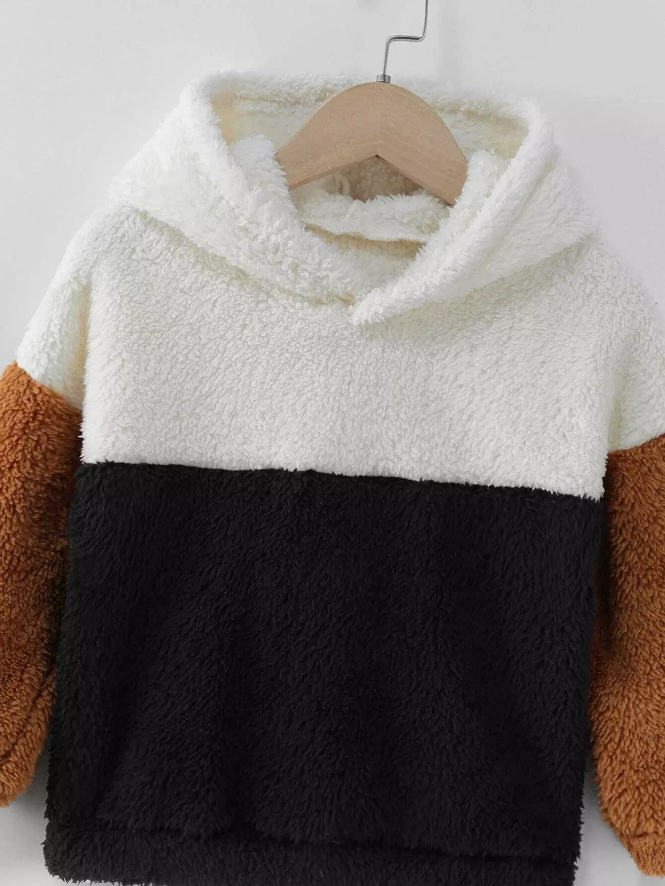 Toddler Girls Color Block Drop Shoulder Teddy Hoodie