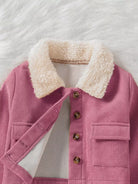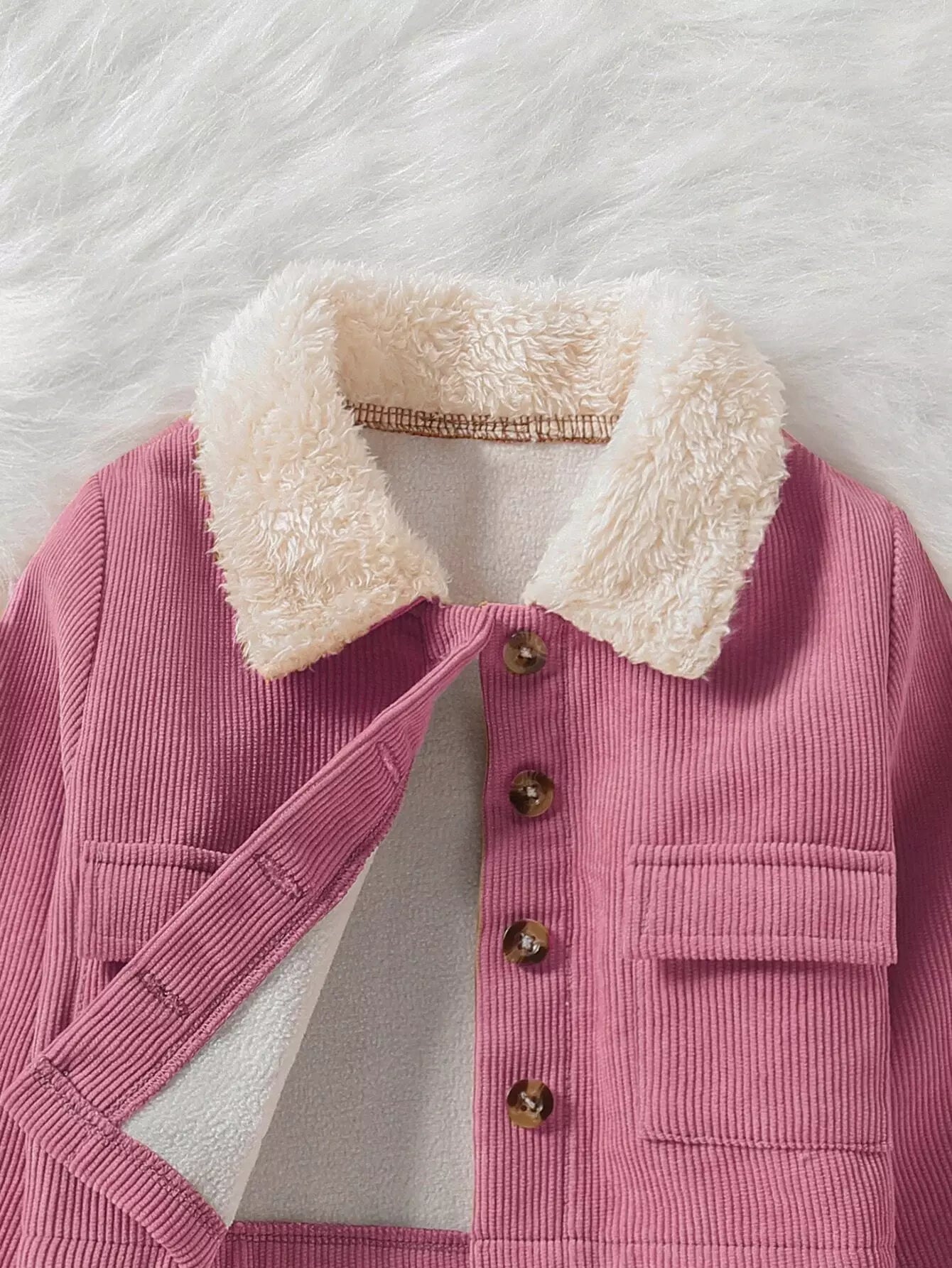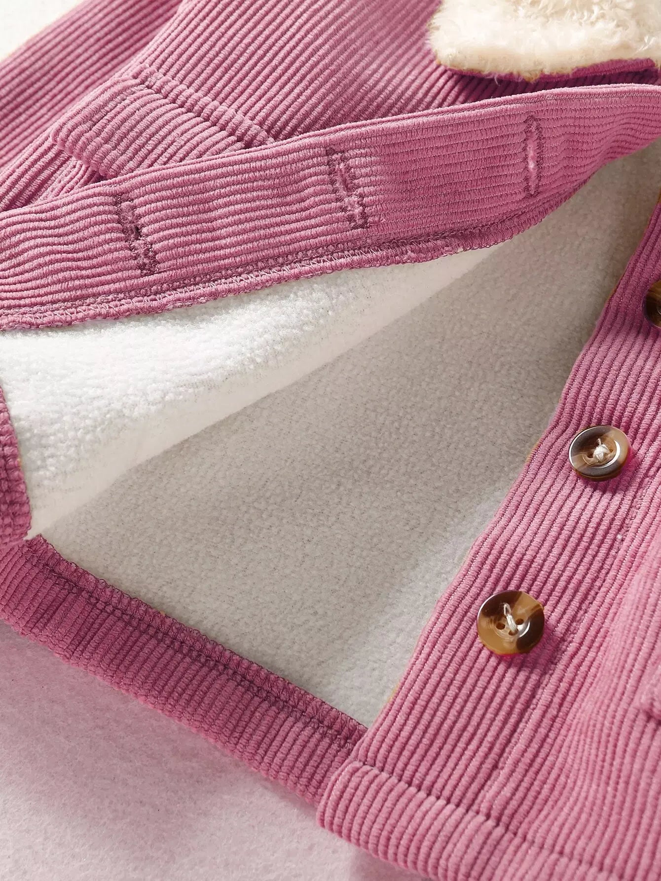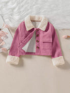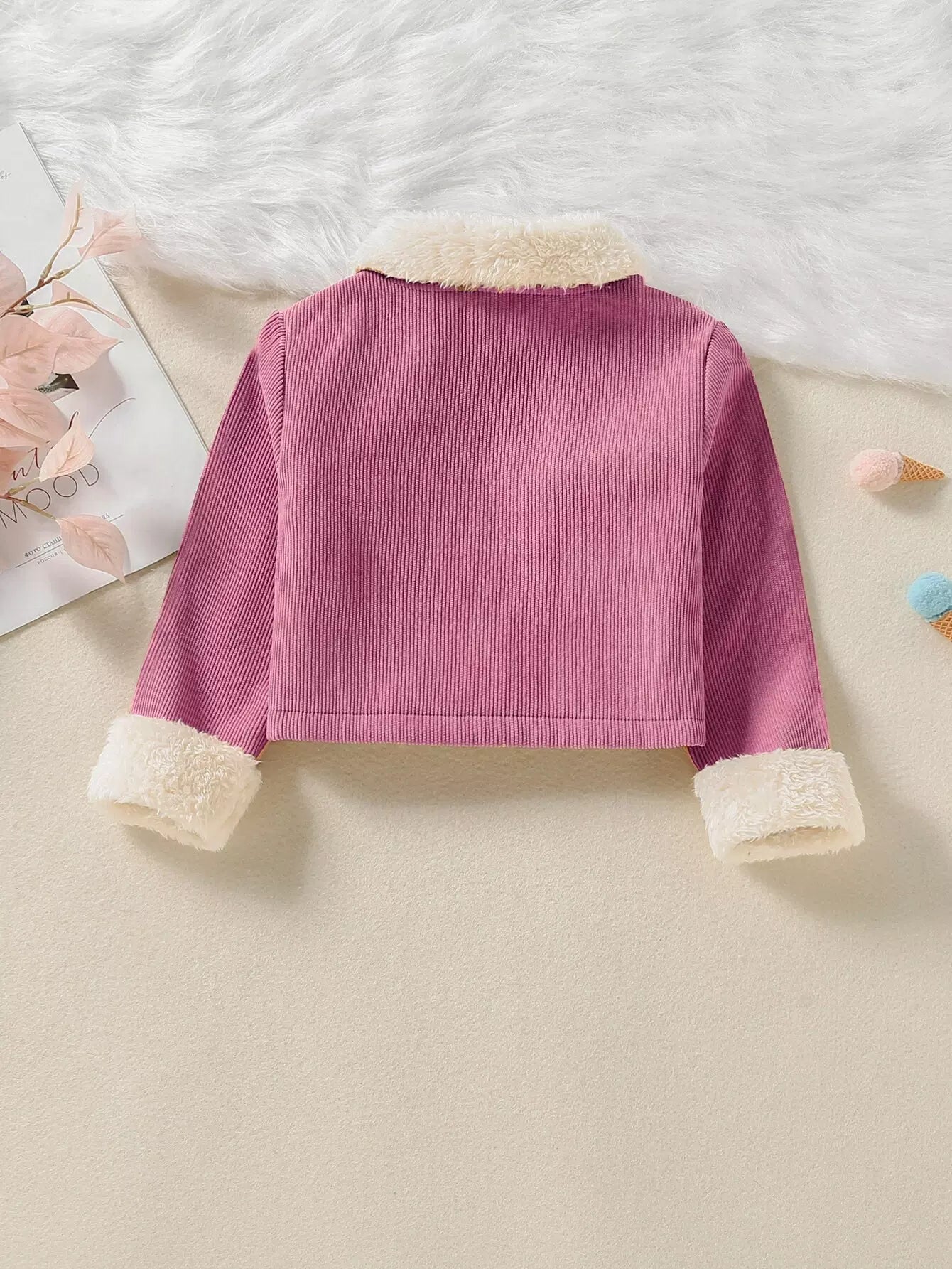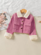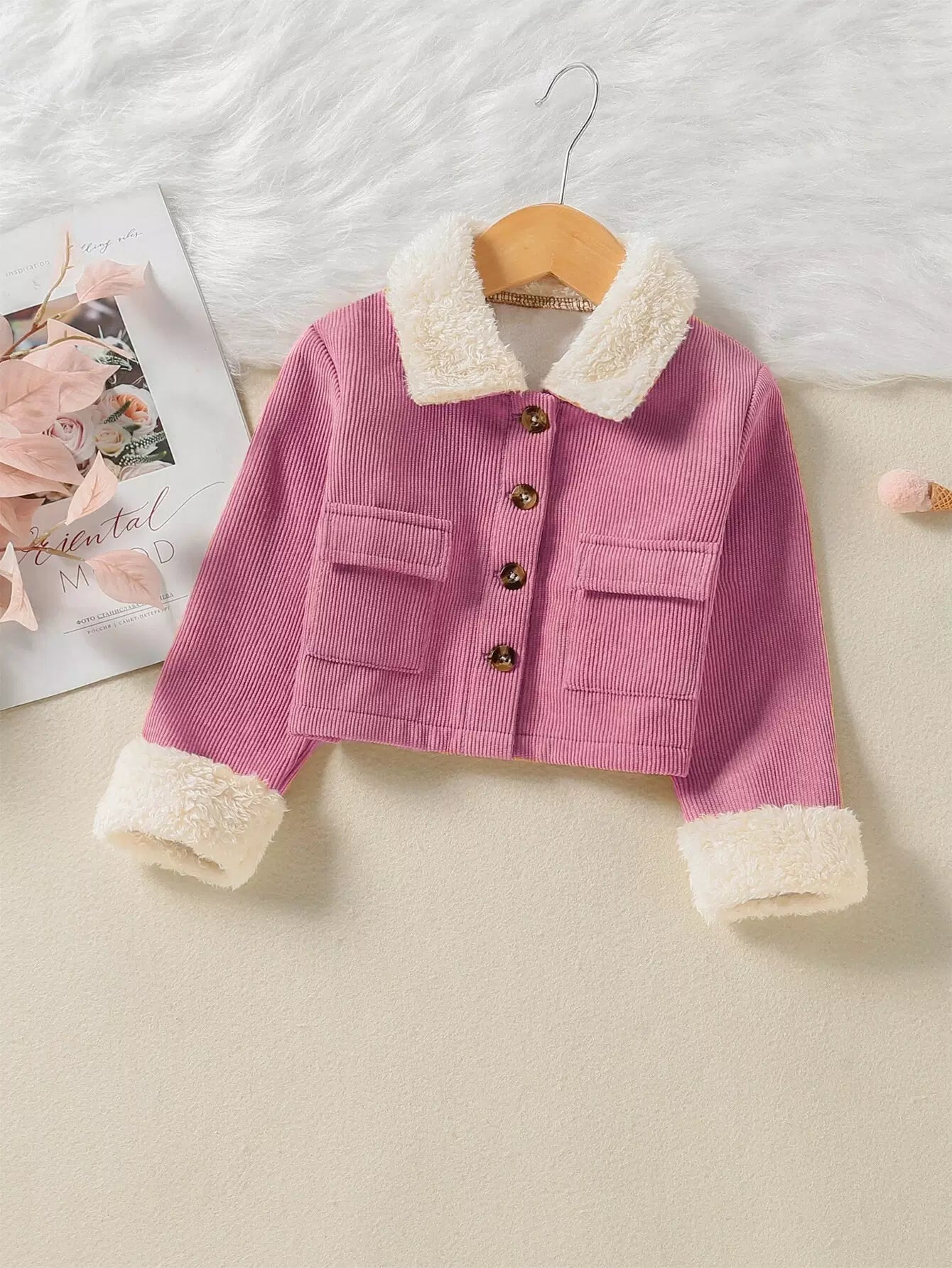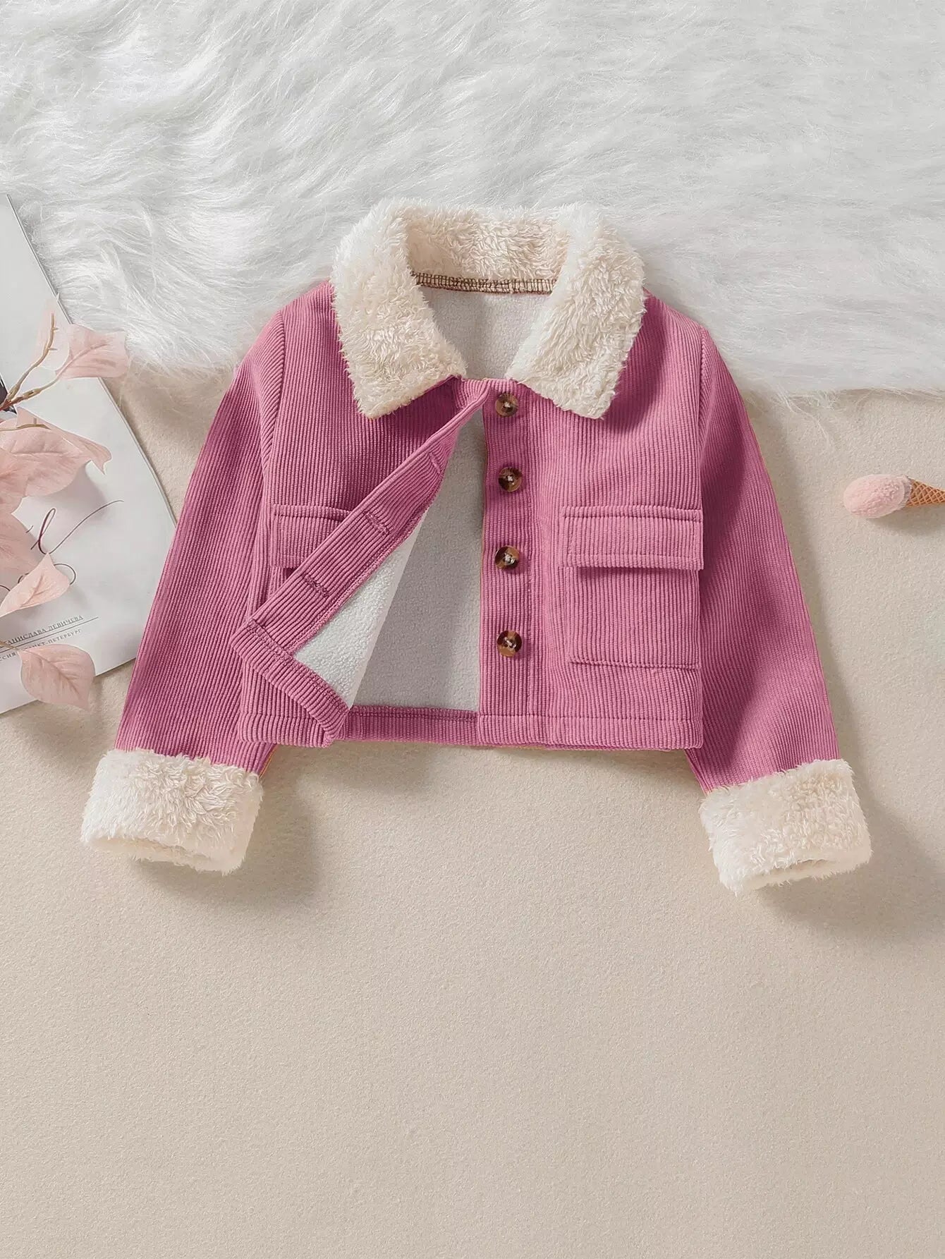 Toddler Girls Flap Pockets Single Breasted Borg Collar Lined Corduroy Jacket