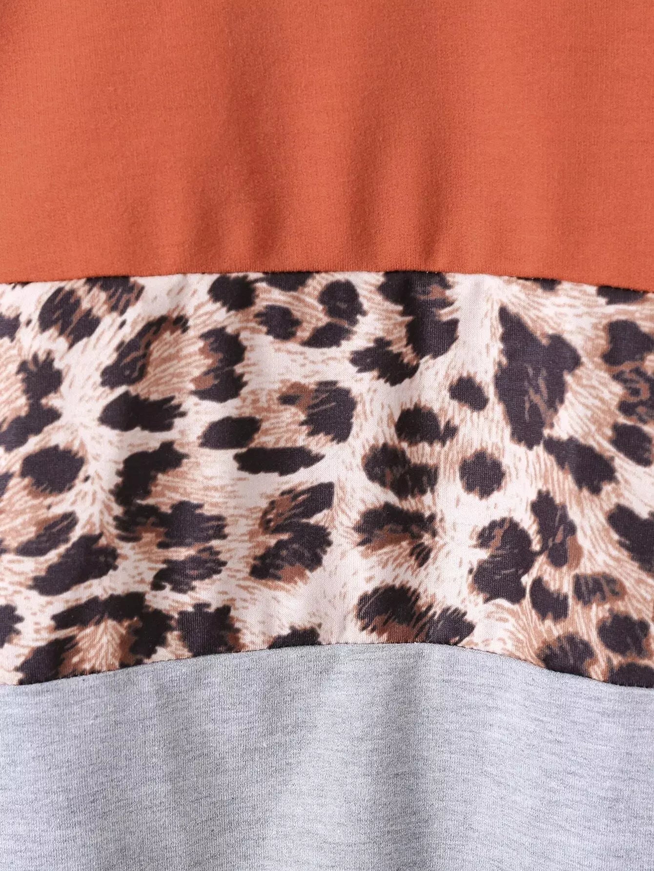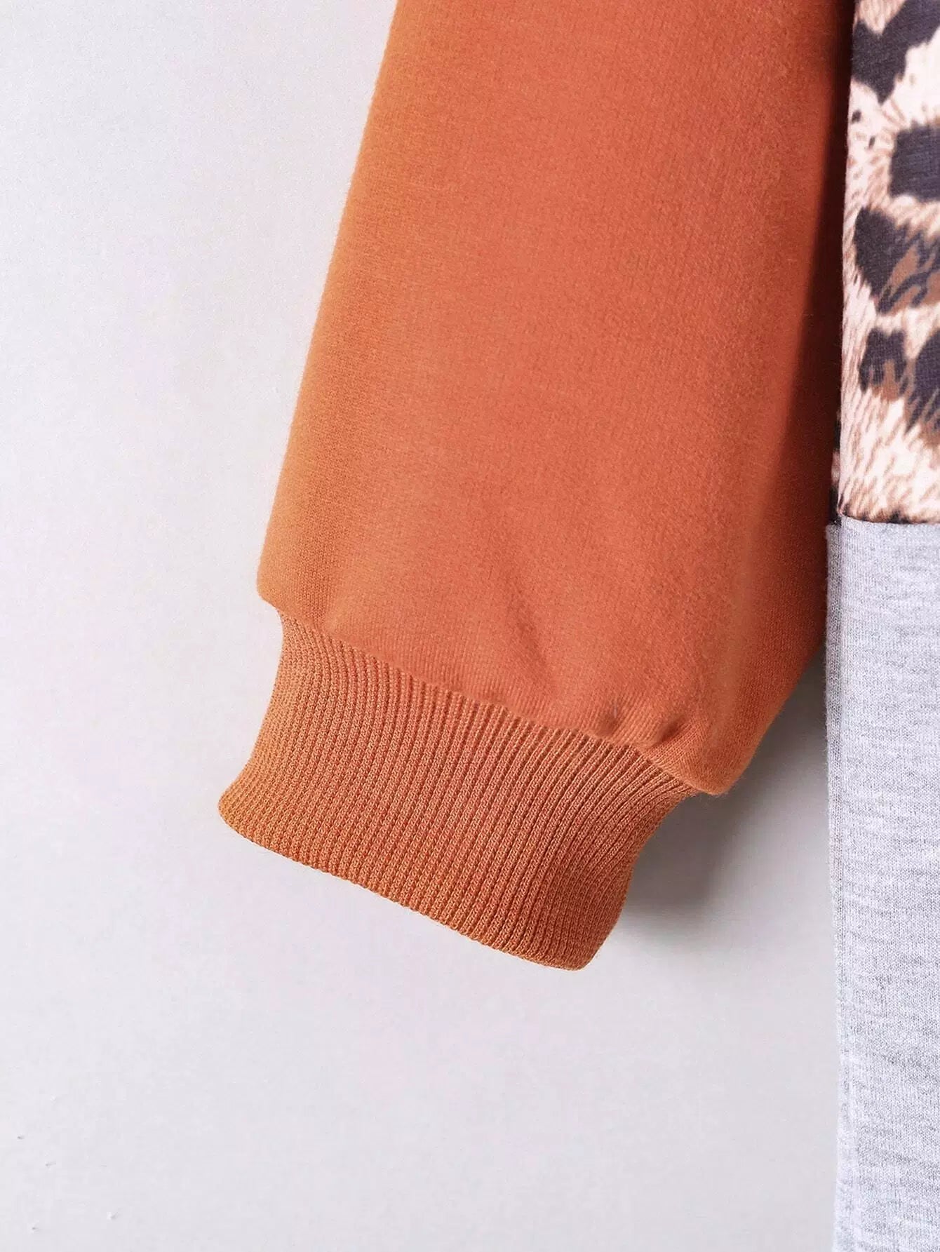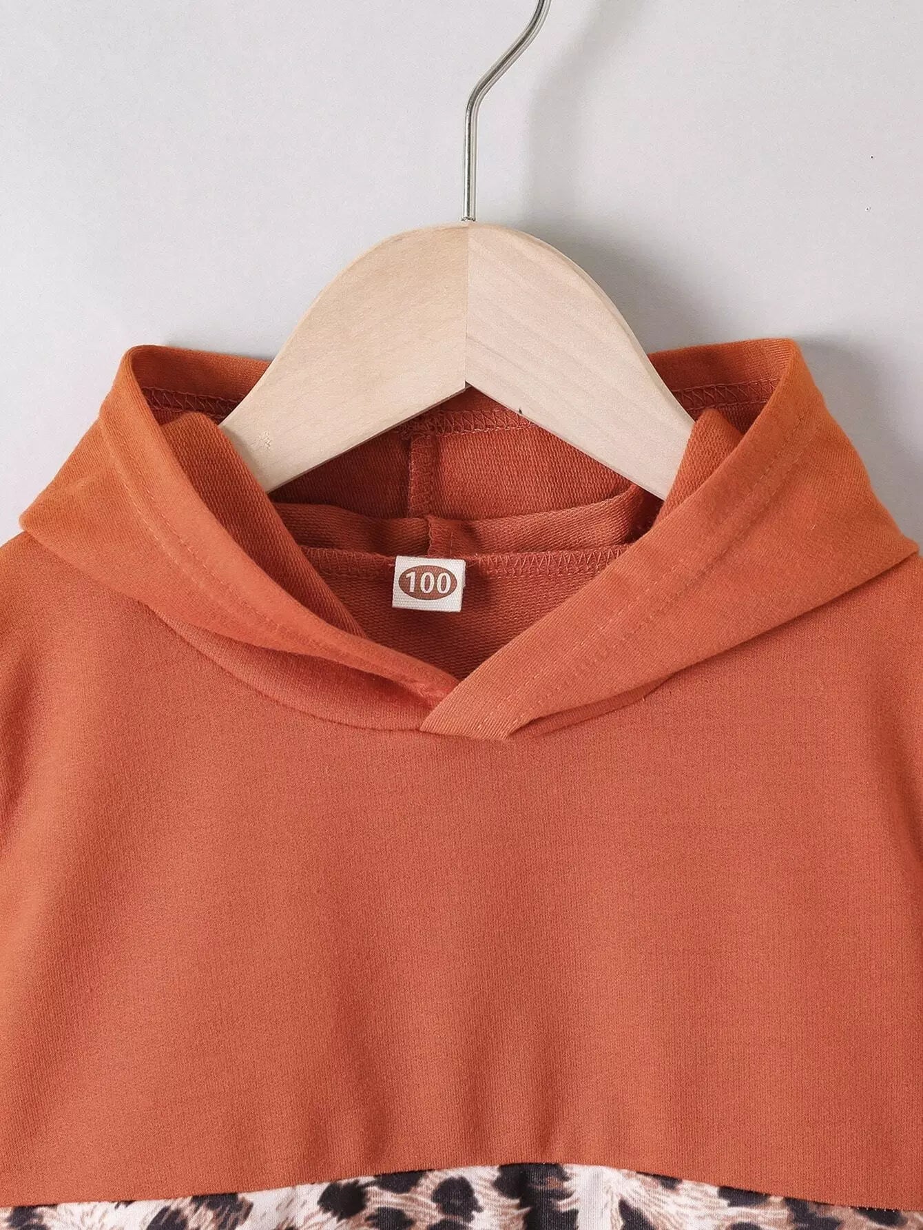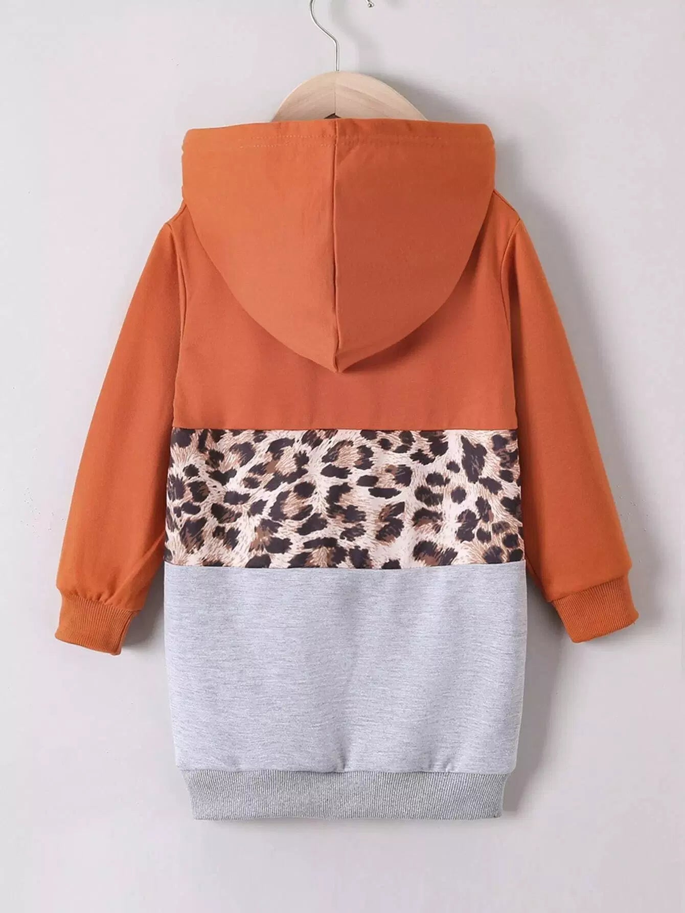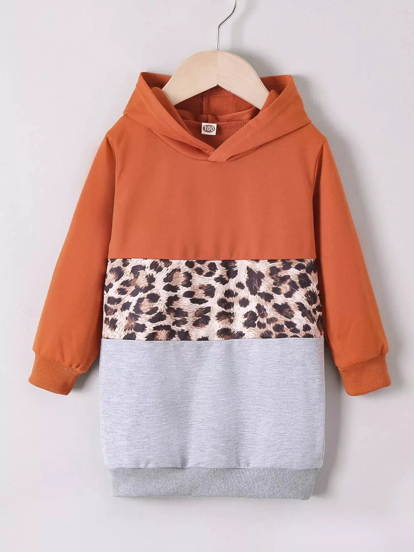 Toddler Girls Leopard Print Colorblock Hooded Sweatshirt Dress