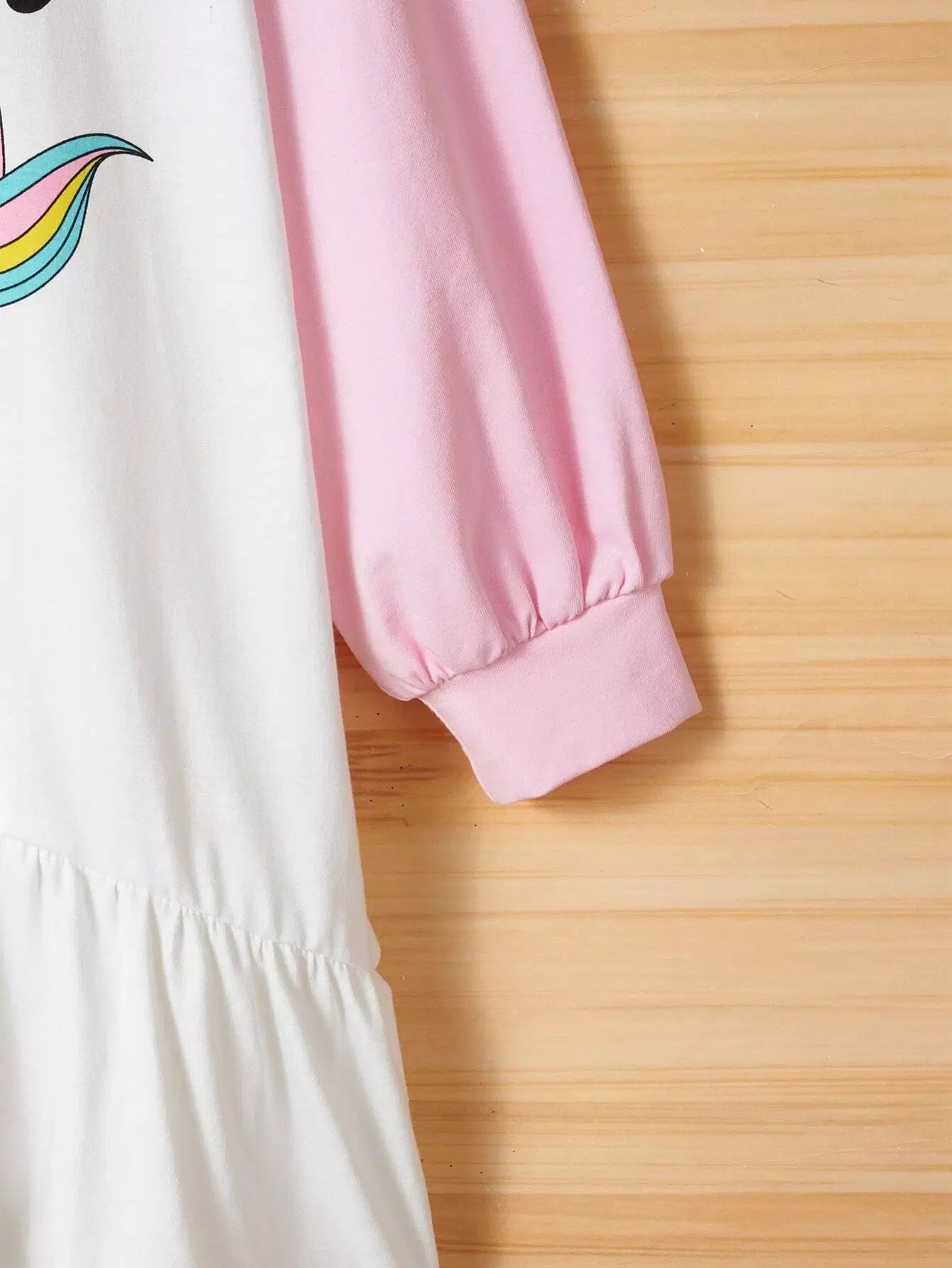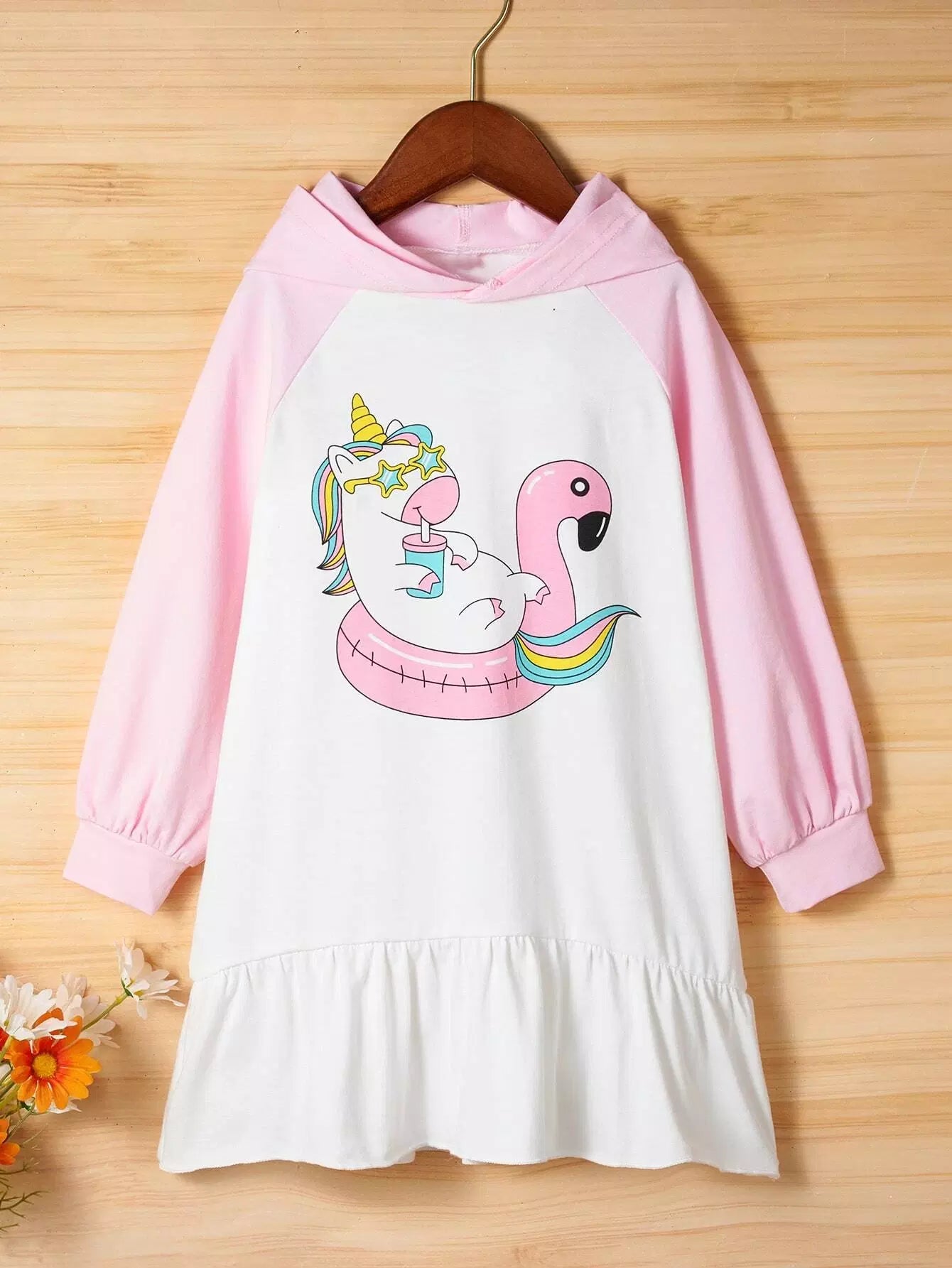 Toddler Girls Unicorn Print Raglan Sleeve Hoodie Dress