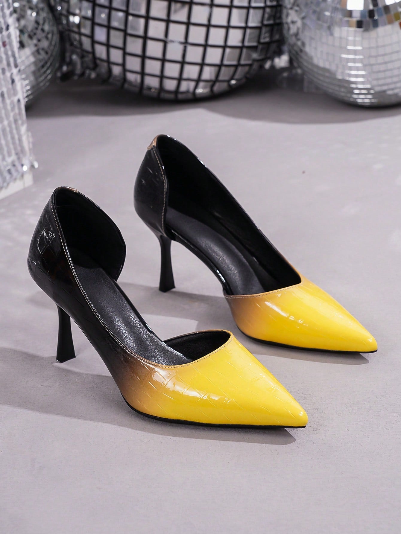 women Autumn/Winter New Plus Size Fashion Pointed Toe Side Hollow Yellow Patchwork Glossy Sexy Elegant Versatile Comfortable Women's Stilettos