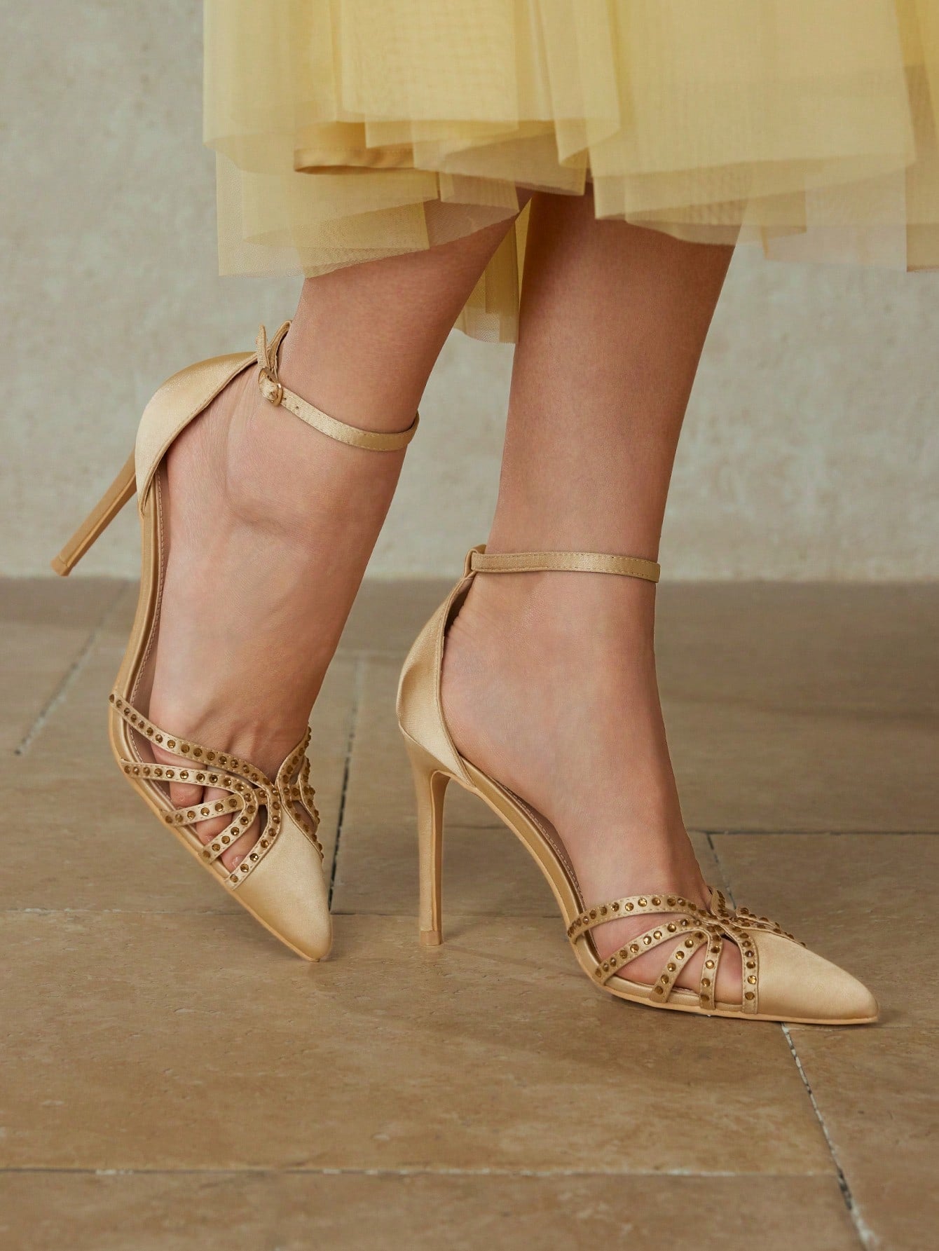 MOTF PREMIUM WOMEN'S FASHION RHINESTONE HOLLOW ANKLET STRAP HIGH HEEL SHOES