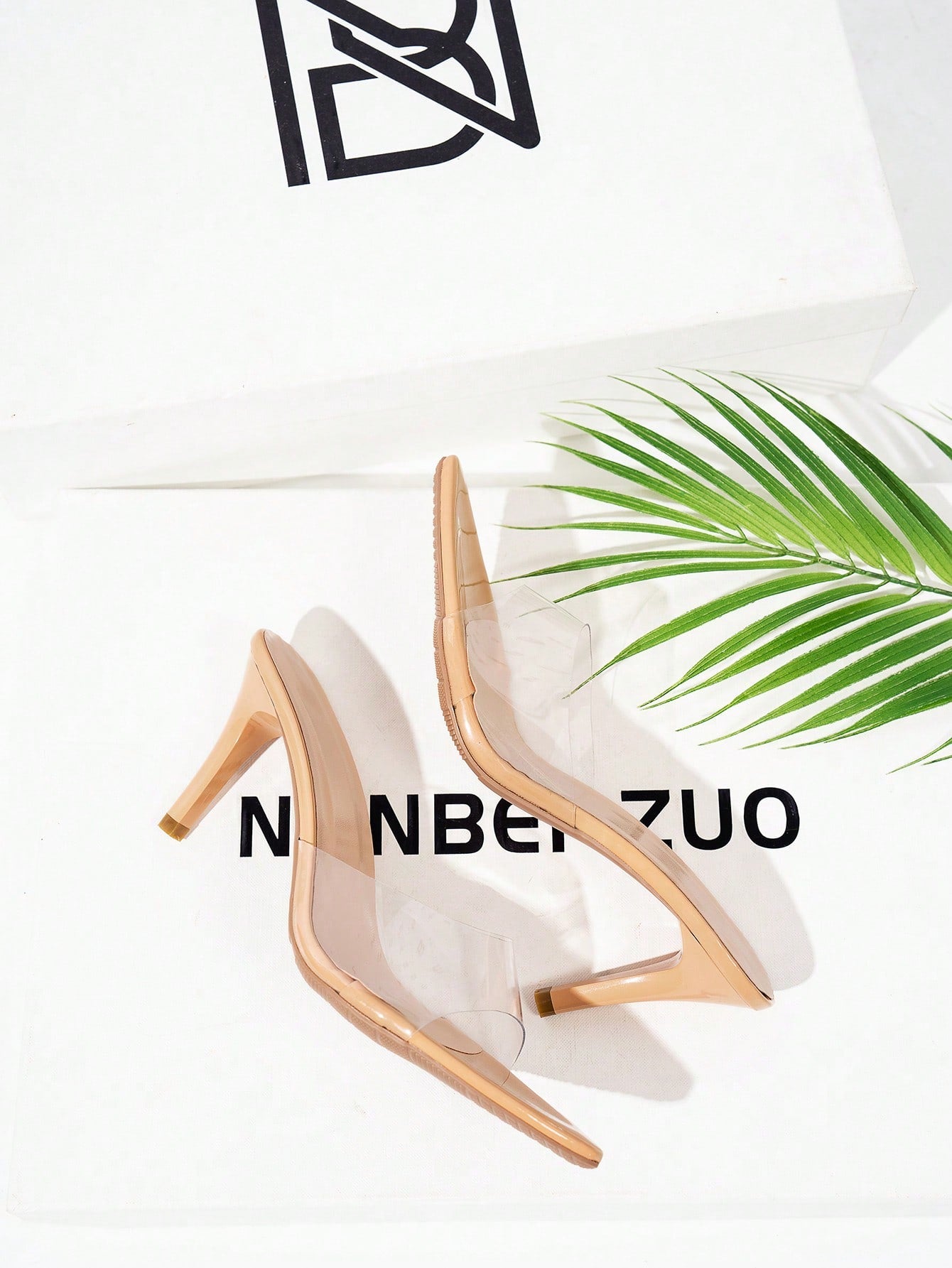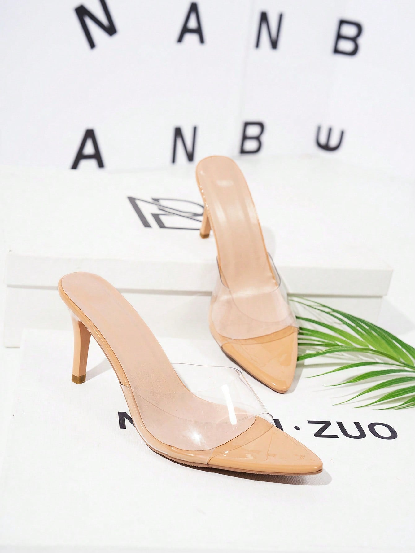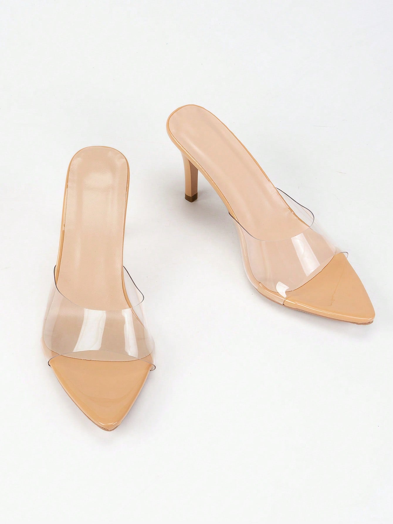 Women's Pointed Toe Transparent Strap Apricot Minimalist 8cm Stiletto High Heel Plus Size Sandals, Versatile