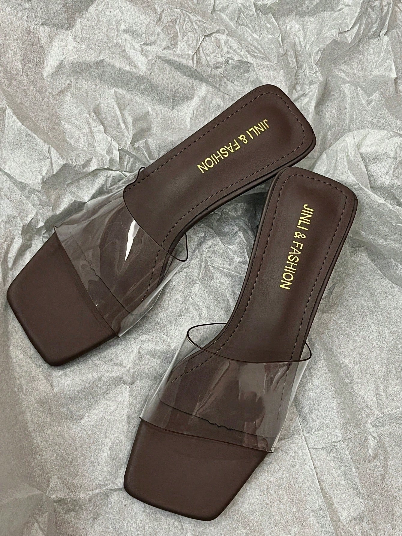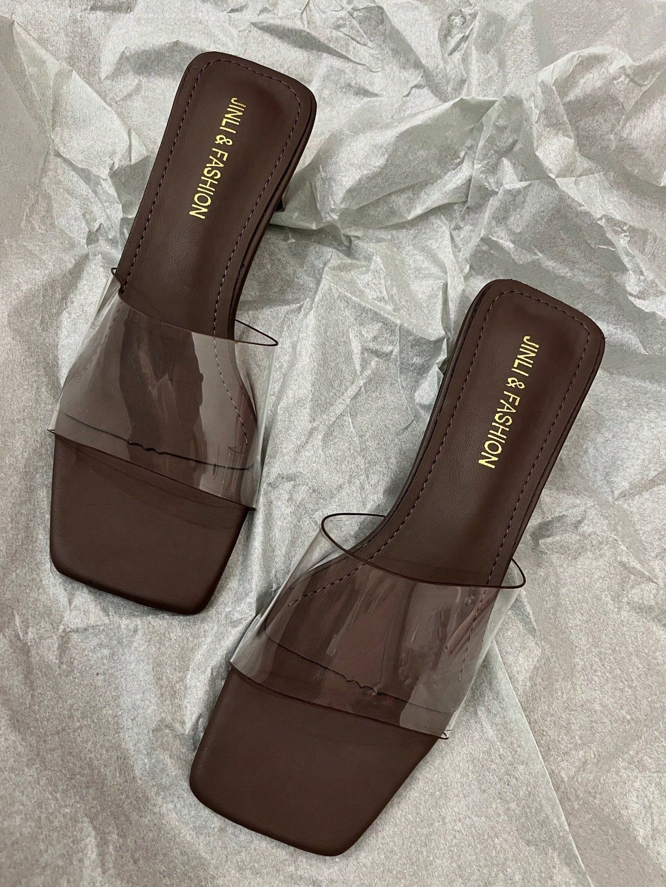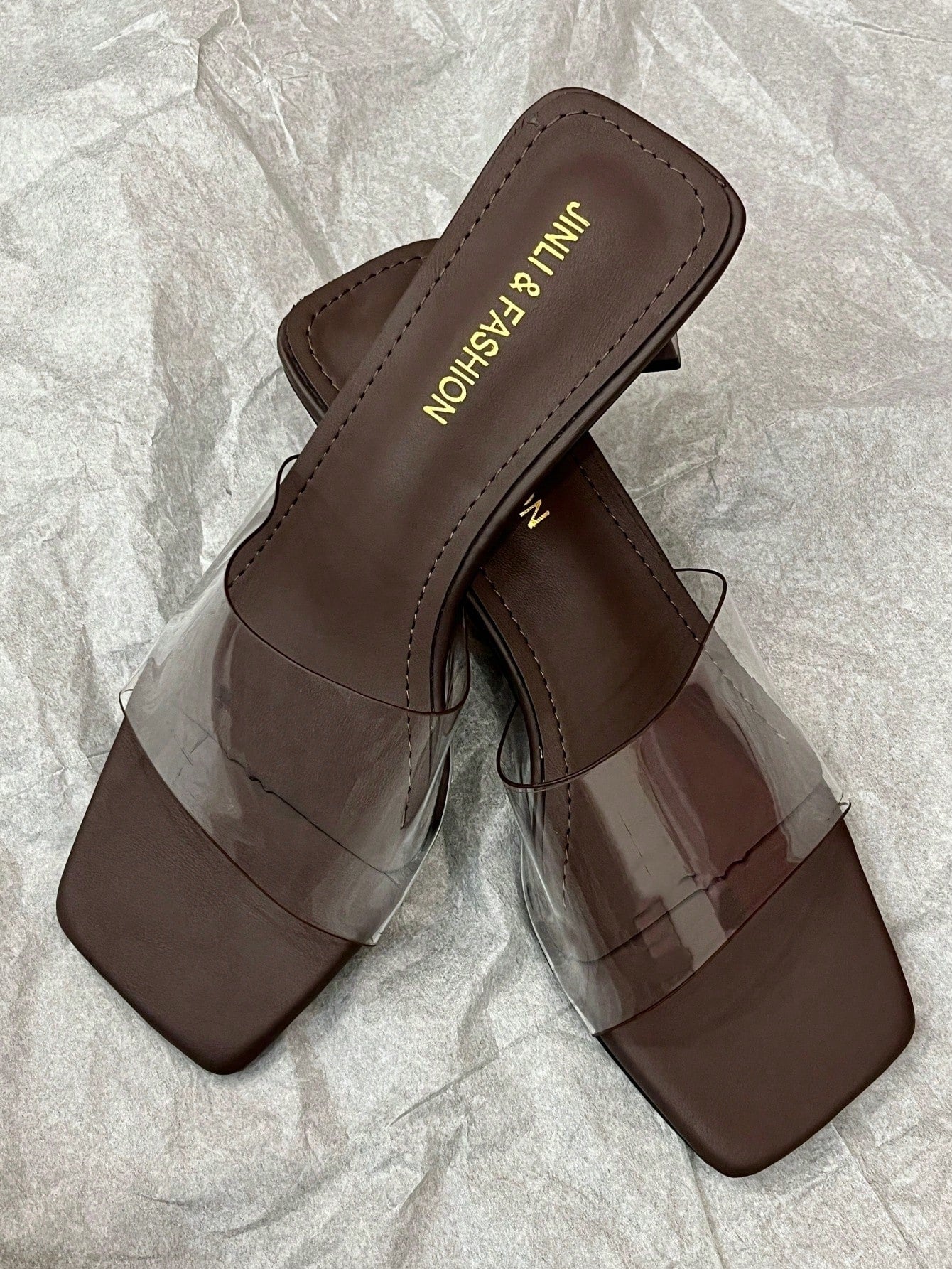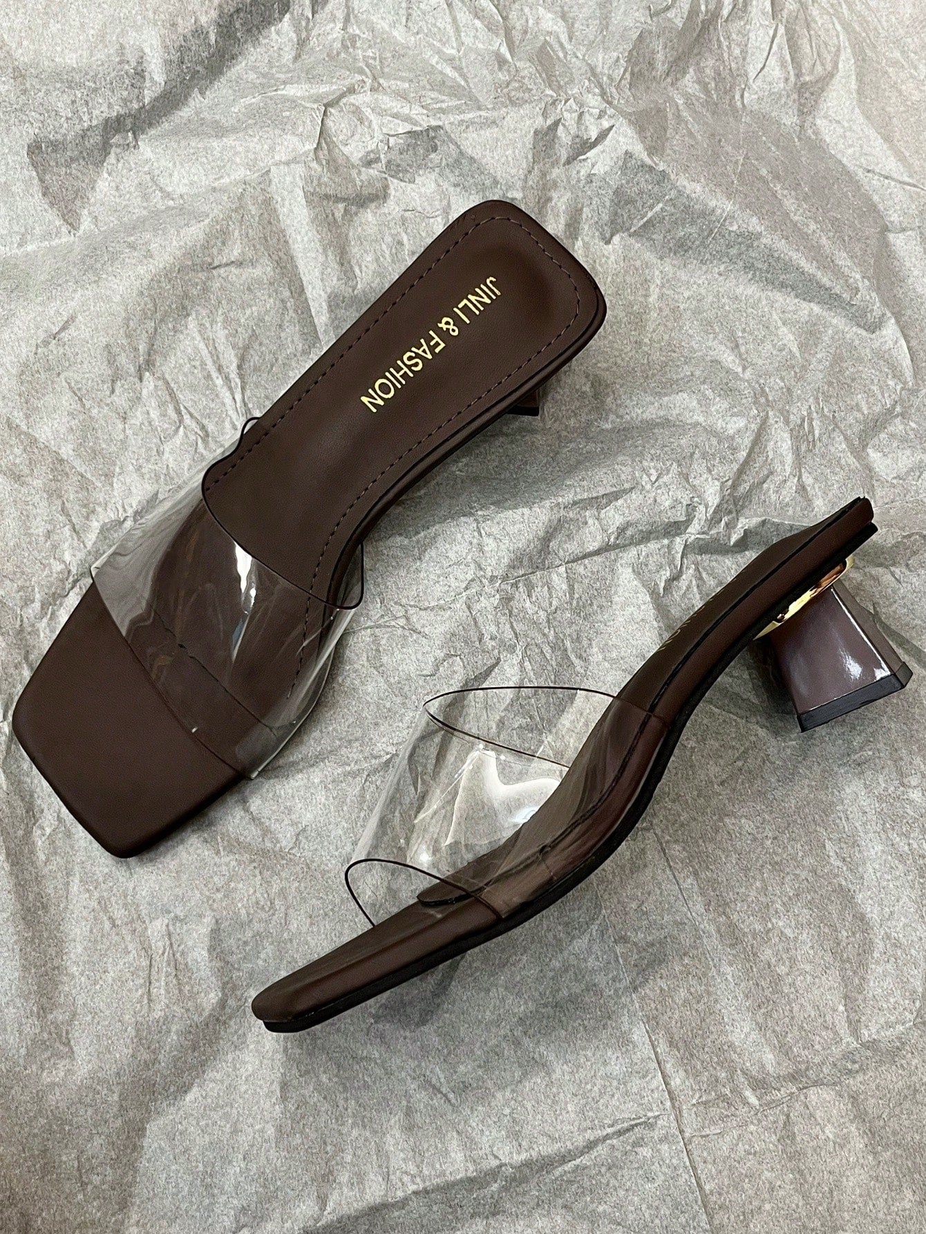 women 2025 New Arrivals Premium Solid Color Classic Chunky Heel Transparent Sandals For Women