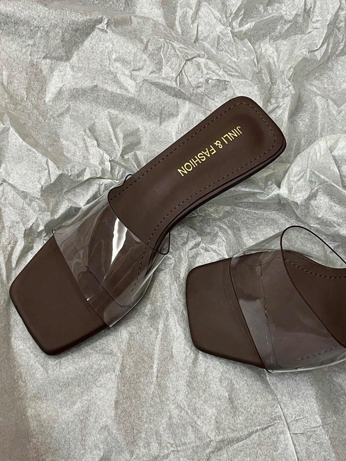 2025 New Arrivals Premium Solid Color Classic Chunky Heel Transparent Sandals For Women