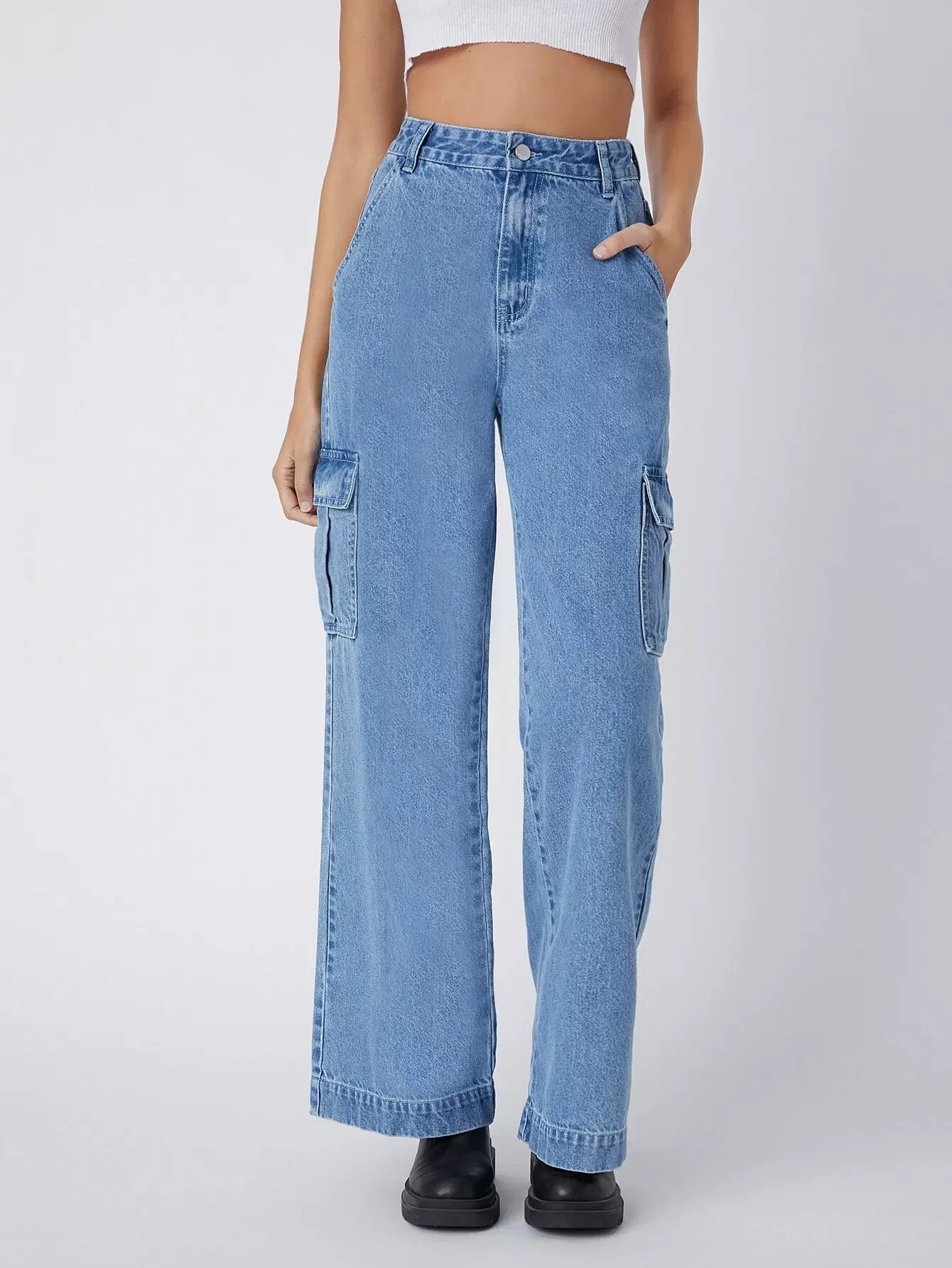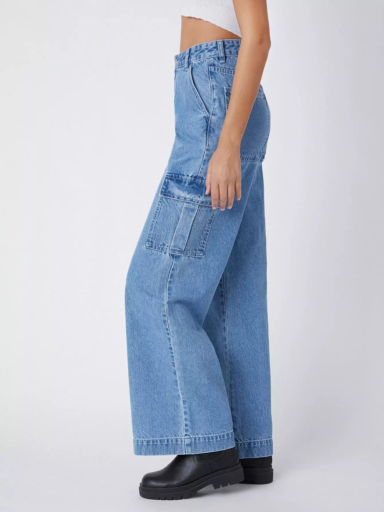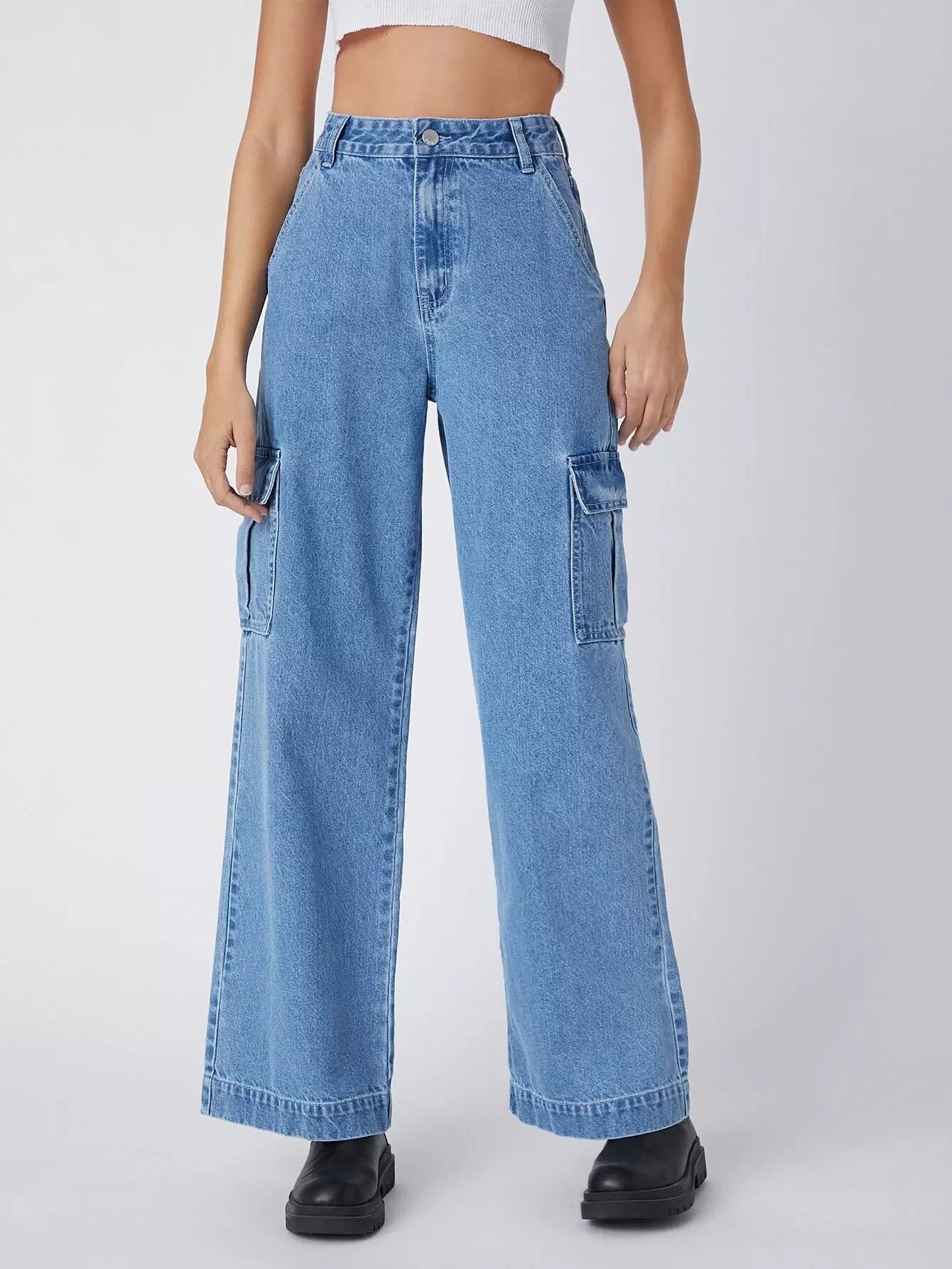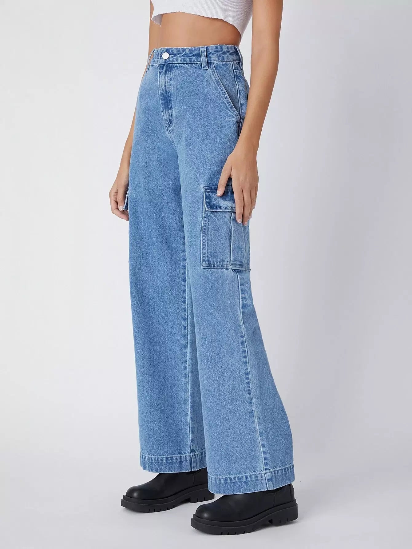 90s Vintage High-Waist Flap Pocket Whip Stitch Cargo Jeans