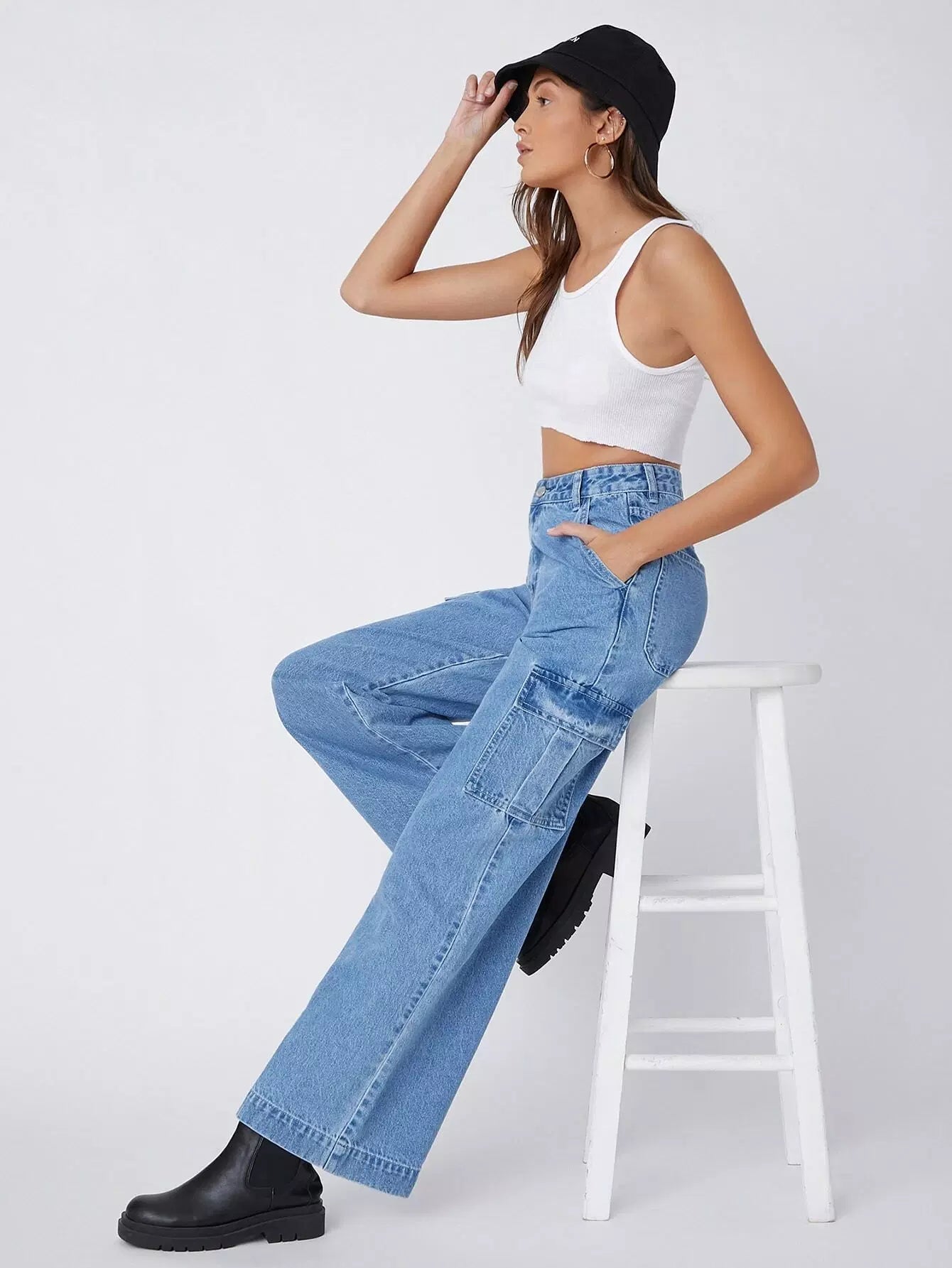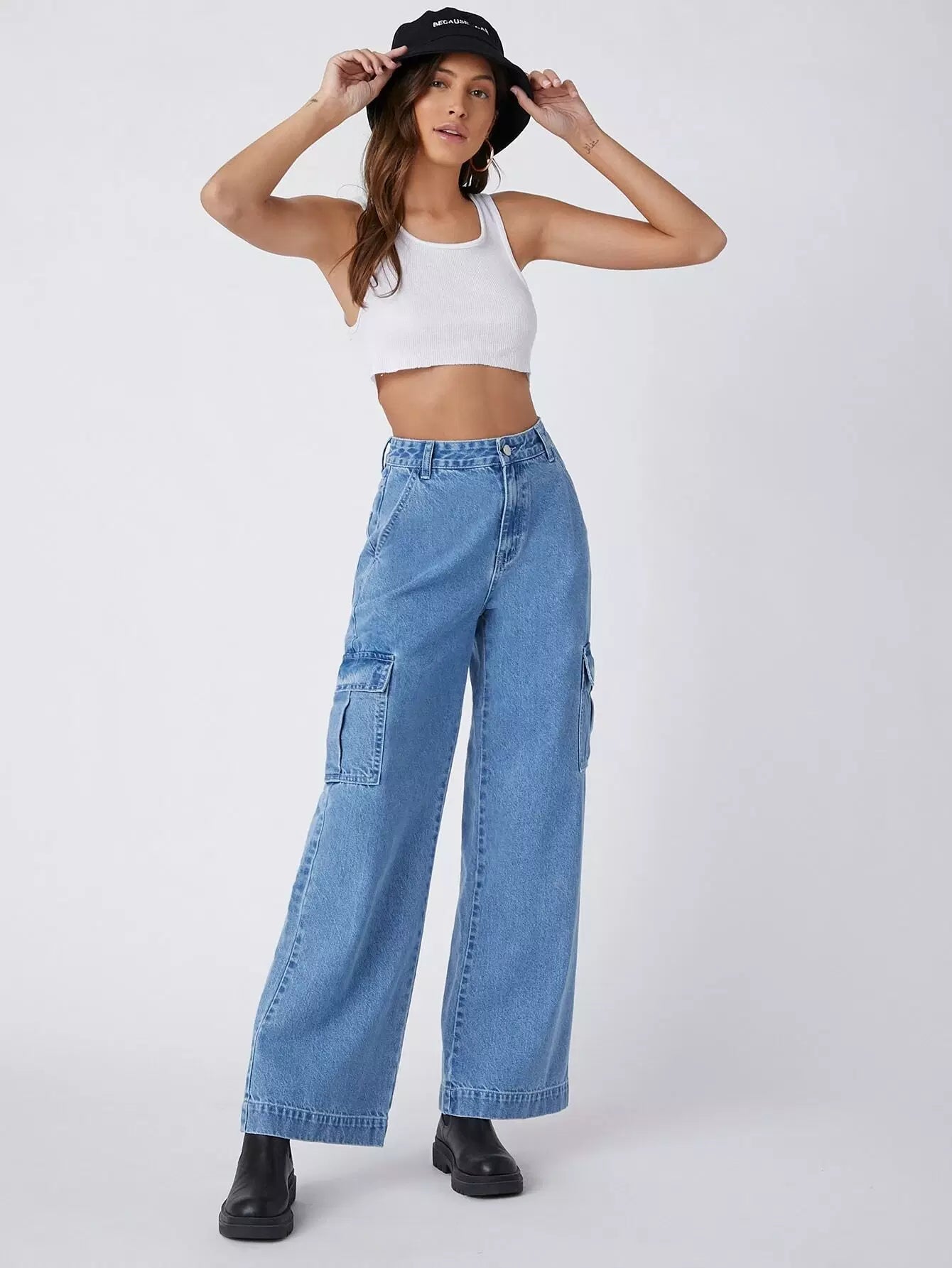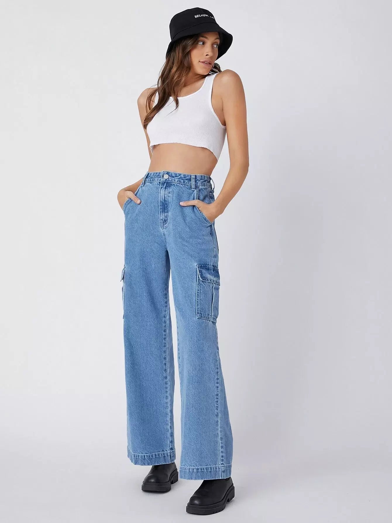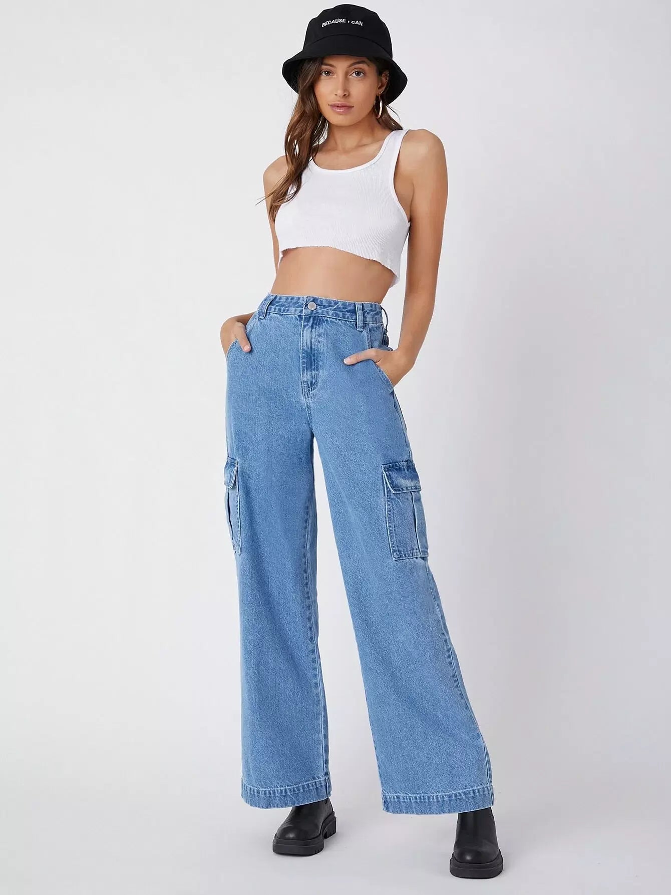 90s Vintage High-Waist Flap Pocket Whip Stitch Cargo Jeans