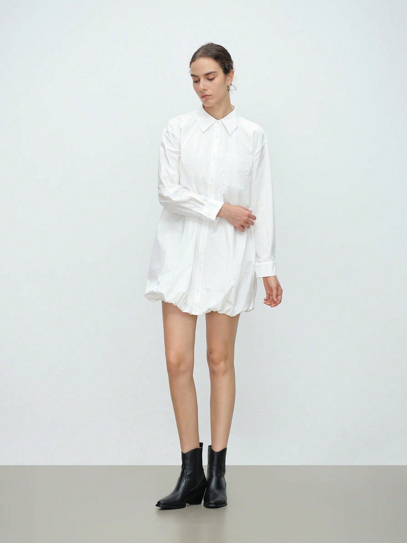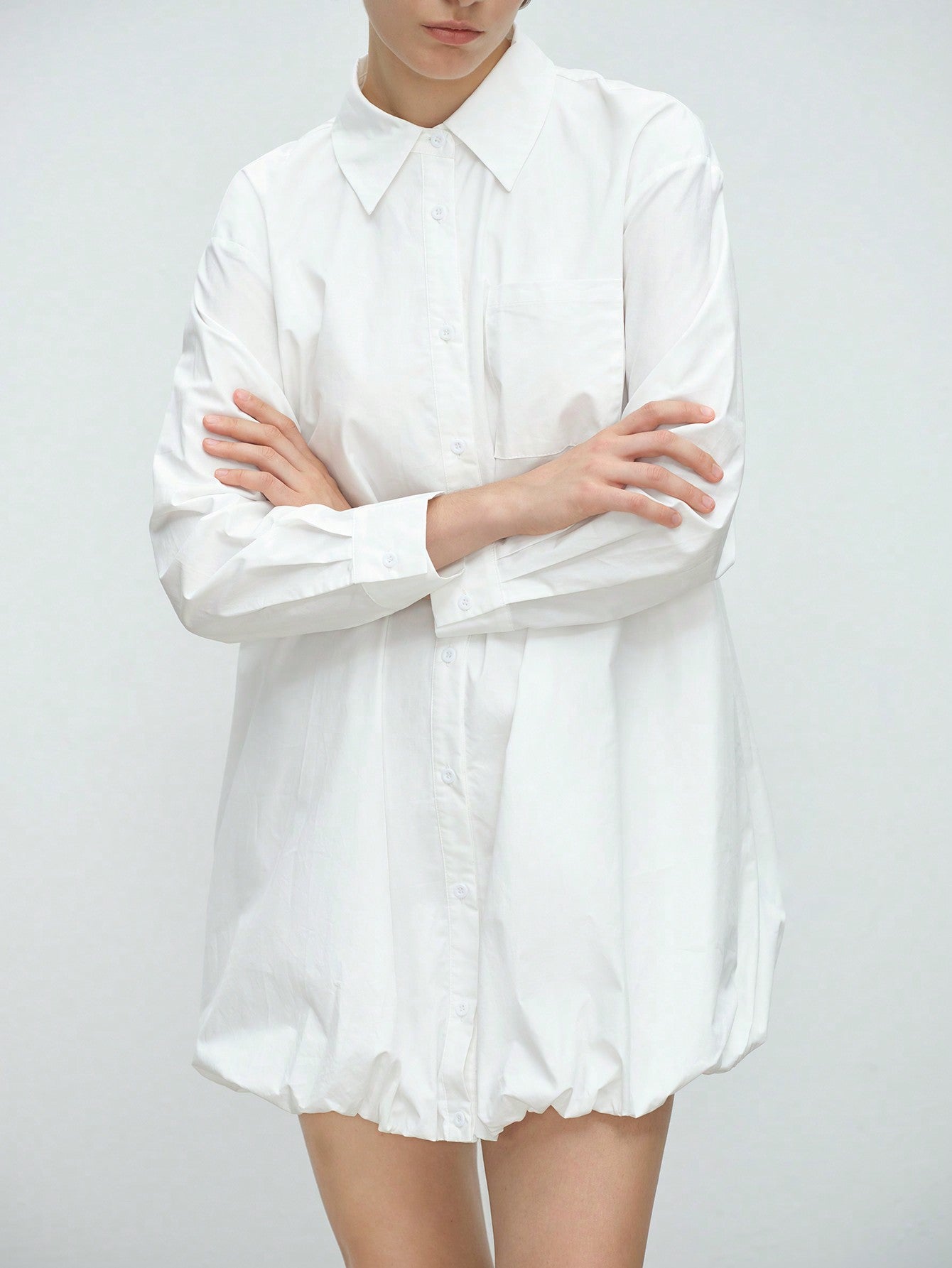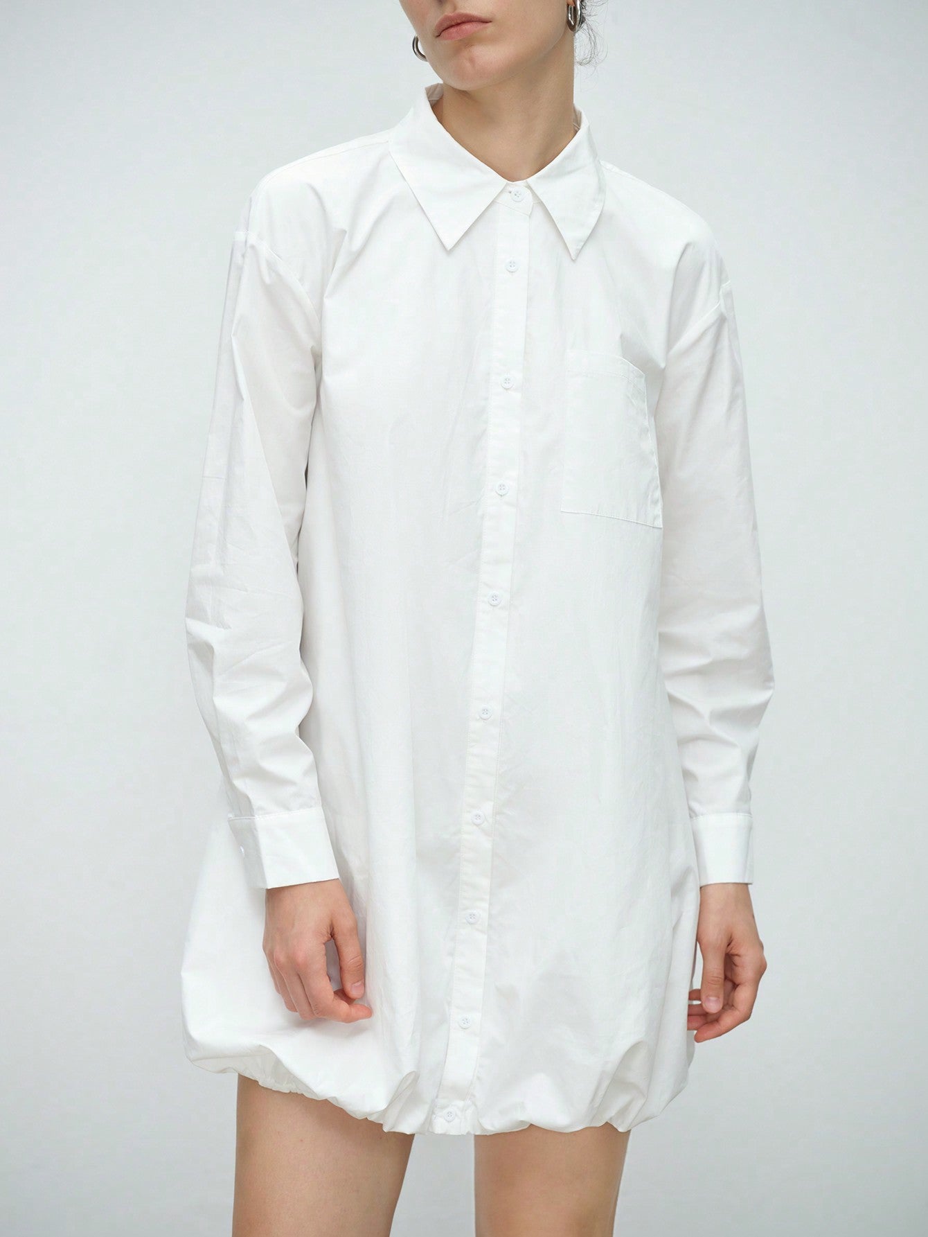 Aalyst Women Casual Solid Color Button Front Shirt Dress, Autumn