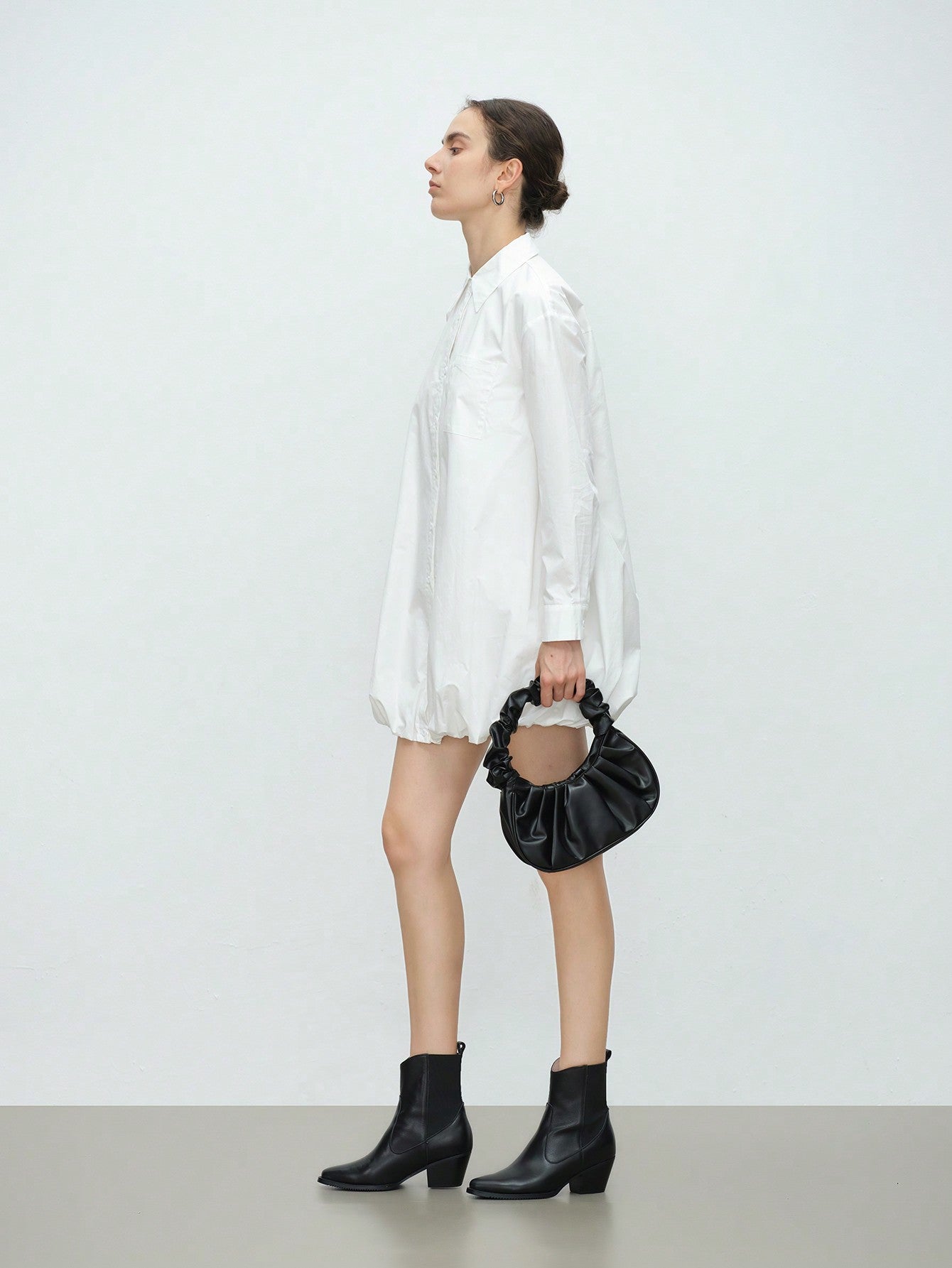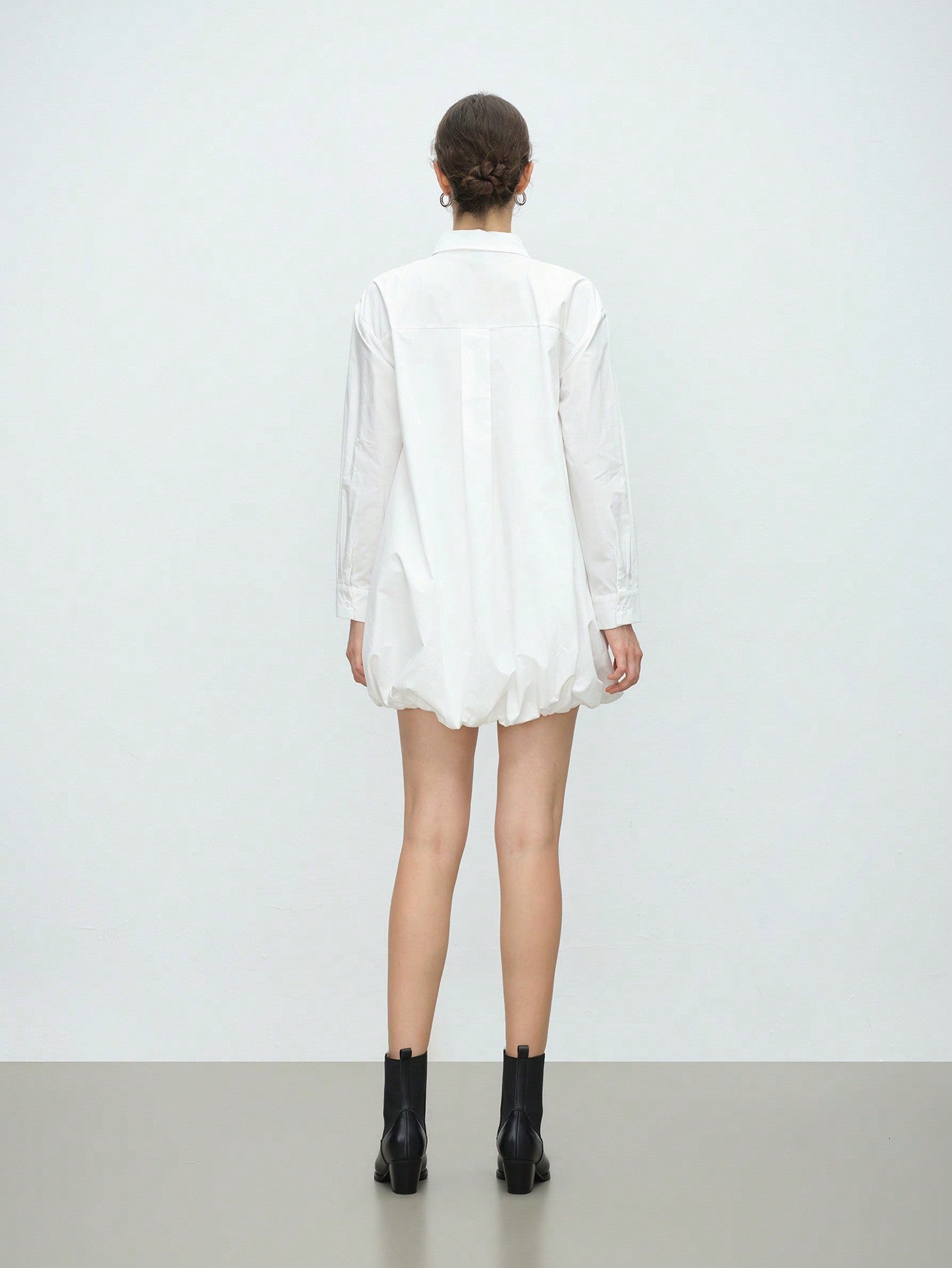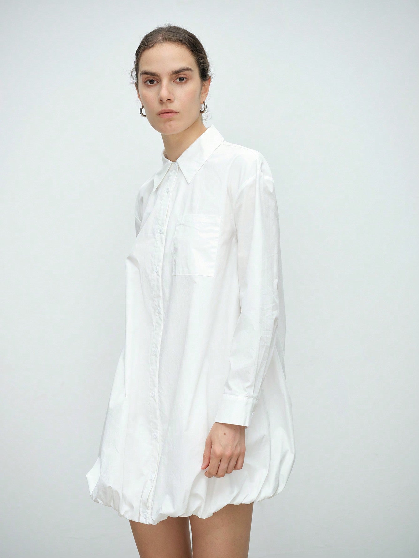 Aalyst Women Casual Solid Color Button Front Shirt Dress, Autumn