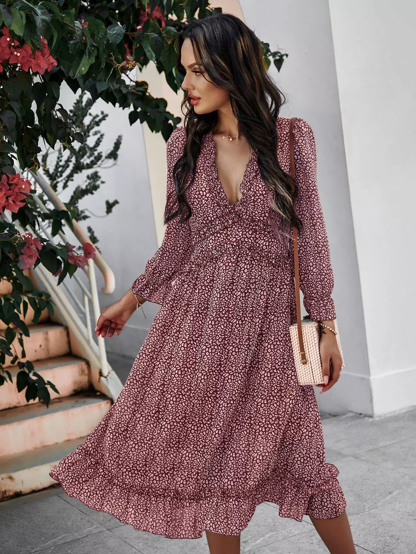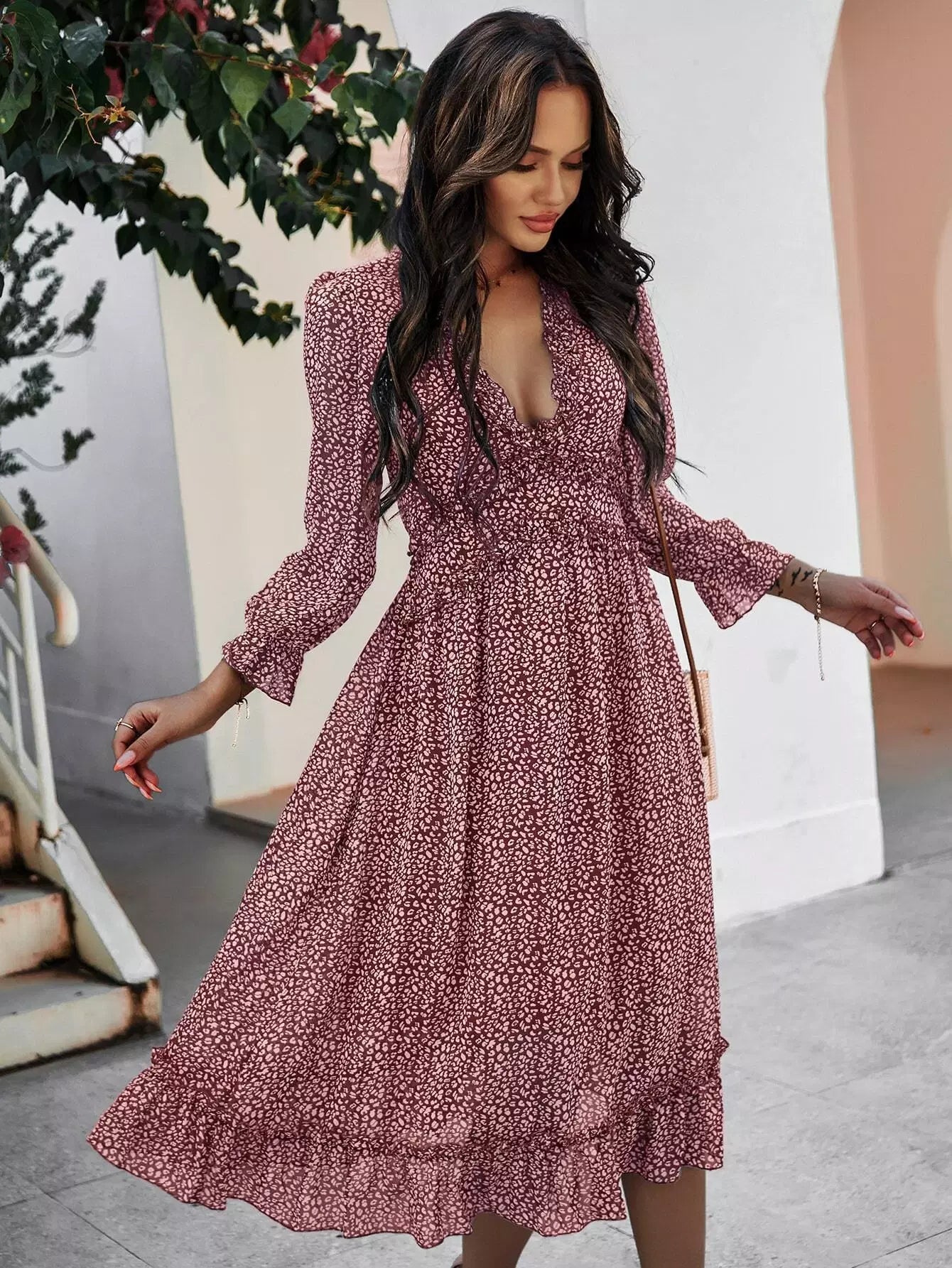 Allover Print Frill Trim Dress