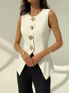 Aloruh Round Neck Sleeveless Minimalist Metal Decor Women's Office Blazer