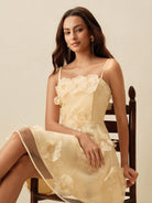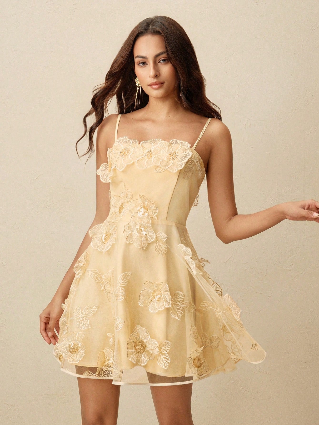 Anewsta Elegant White Organza Floral Embellished A-Line Bridesmaid Cocktail Dress, Waist-Cinched Fitted