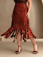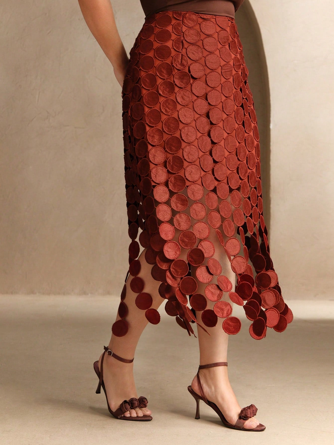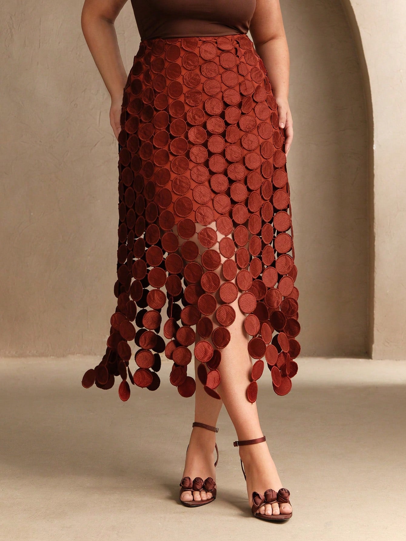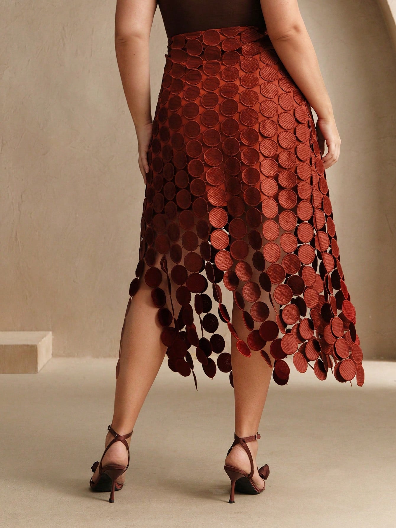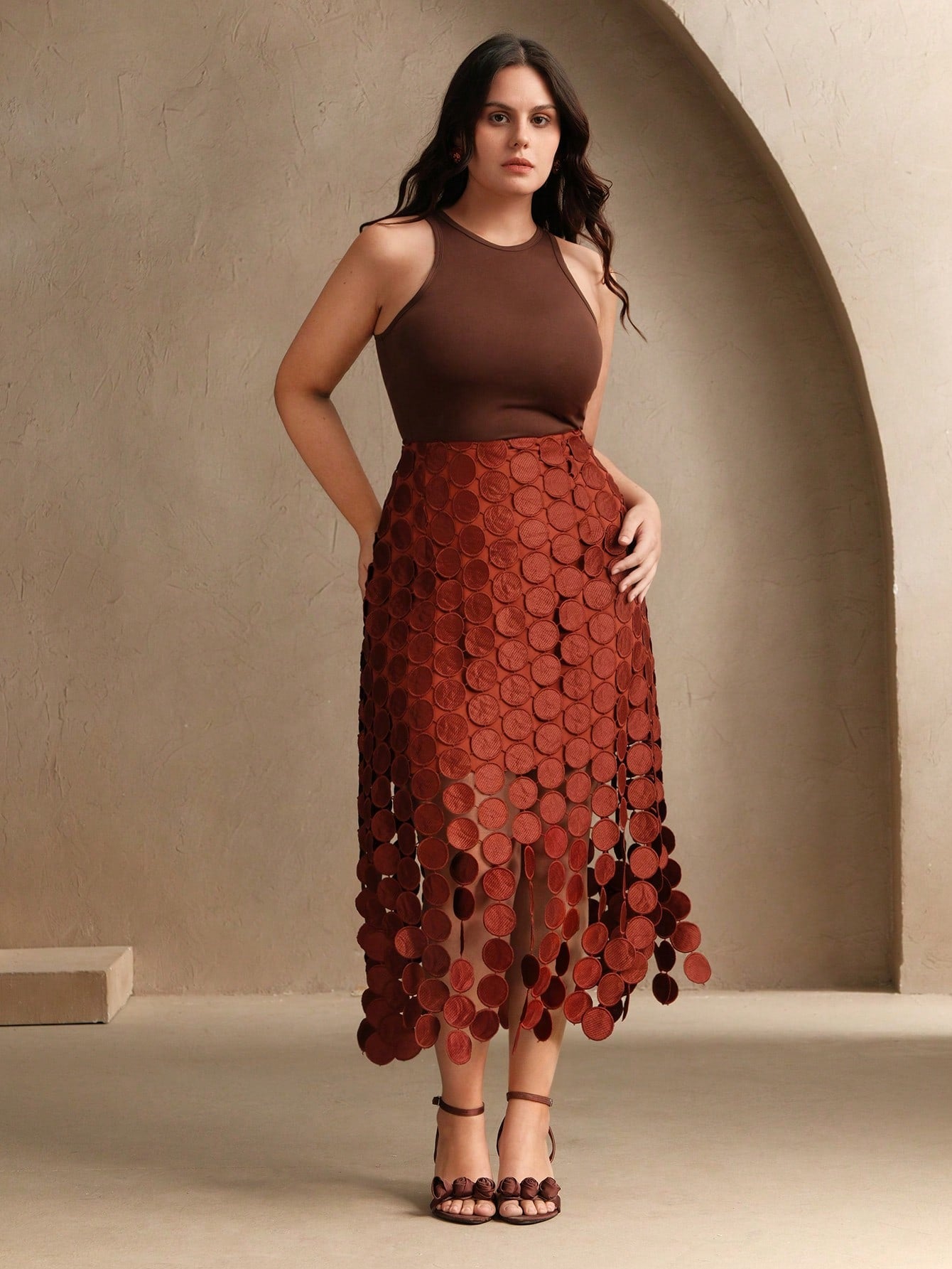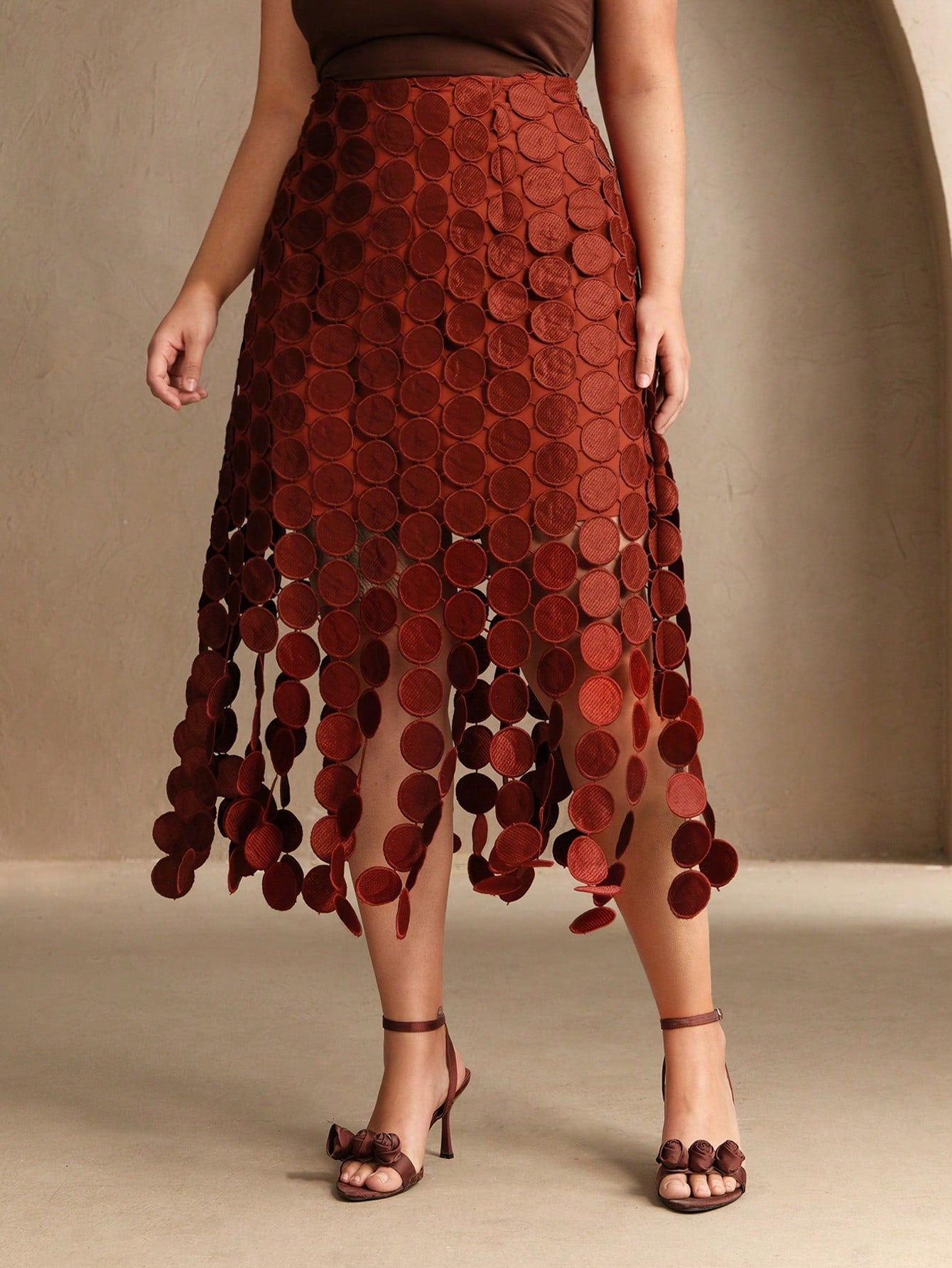 Anewsta Plus Size Women Elegant Chic Korean Style Lapel Circle Decor A-Line Skirt, Spring/Summer