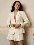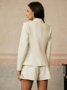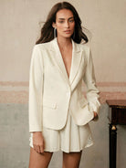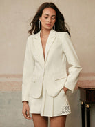 Anewsta Women Elegant Vintage Coin Embroidery Turndown Collar Waist-Cinching Blazer Suit Set