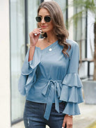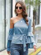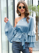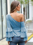 Asymmetric Neck Layered Sleeve Top Without Belt