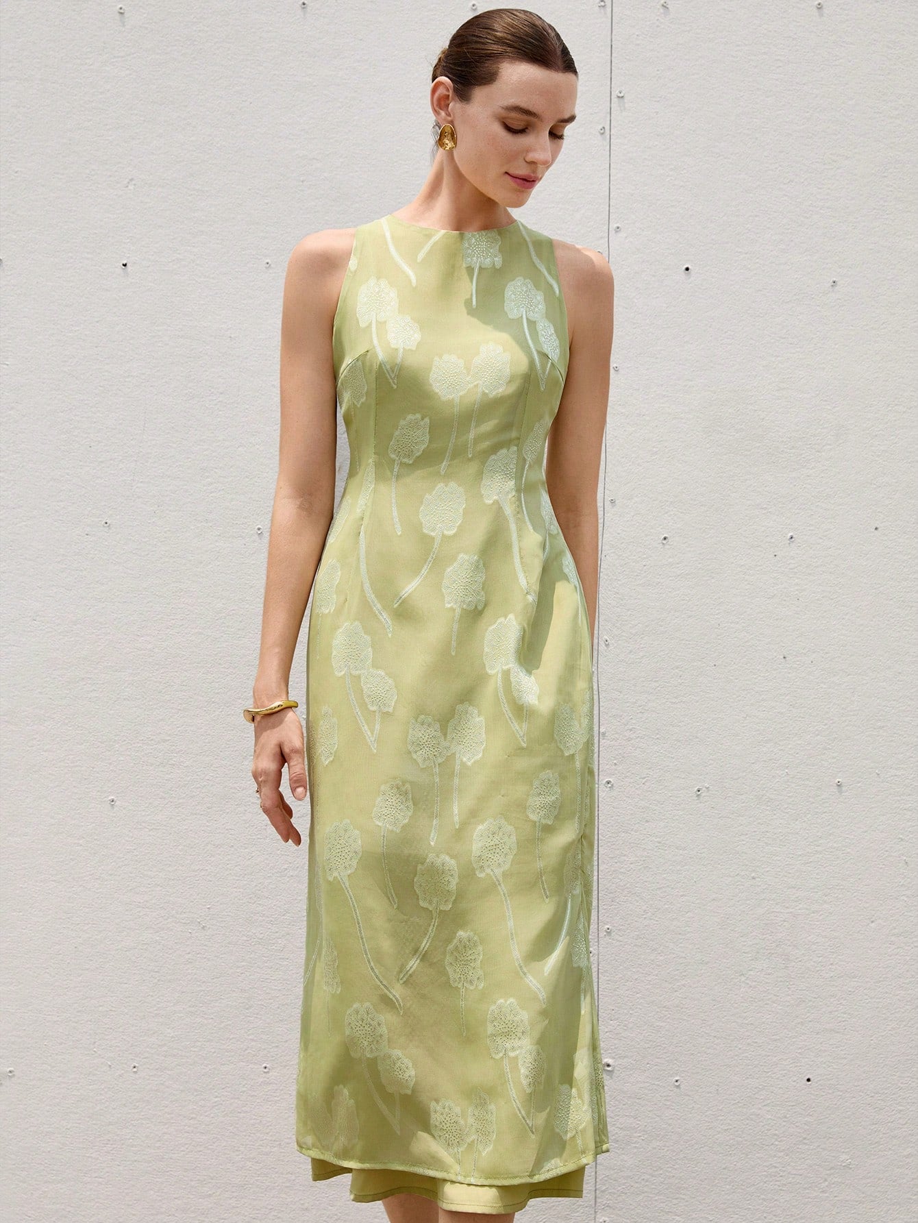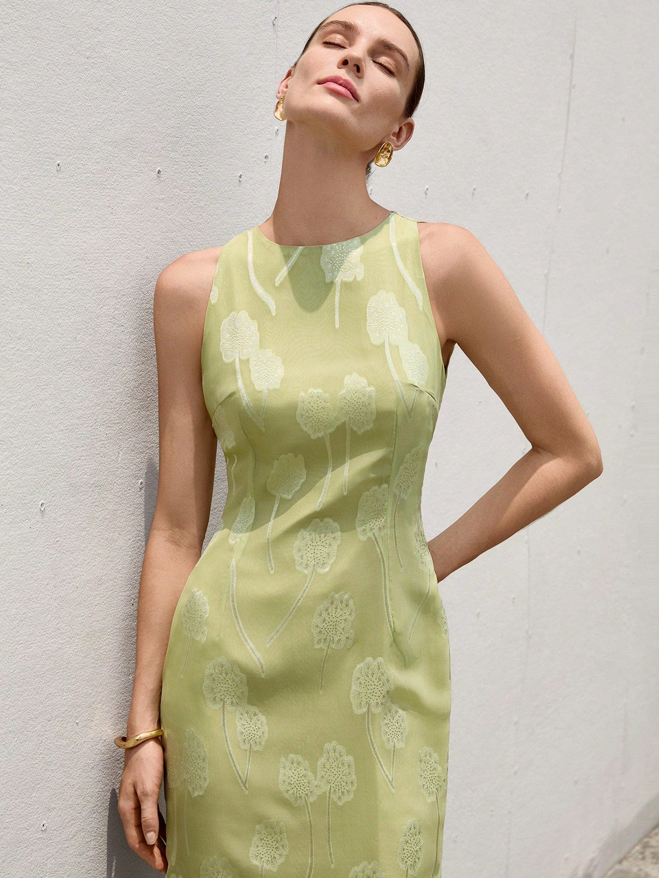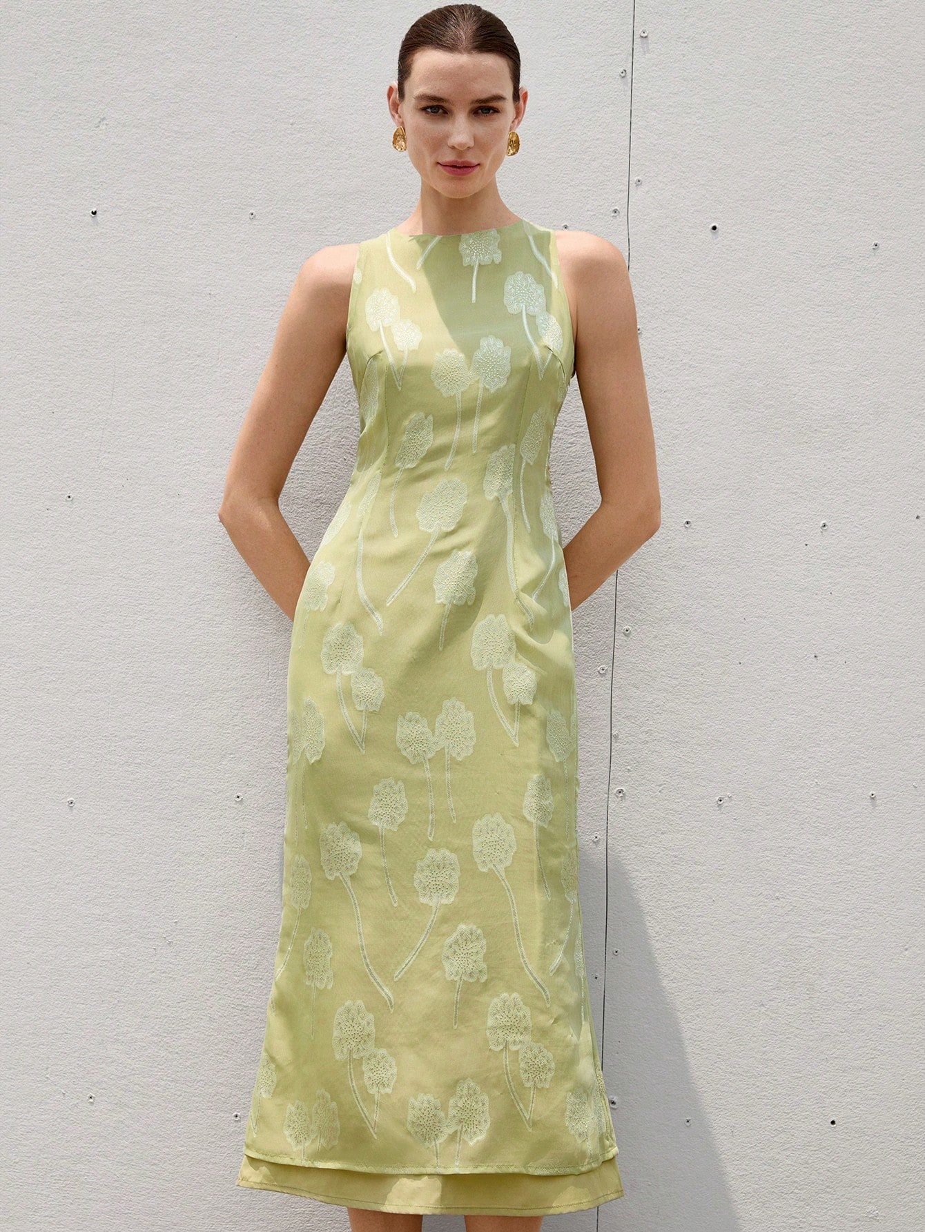 Aveloria Modichic White Floral Jacquard Fabric Romantic Elegant Minimalist Design Scoop Neck Sleeveless