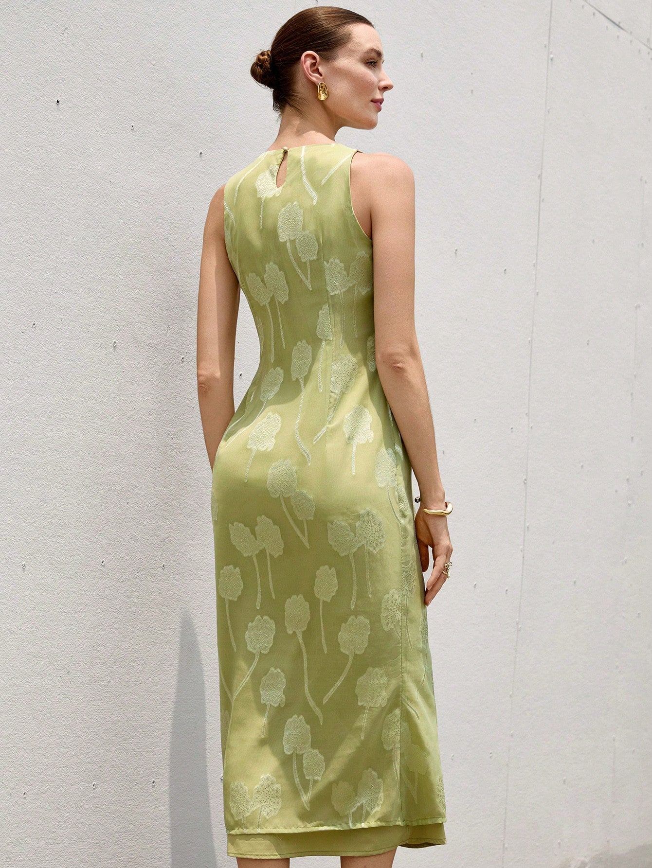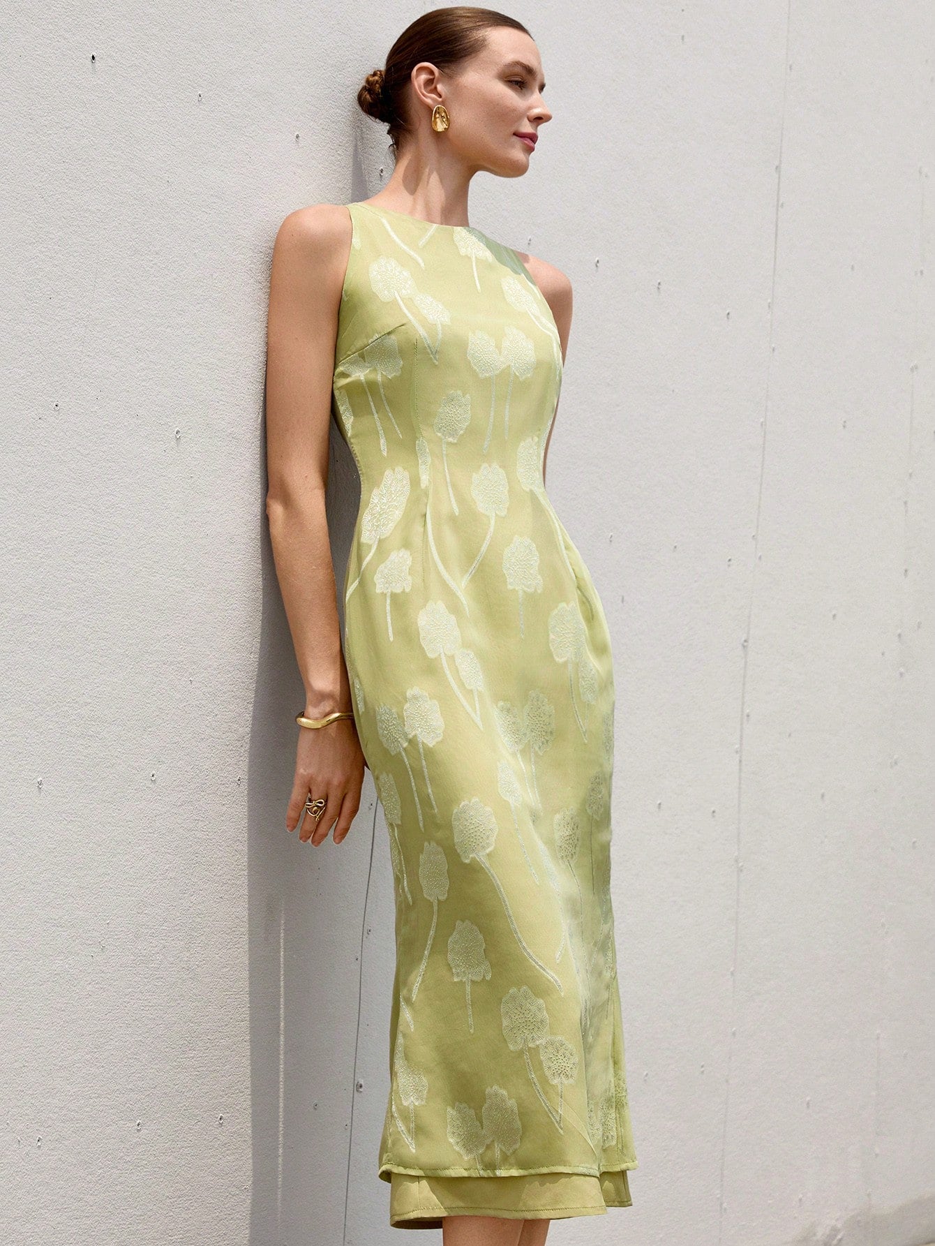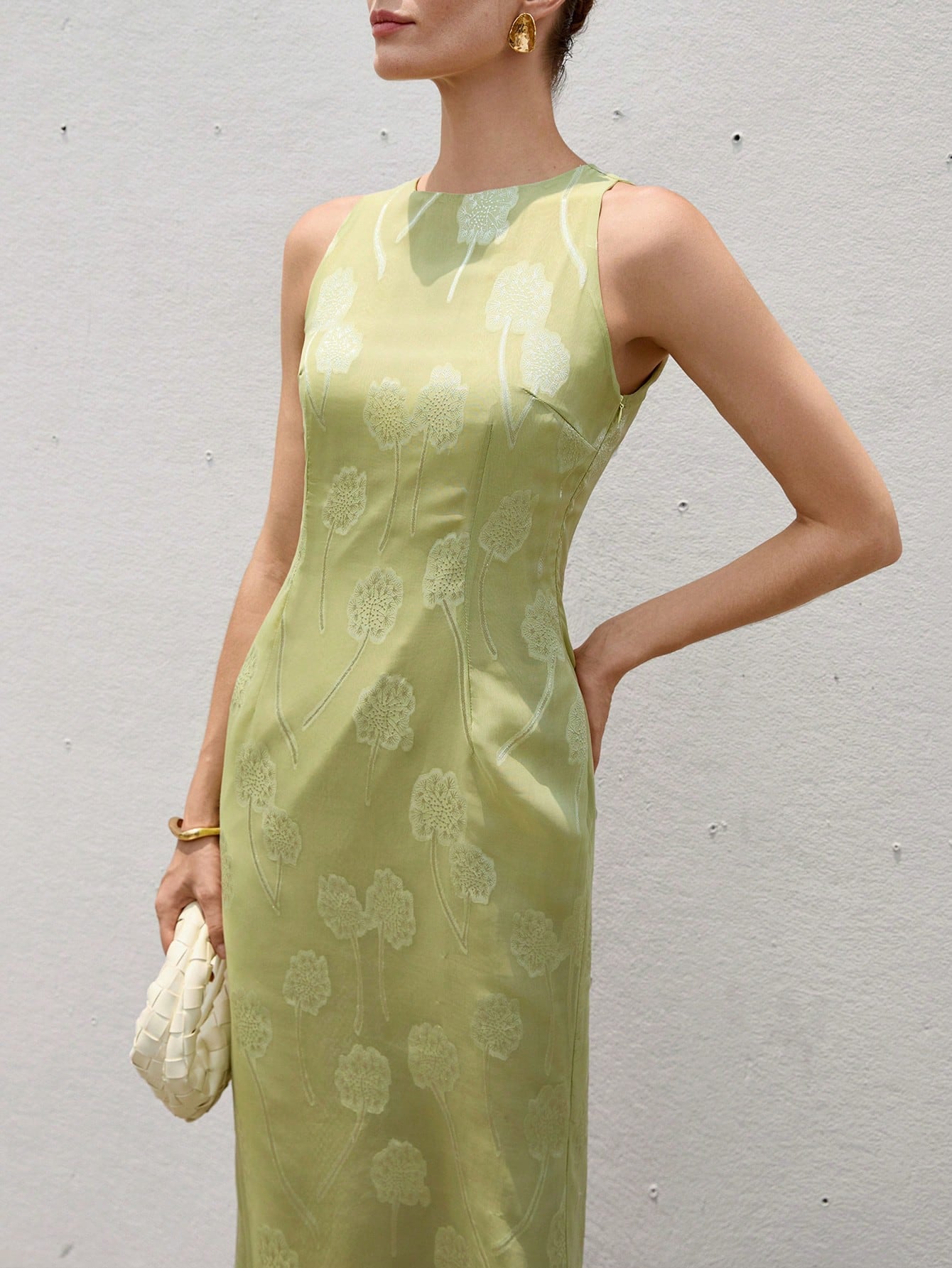 Aveloria Modichic White Floral Jacquard Fabric Romantic Elegant Minimalist Design Scoop Neck Sleeveless