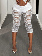 BamGleam 3/4 Length Lace Sheer Leggings In Solid Color, Sexy