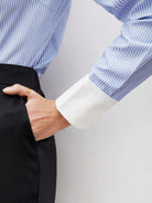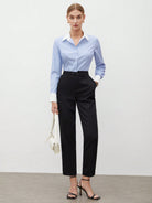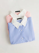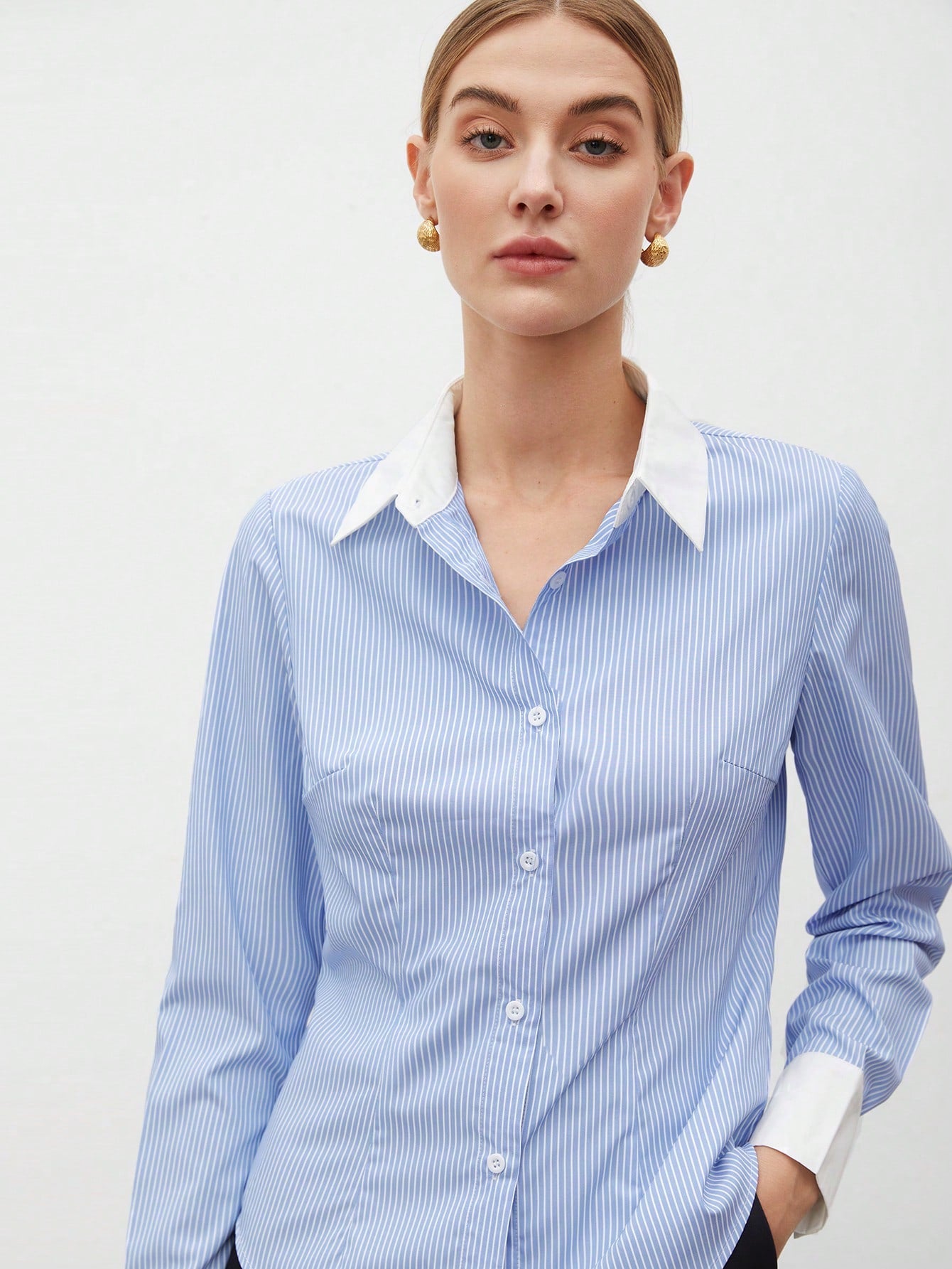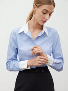 BizChic Women's Color-Blocking Striped Shirt With Turn-Down Collar