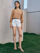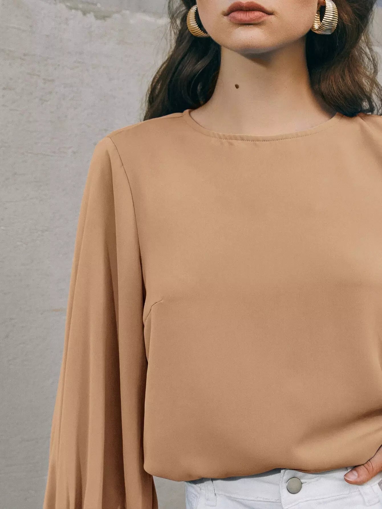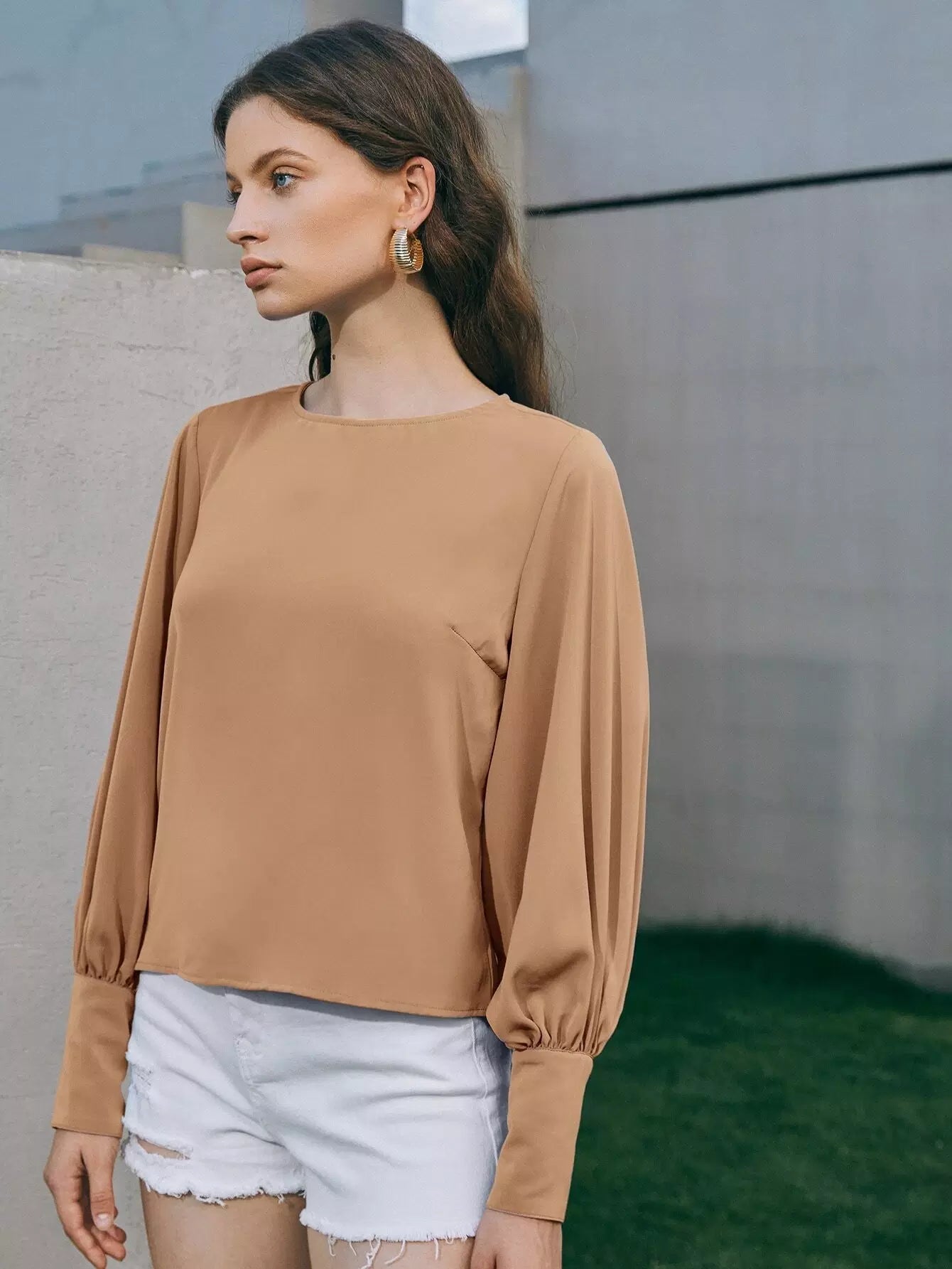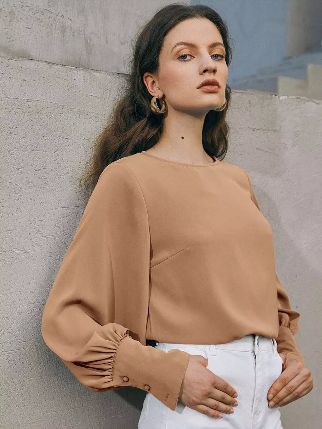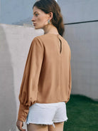 Button Cuff Lantern Sleeve Top