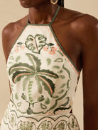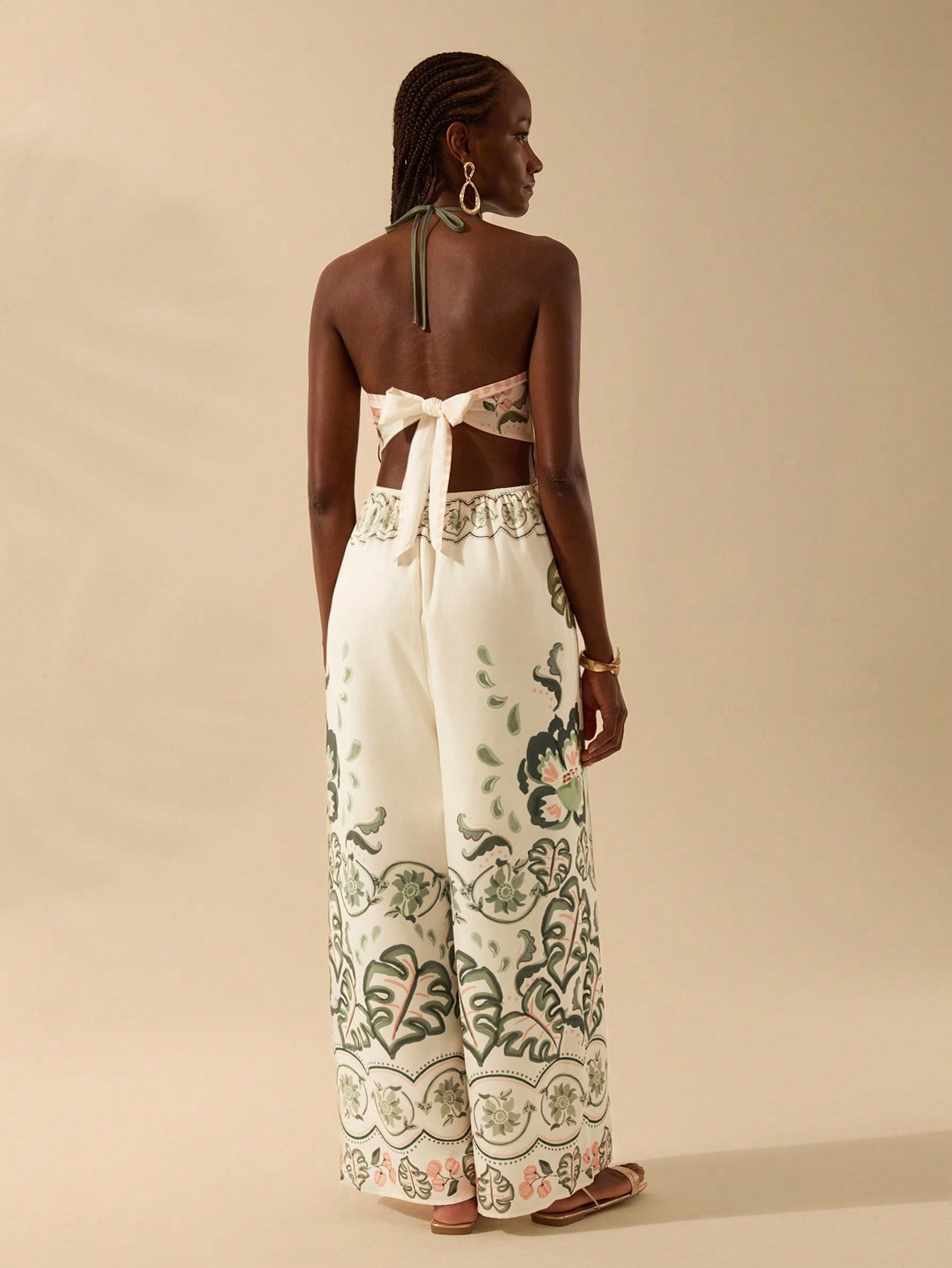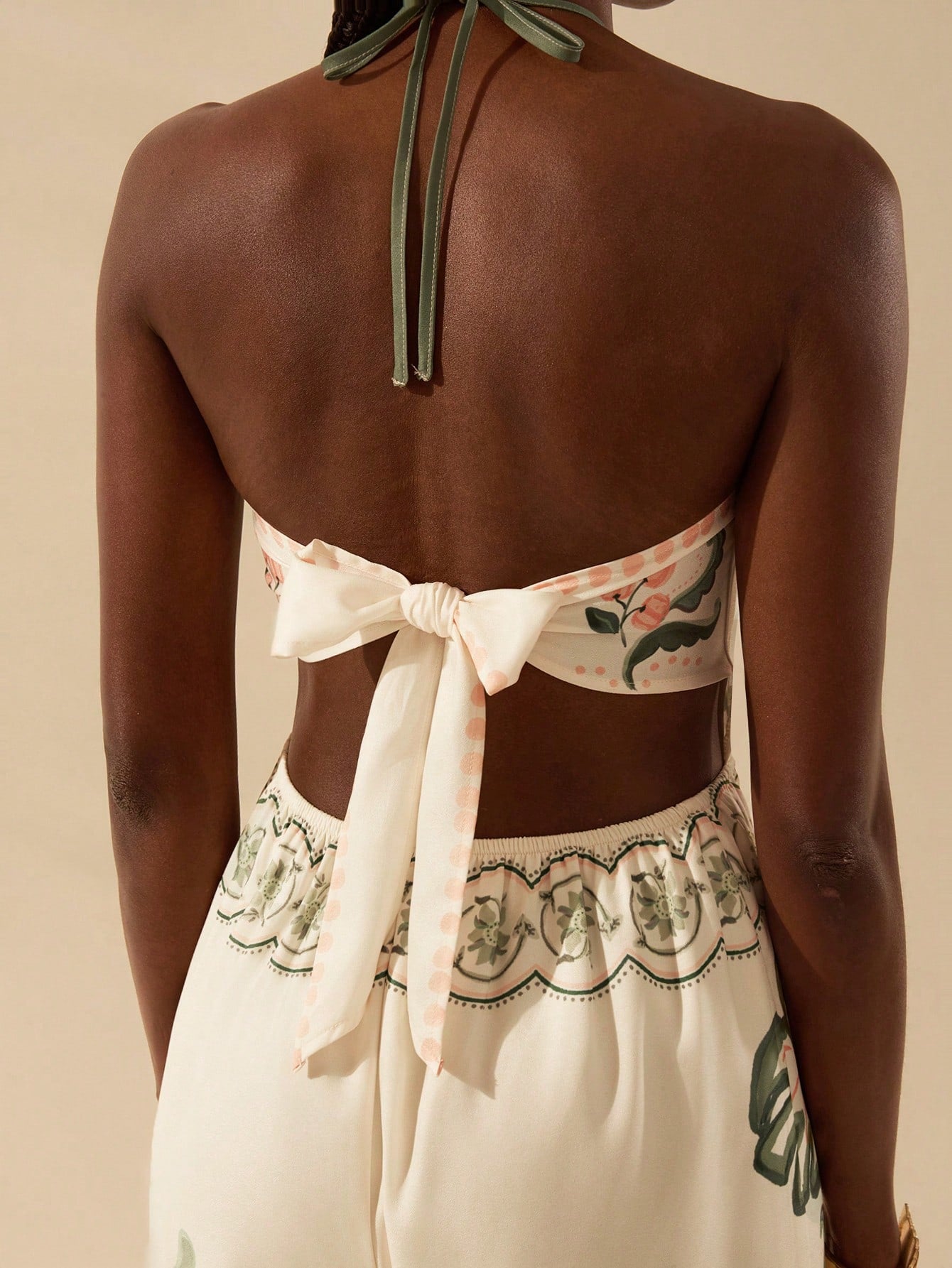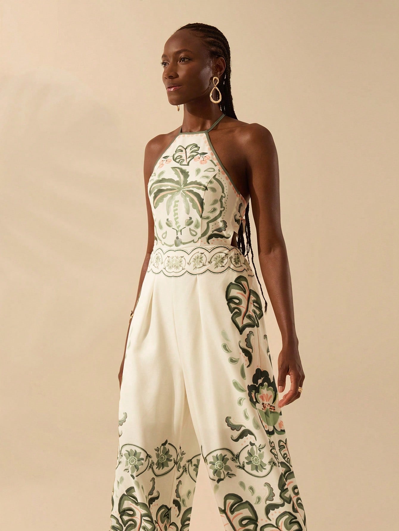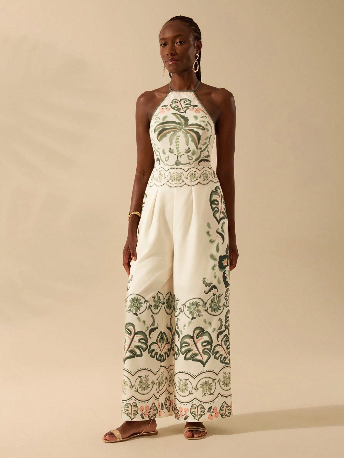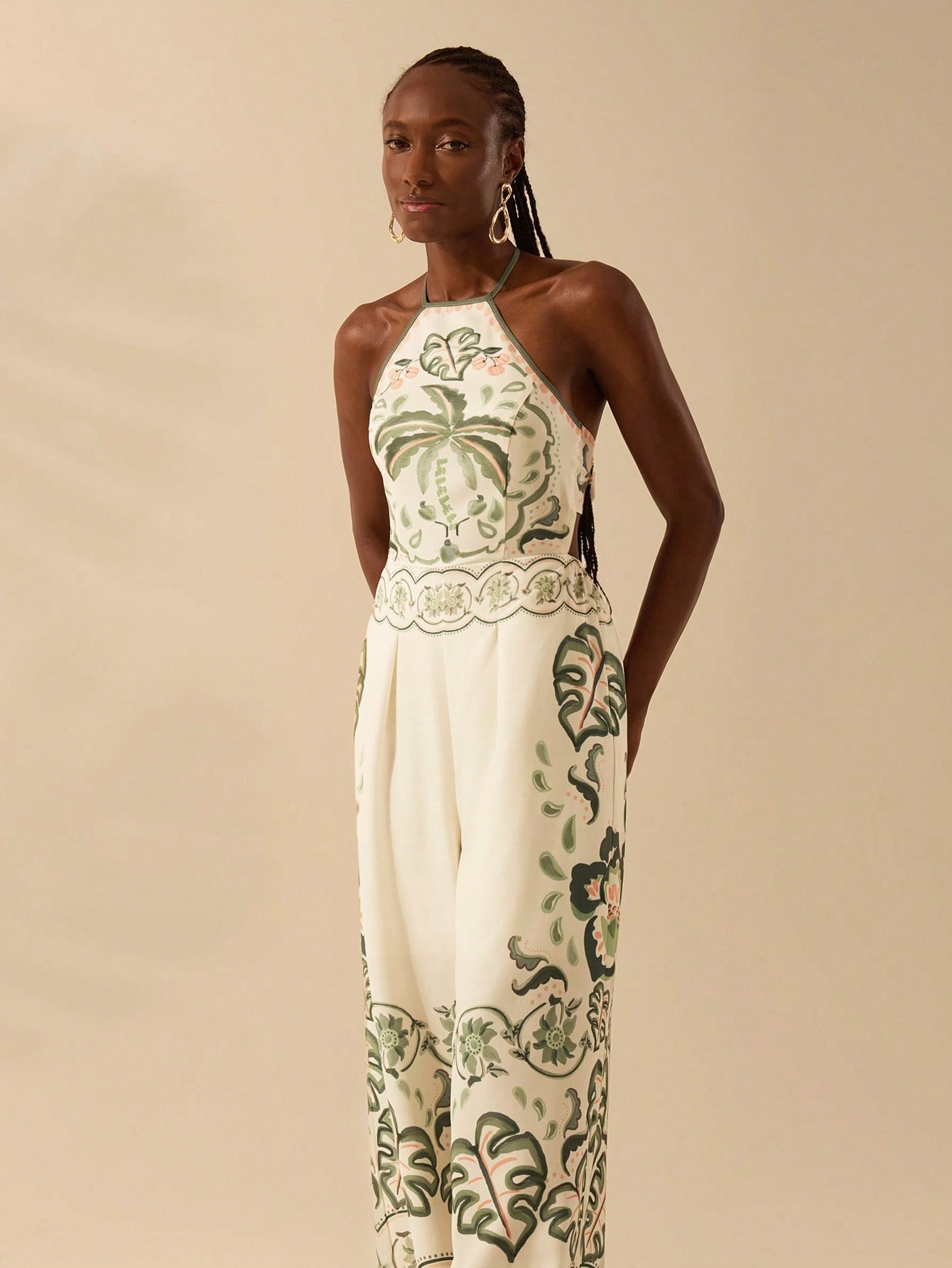 CAJUNI Women's Casual Vacation Summer Beach Jumpsuit, Boho Colorful Print, Halter Neck Backless Wide