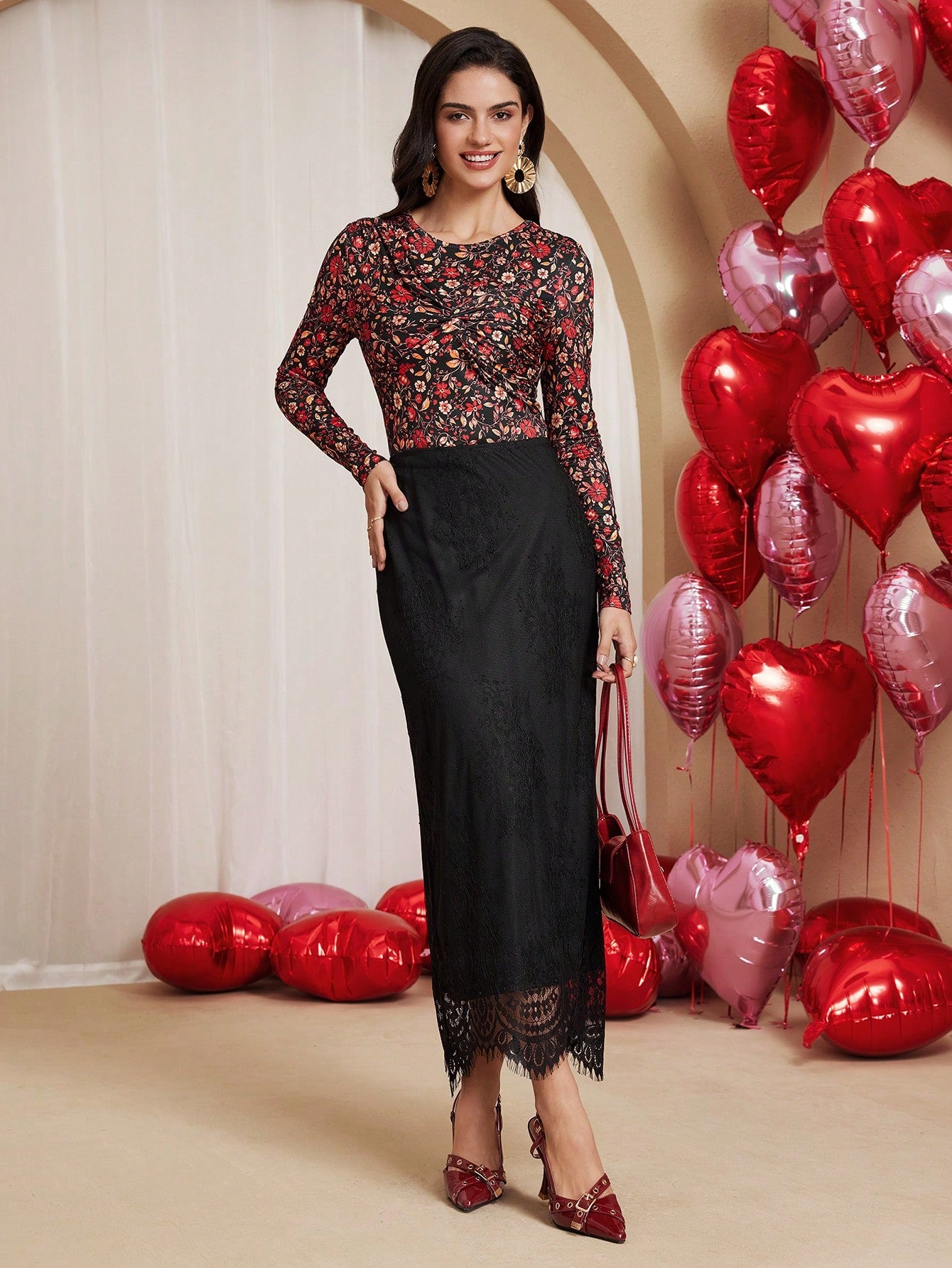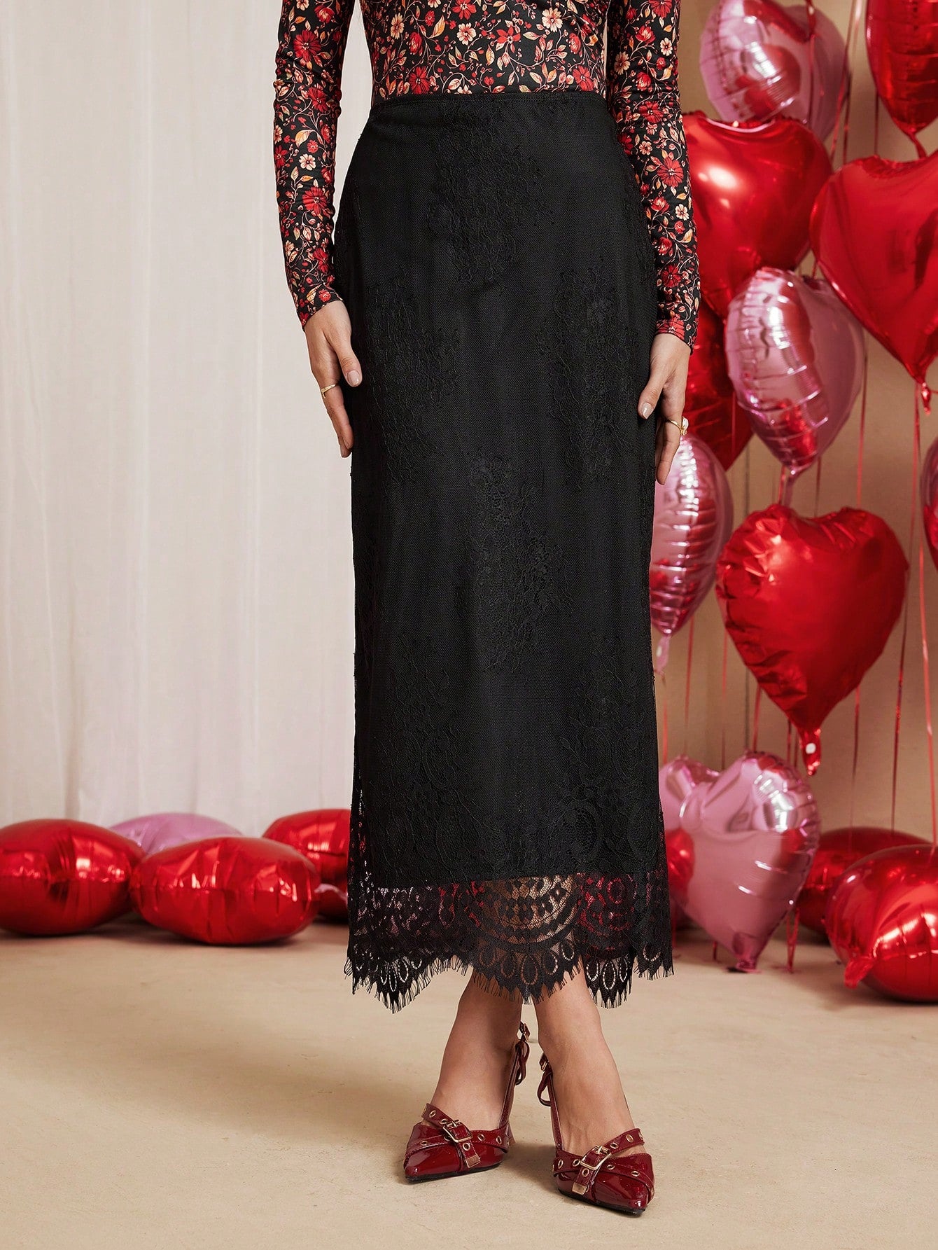 Chiquease Women's Elegant Solid Color Lace Skirt Fall Cloth For Women