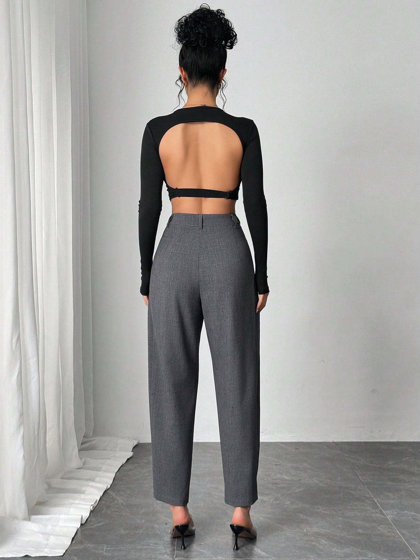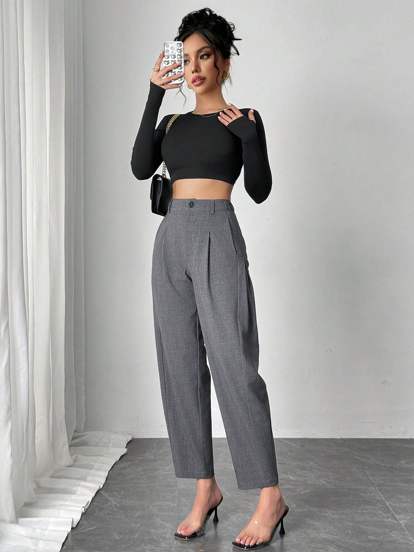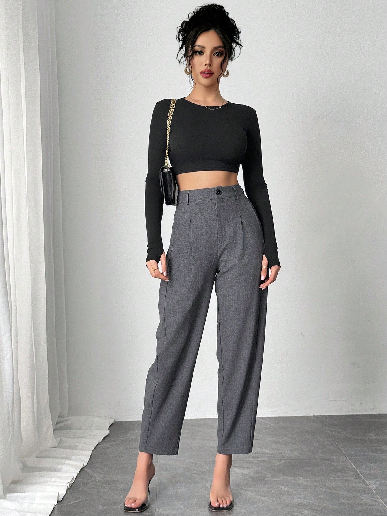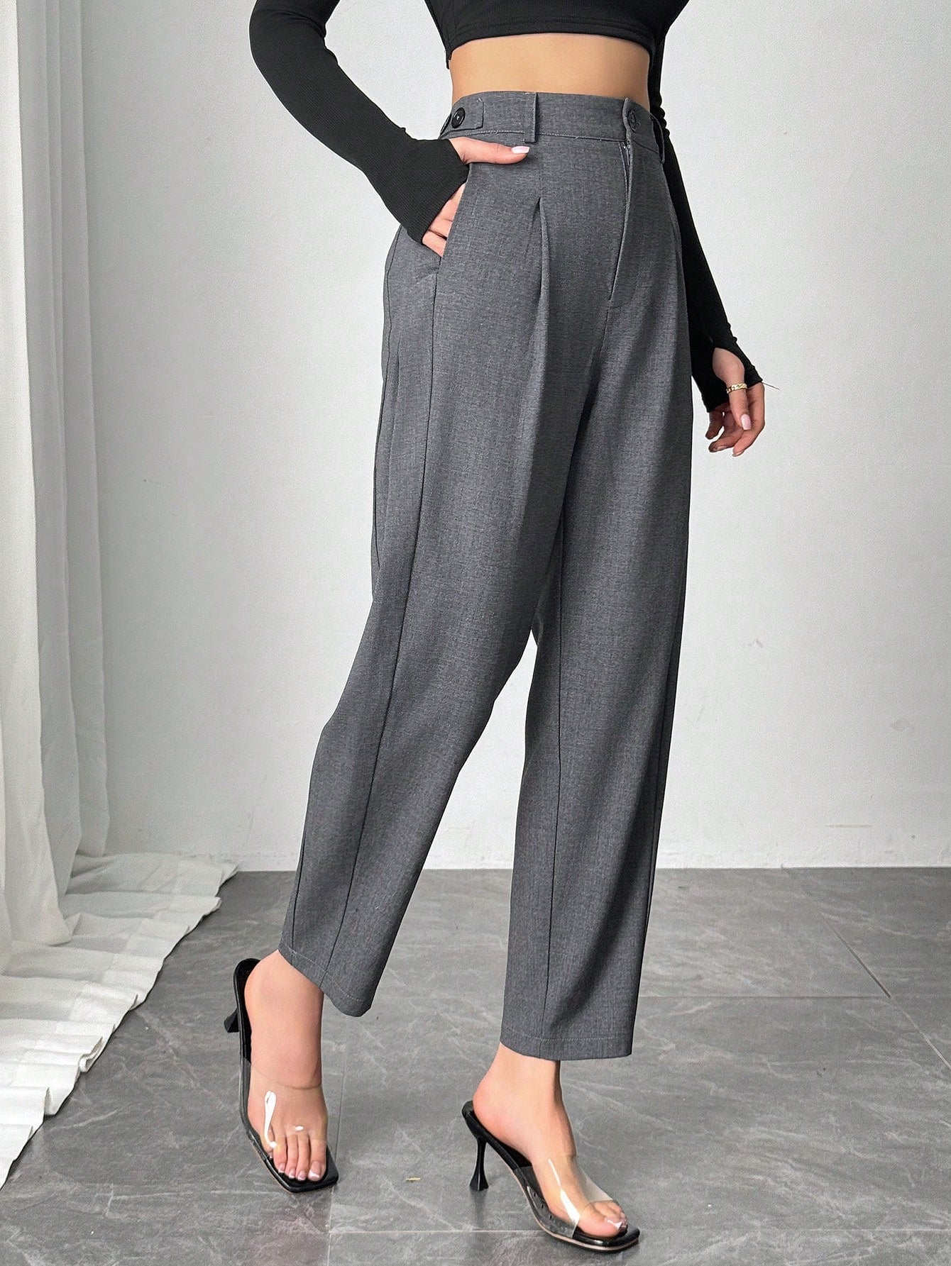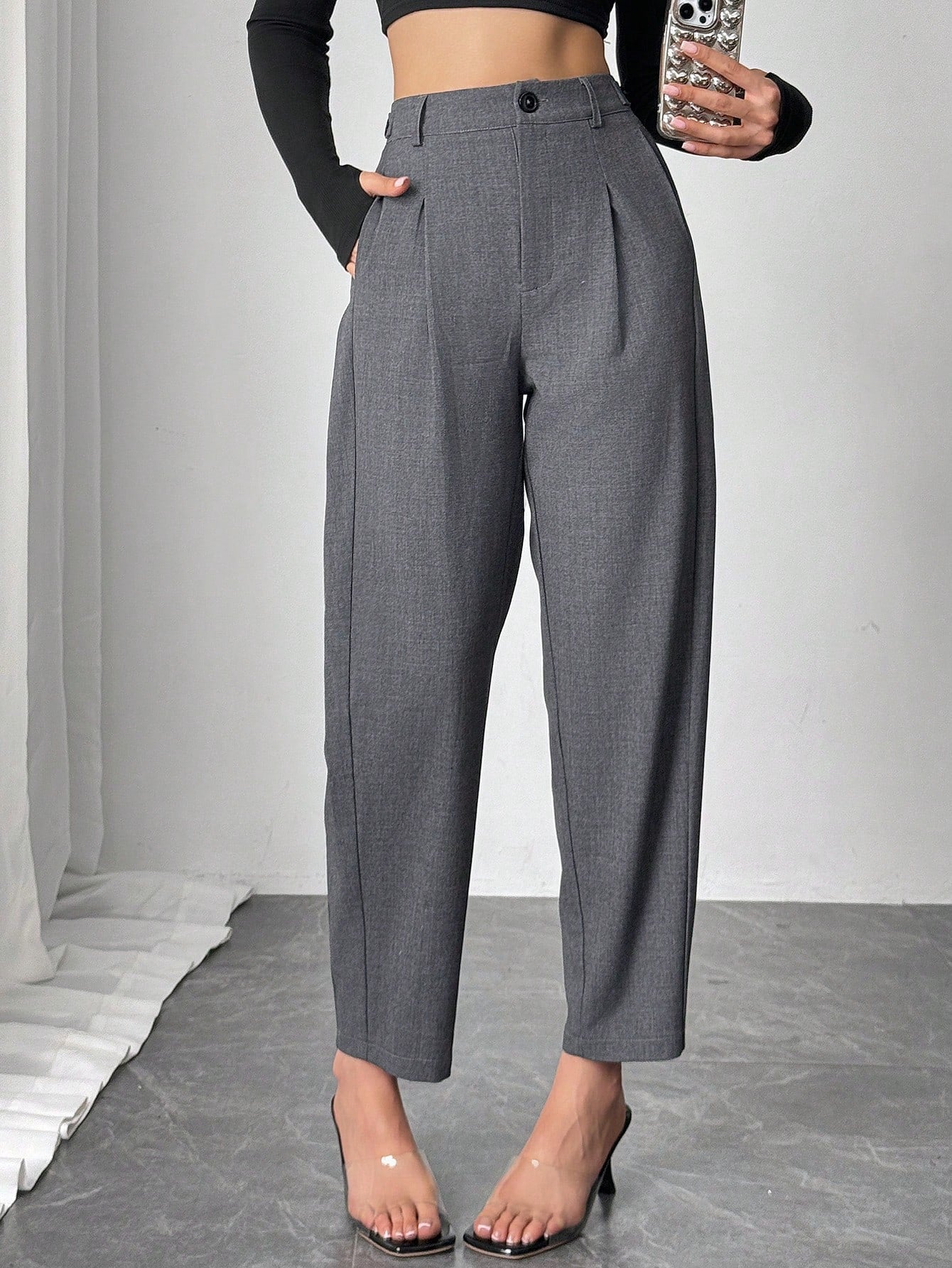 Chiquease Women's Solid Color Pleated Tapered Pants, Suitable For Commuting, Country Modest Music Festival