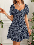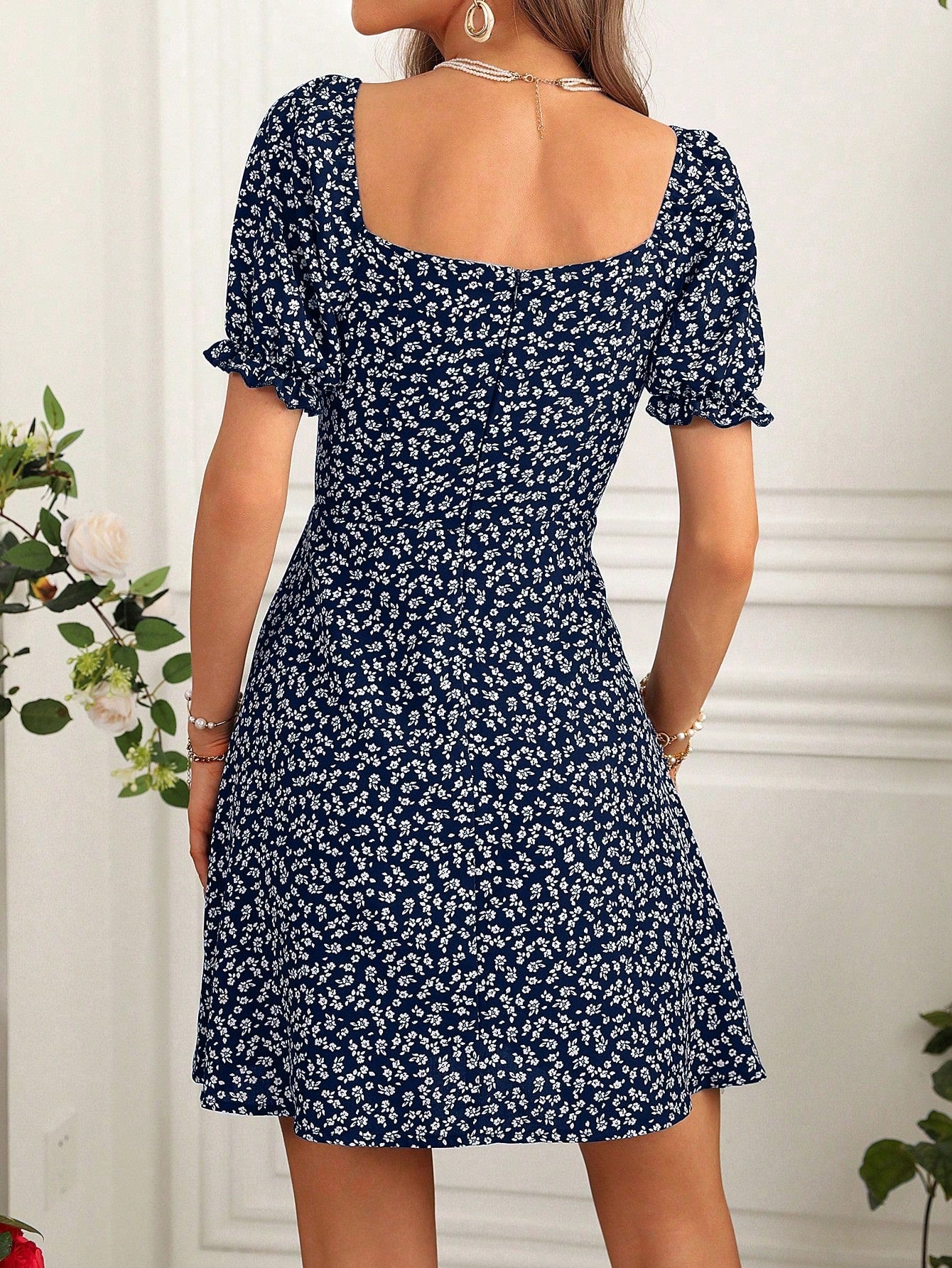 Clasi Floral Puff Sleeve Dress With Rhinestone Embellished Neckline For Summer