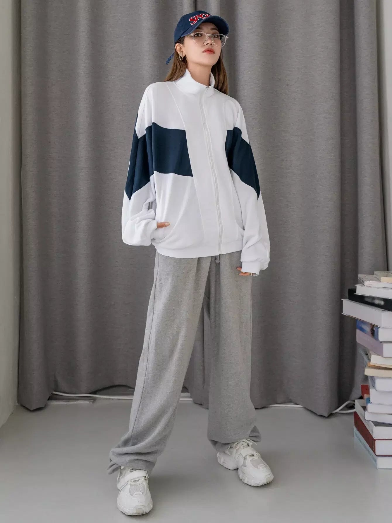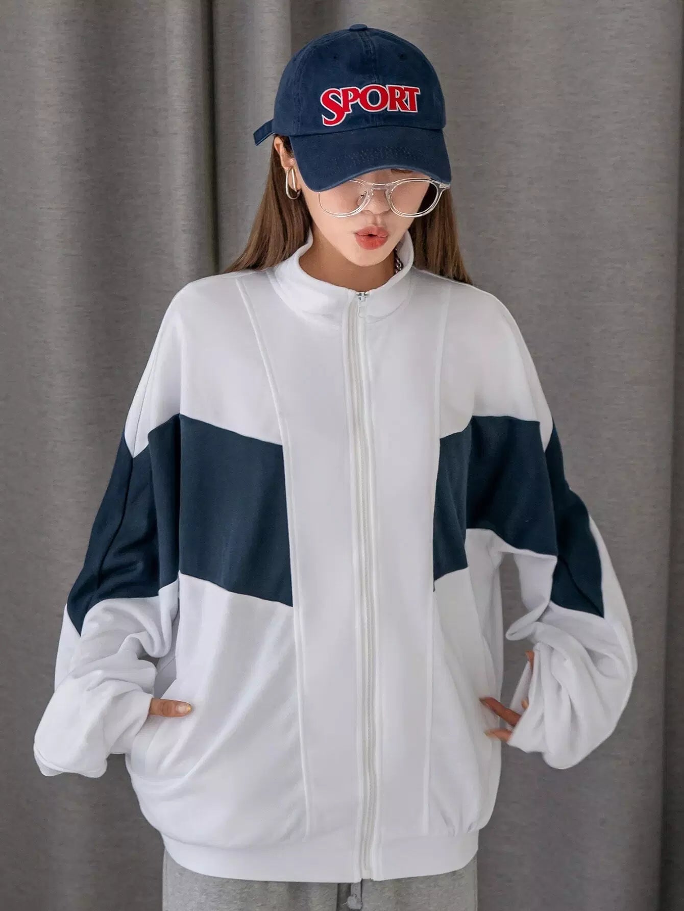 Color Block Dolman Sleeve Slant Pockets Sweatshirt