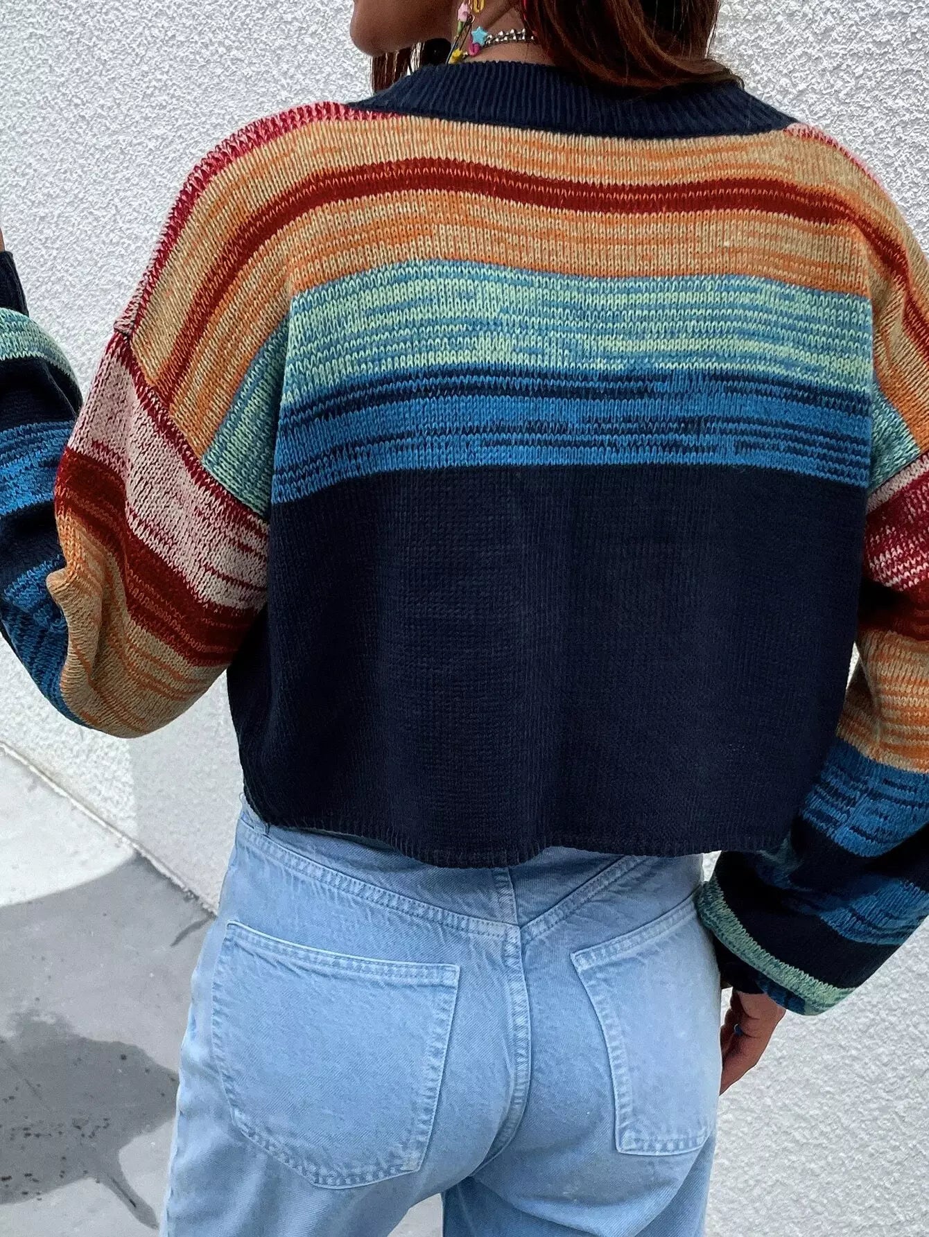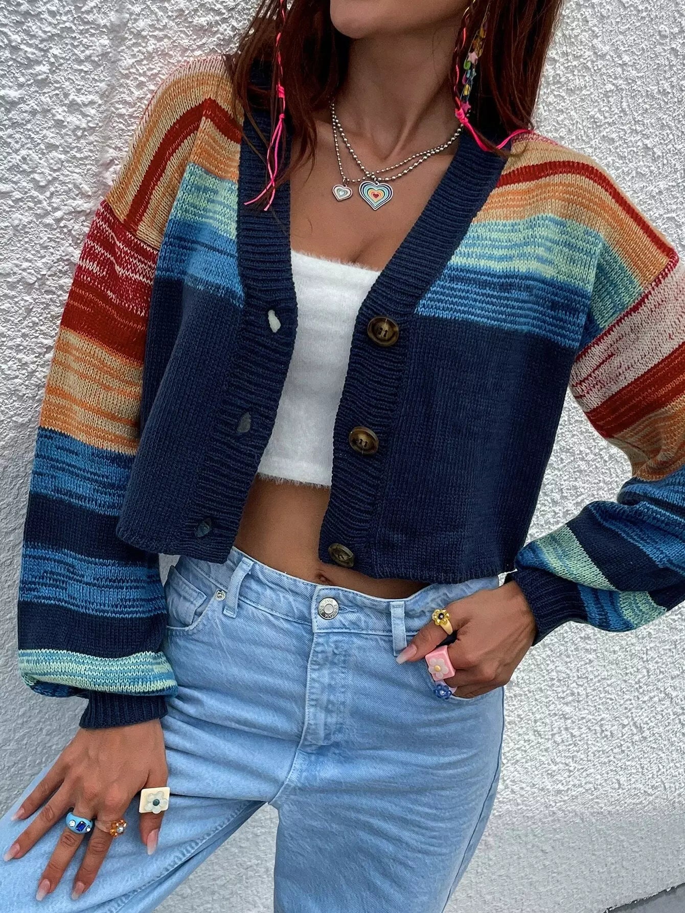Color Block Drop Shoulder Cardigan