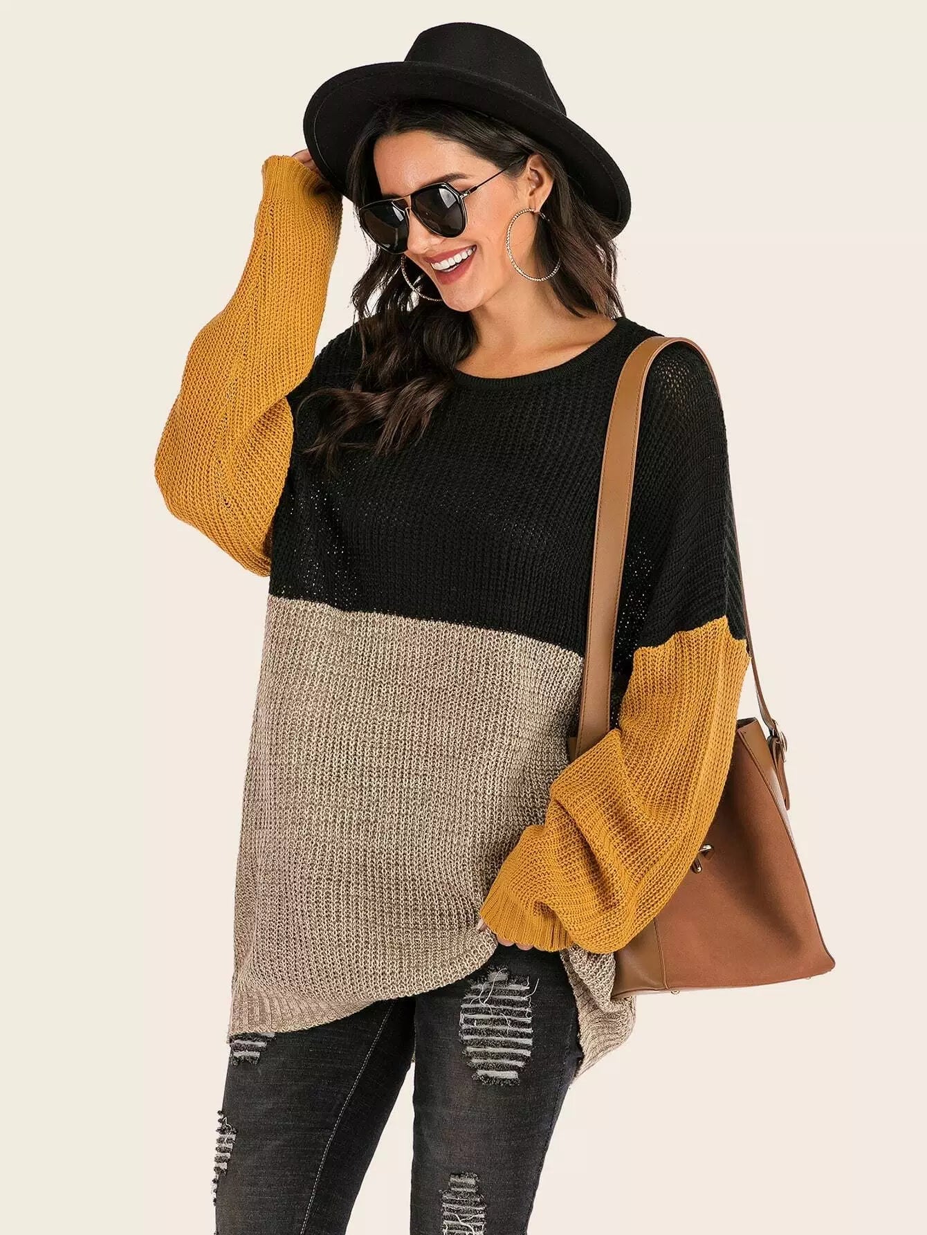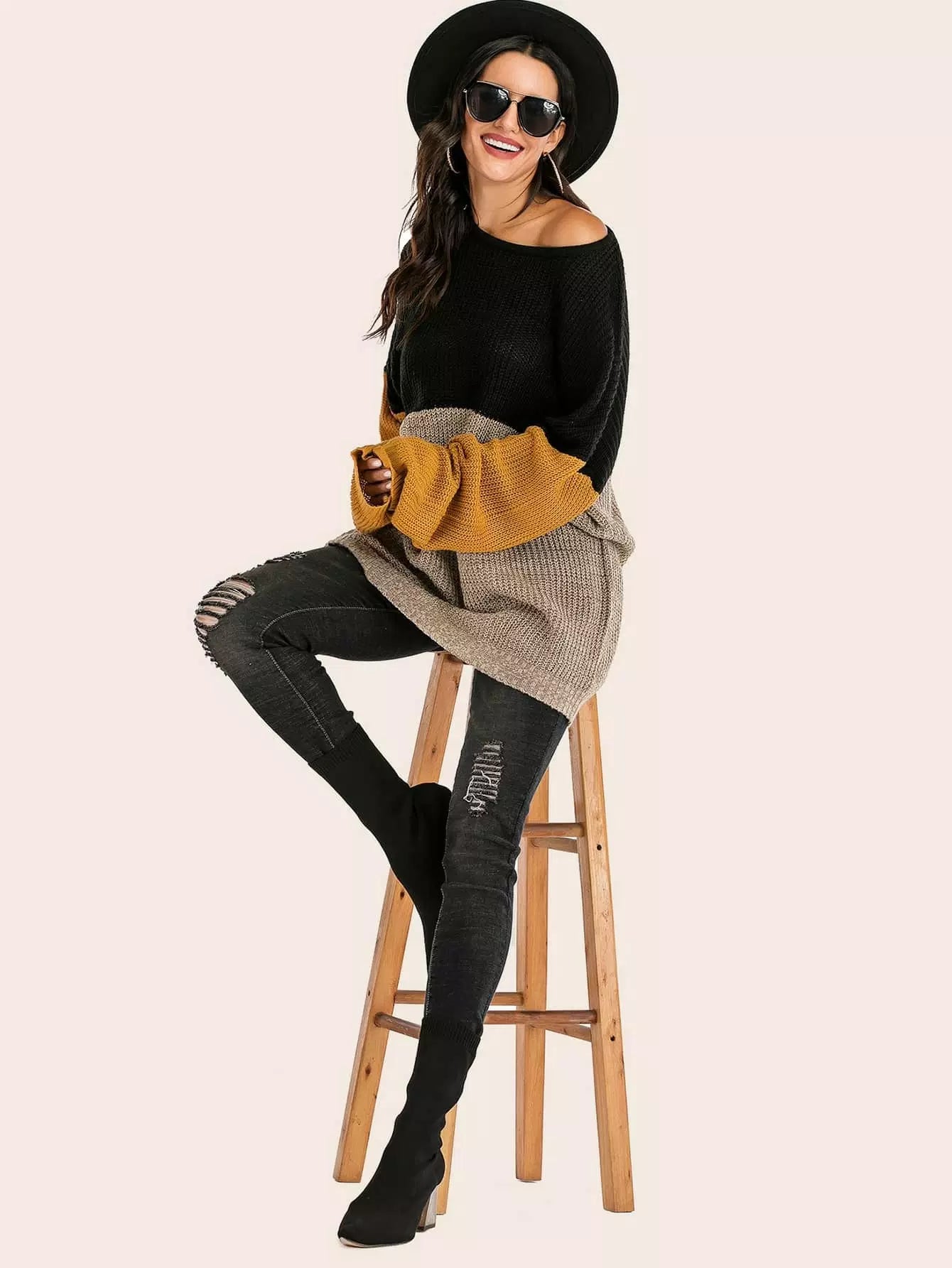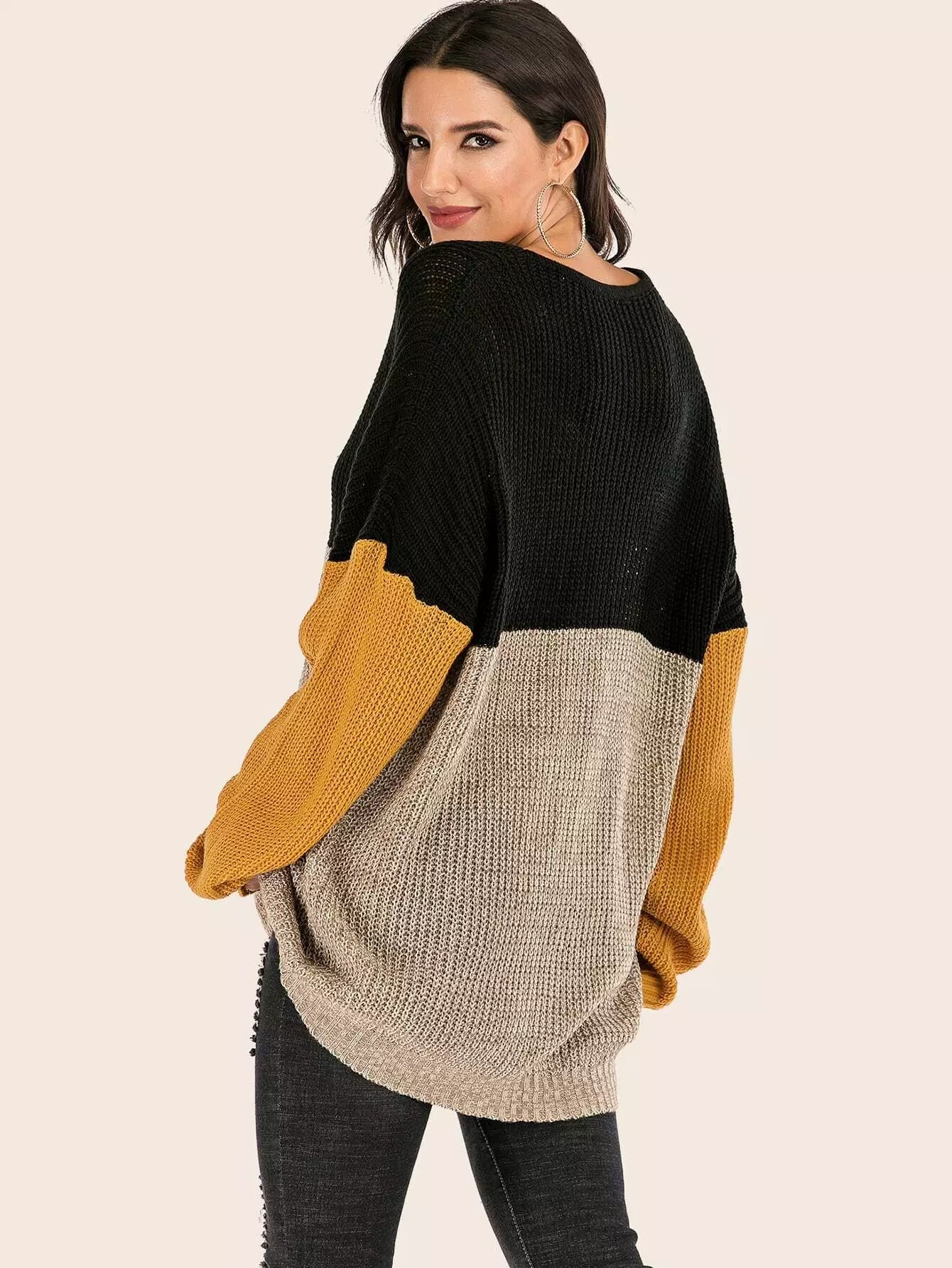 Color-block Drop Shoulder Ribbed Knit Sweater