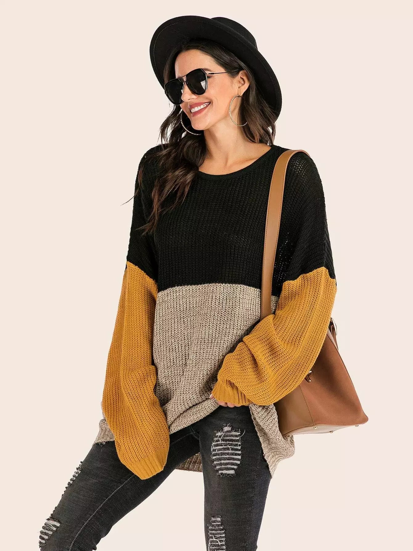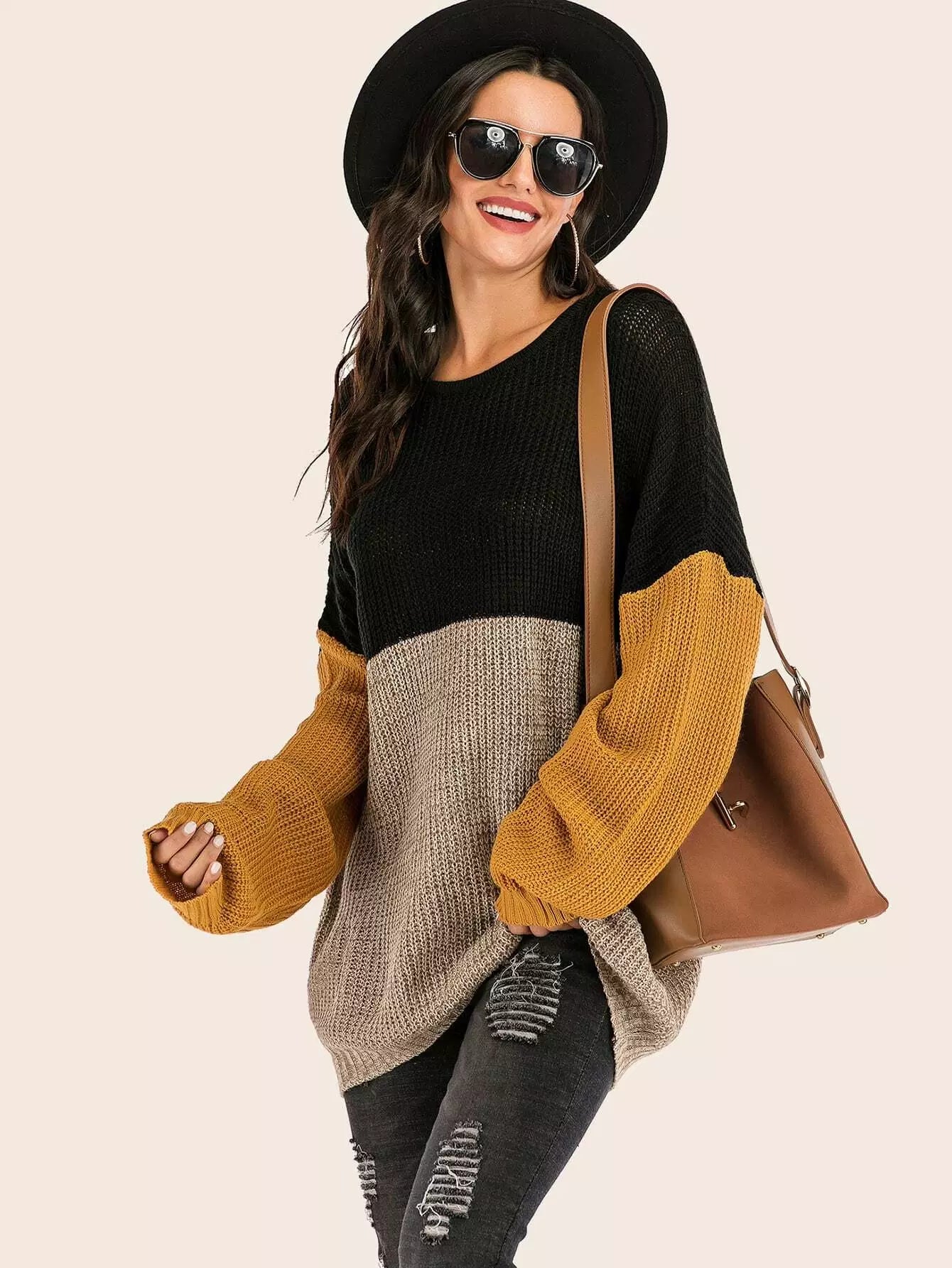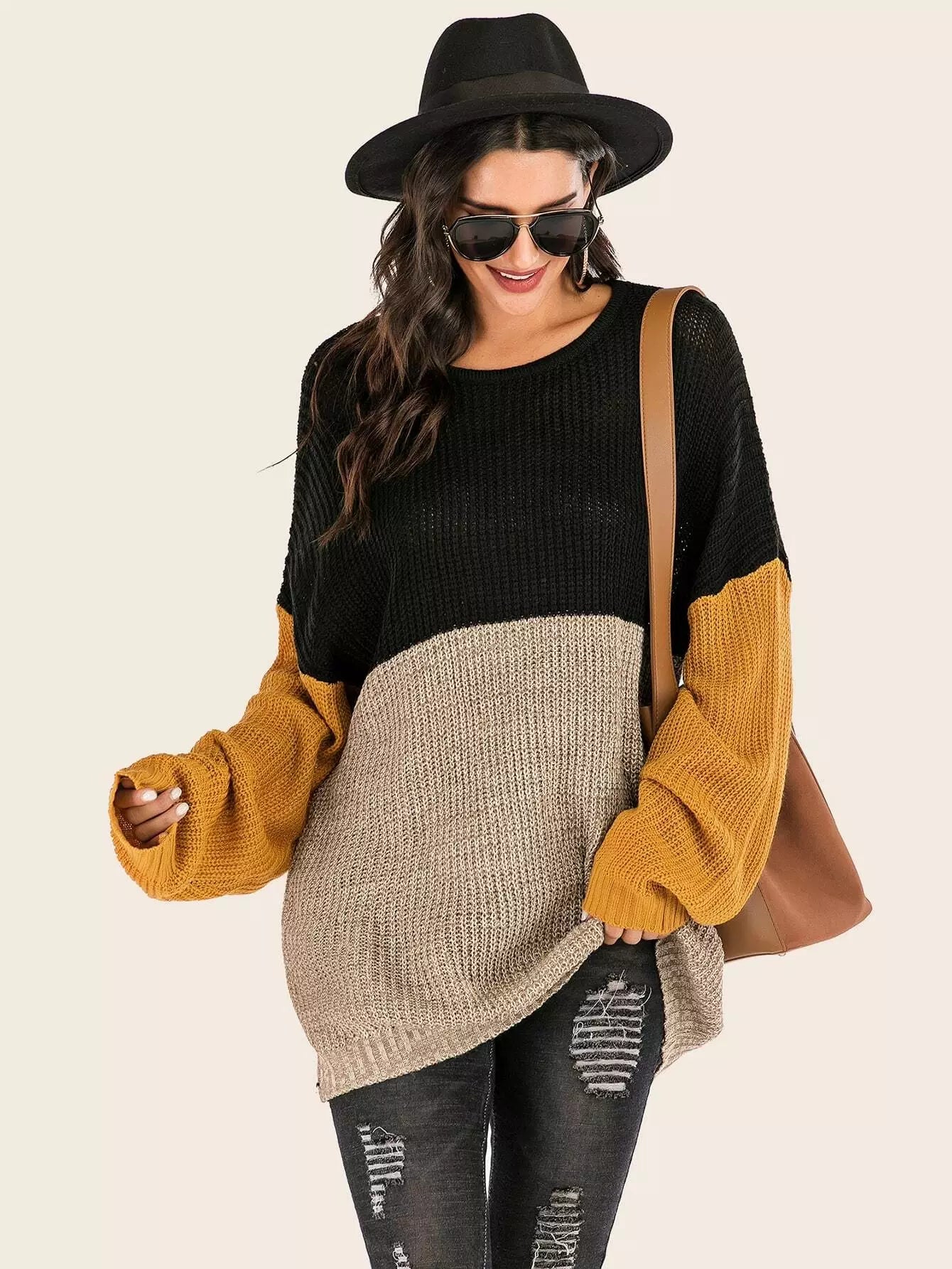 Color-block Drop Shoulder Ribbed Knit Sweater