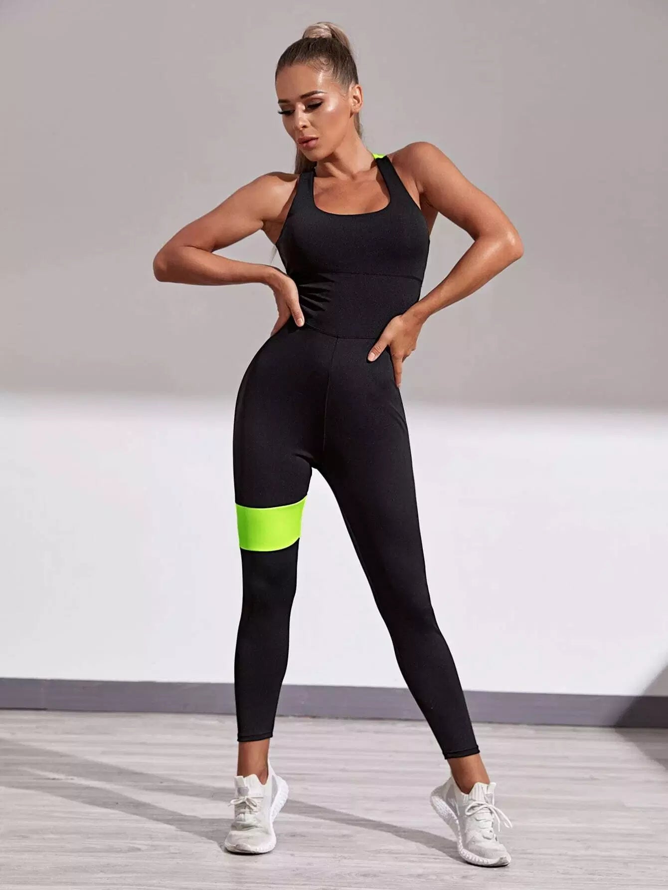 Colorblock Criss Cross Backless Sports Jumpsuit