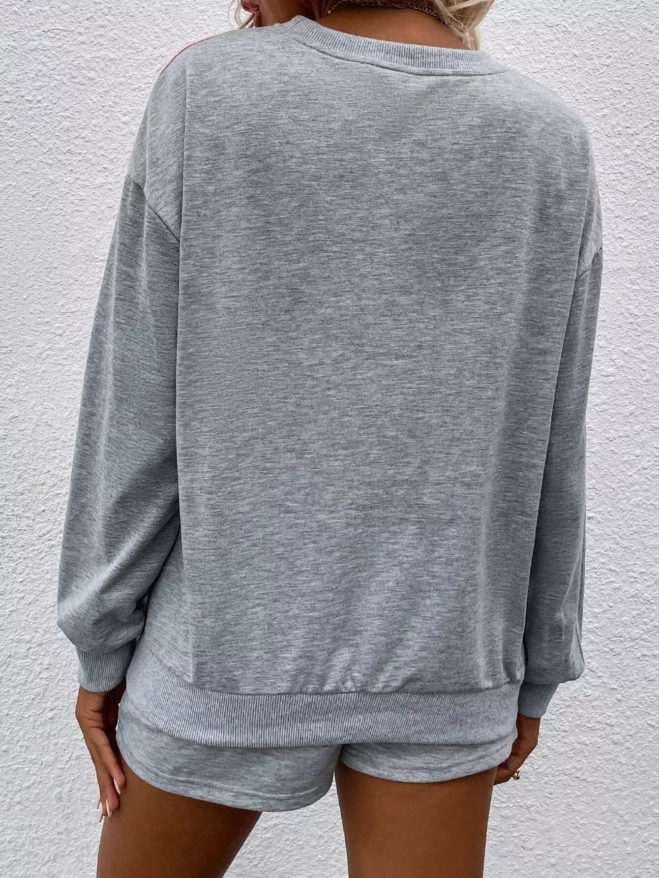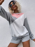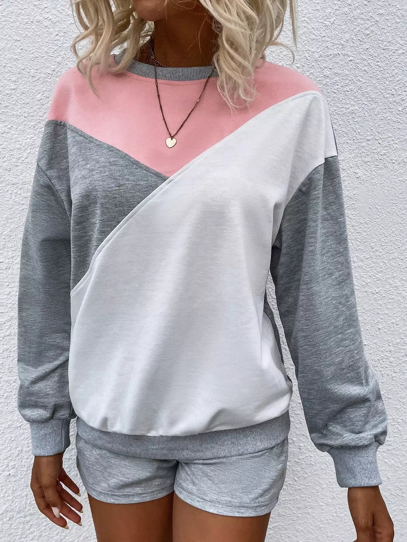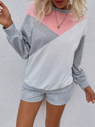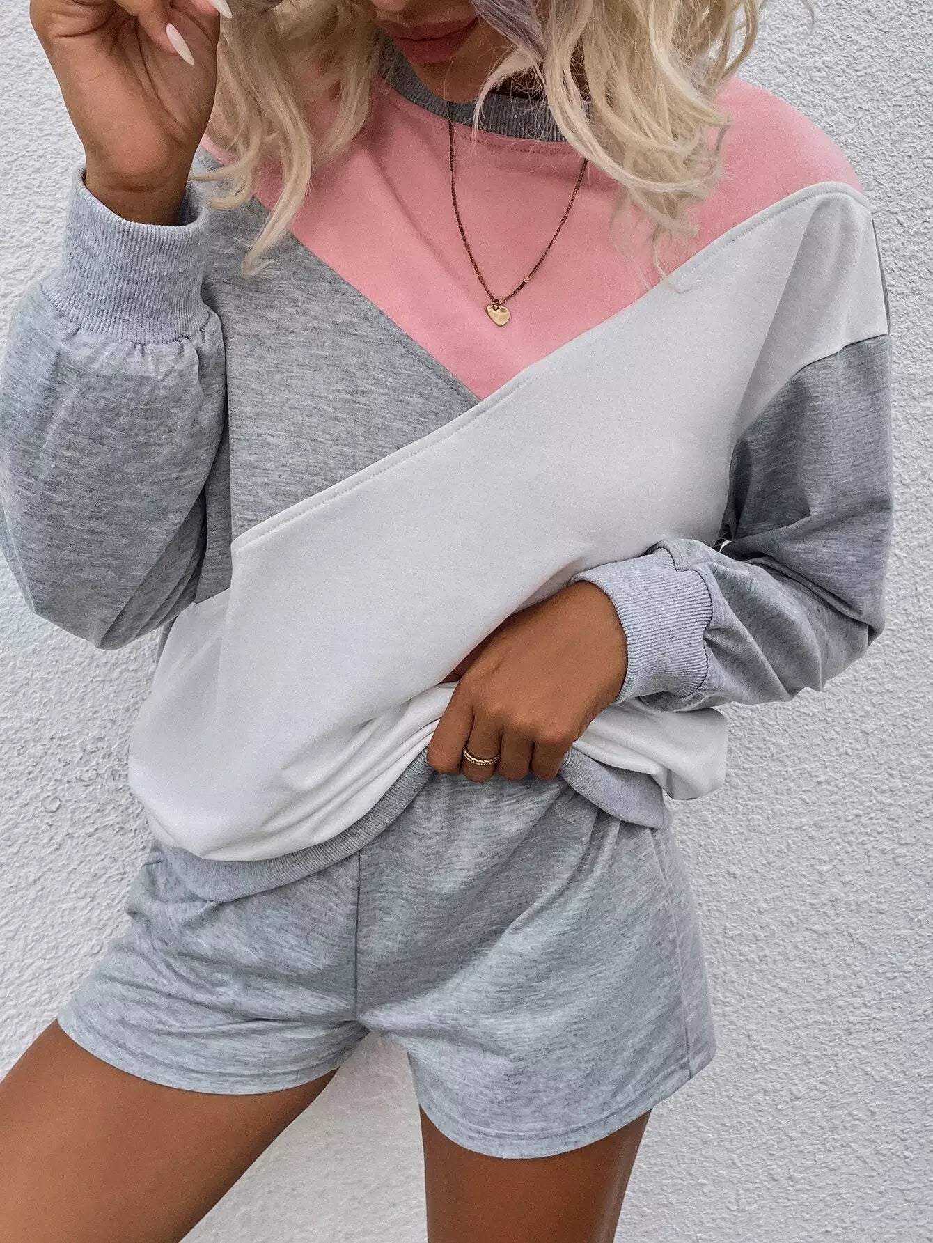 Women - Colorblock Drop Shoulder Sweatshirt & Shorts Set