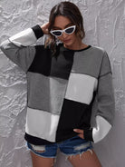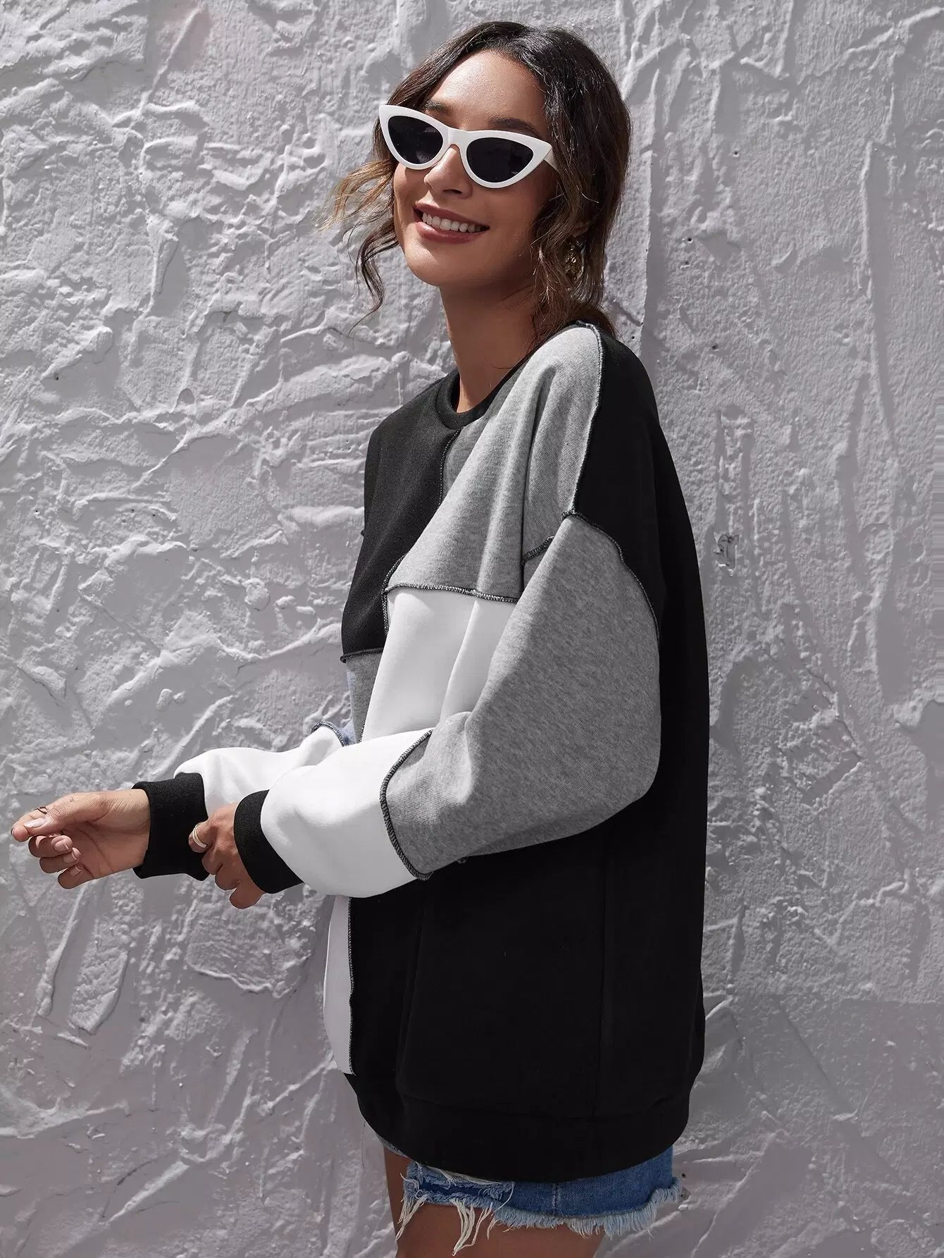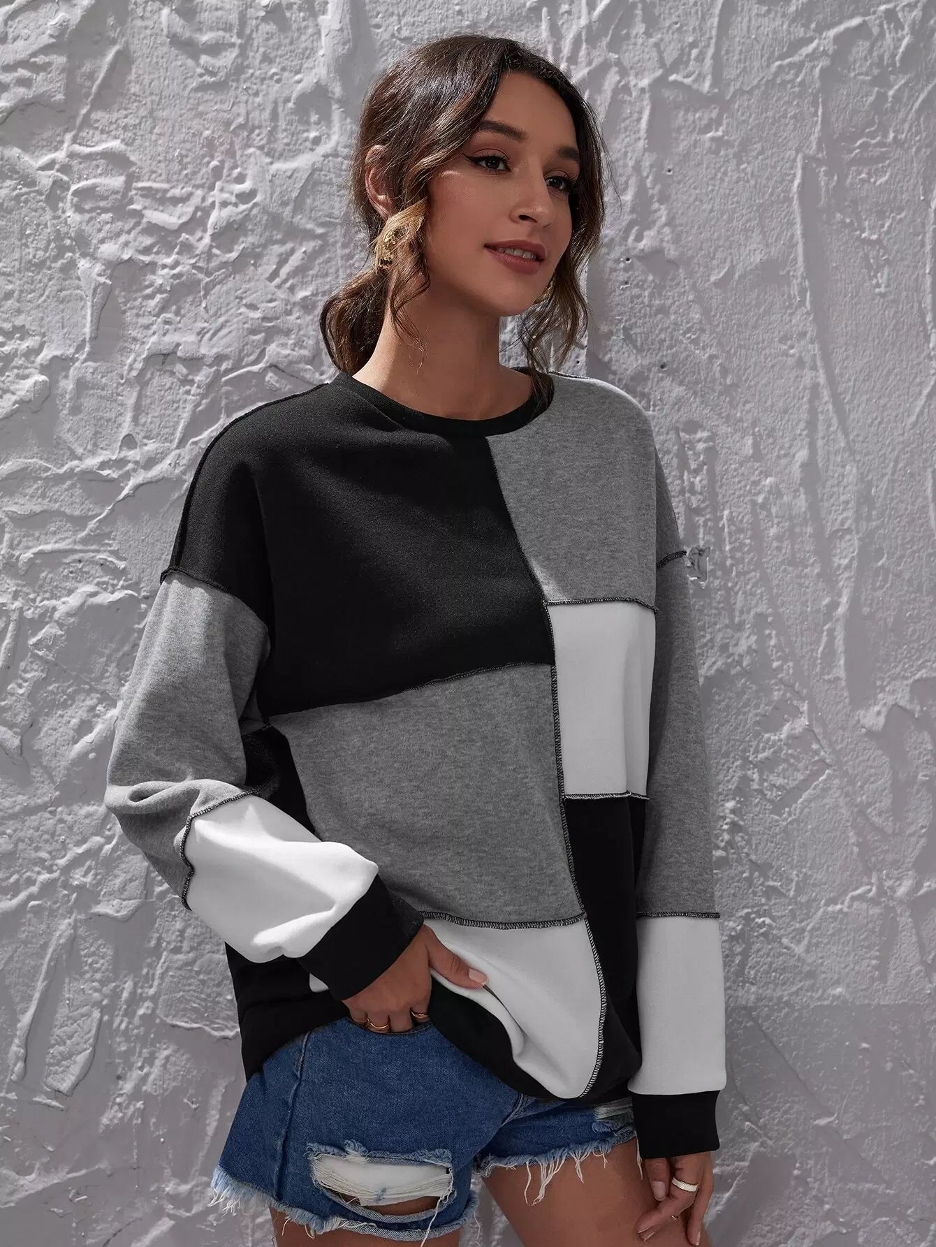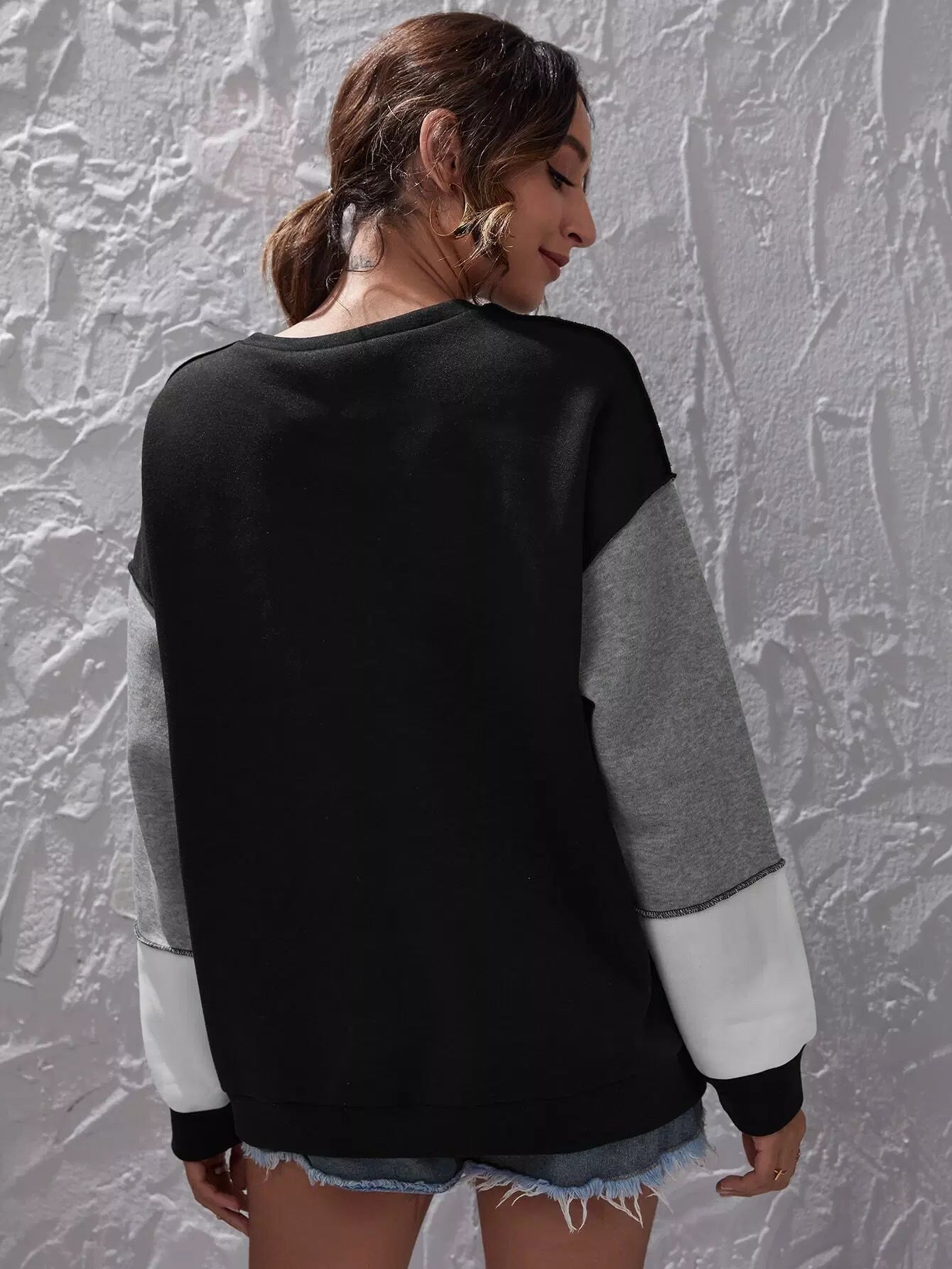 Colorblock Stitch Trim Drop Shoulder Sweatshirt