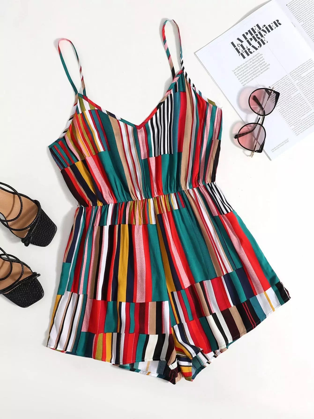 Colorful Striped Cami Romper