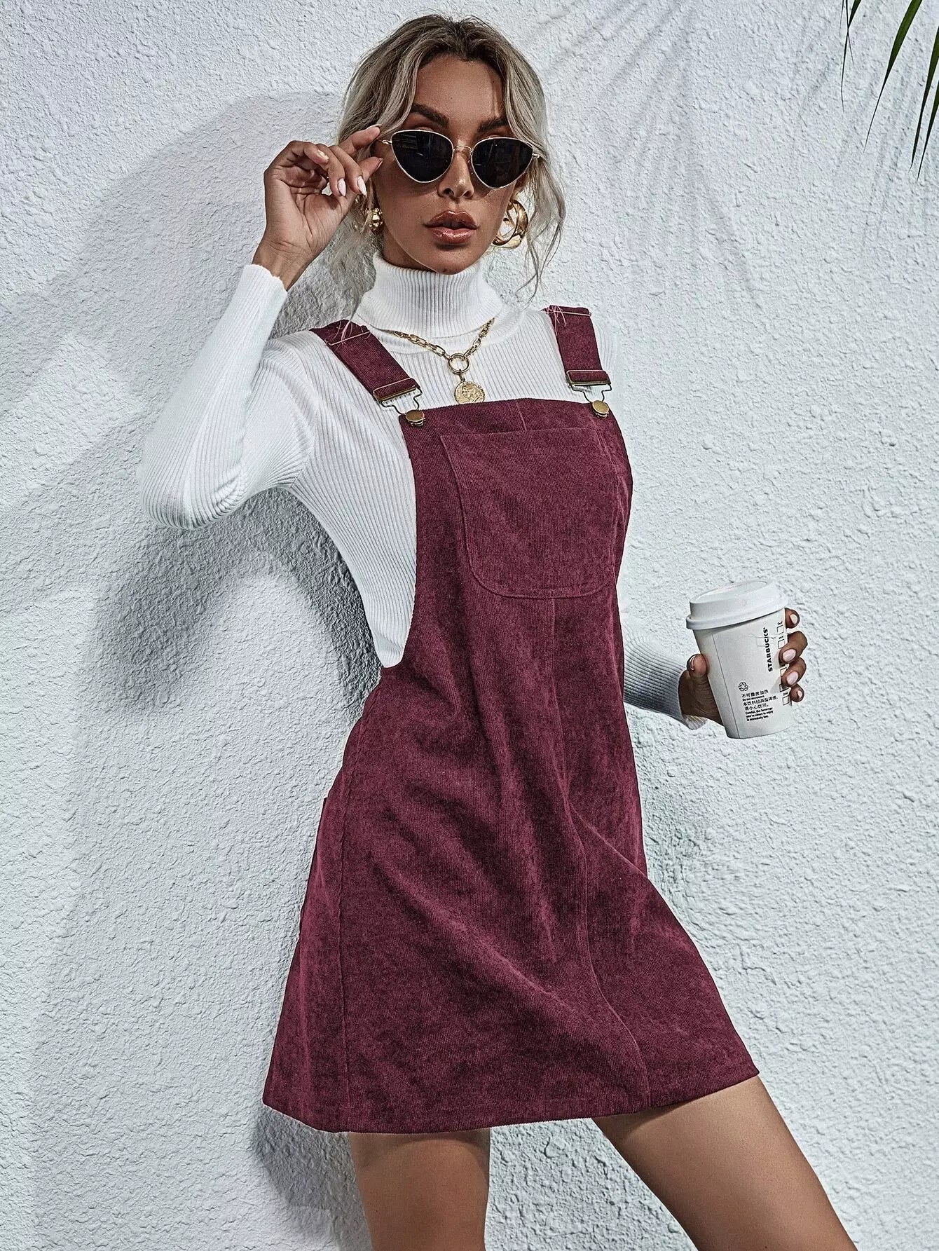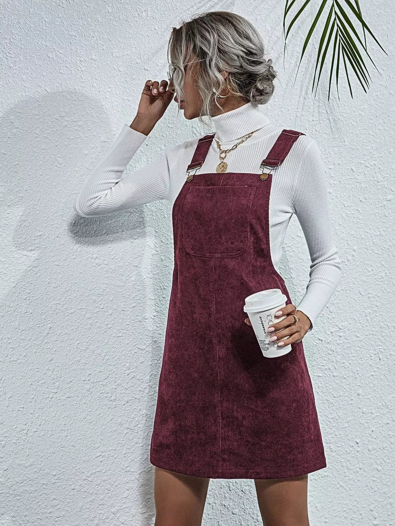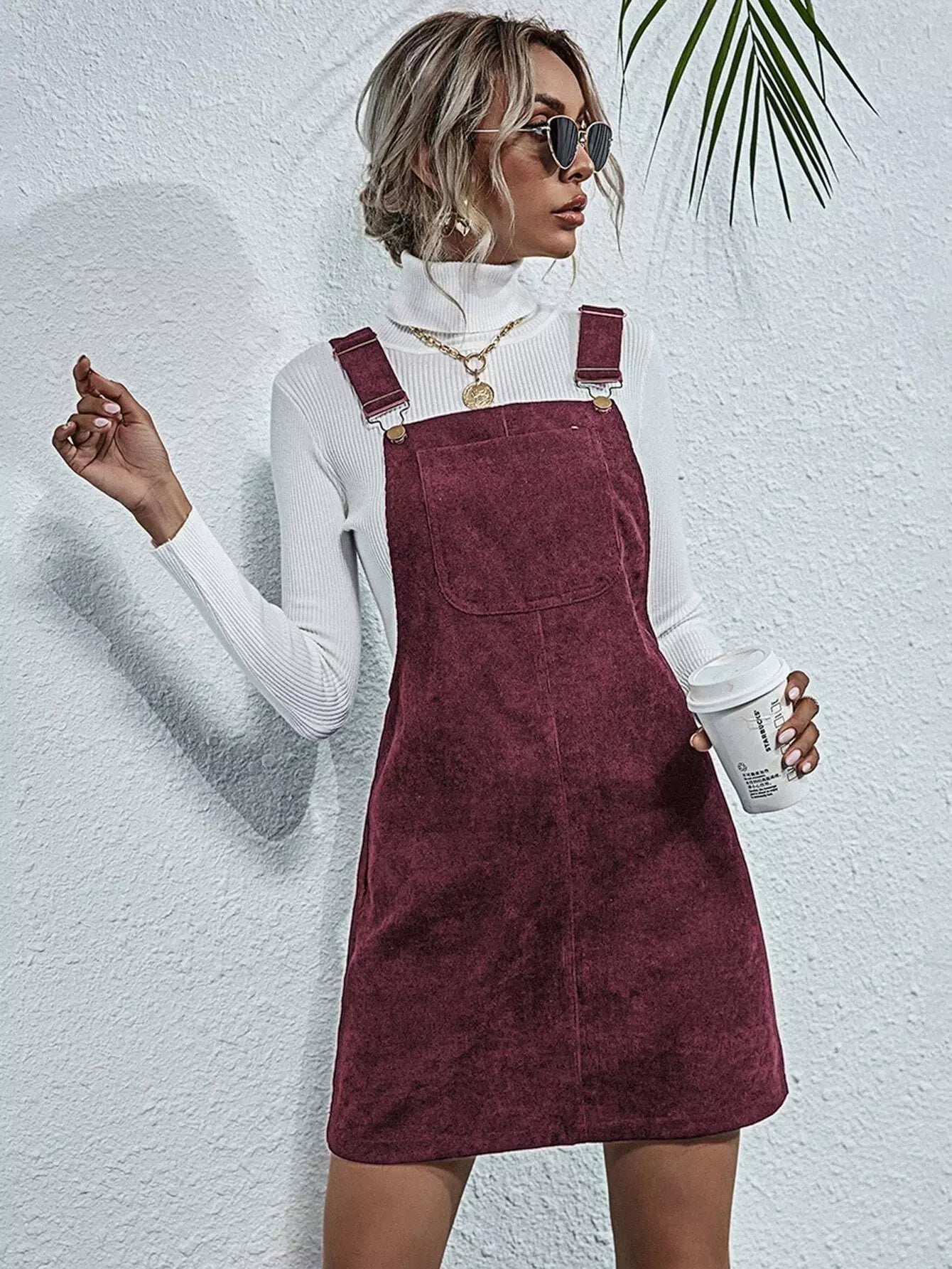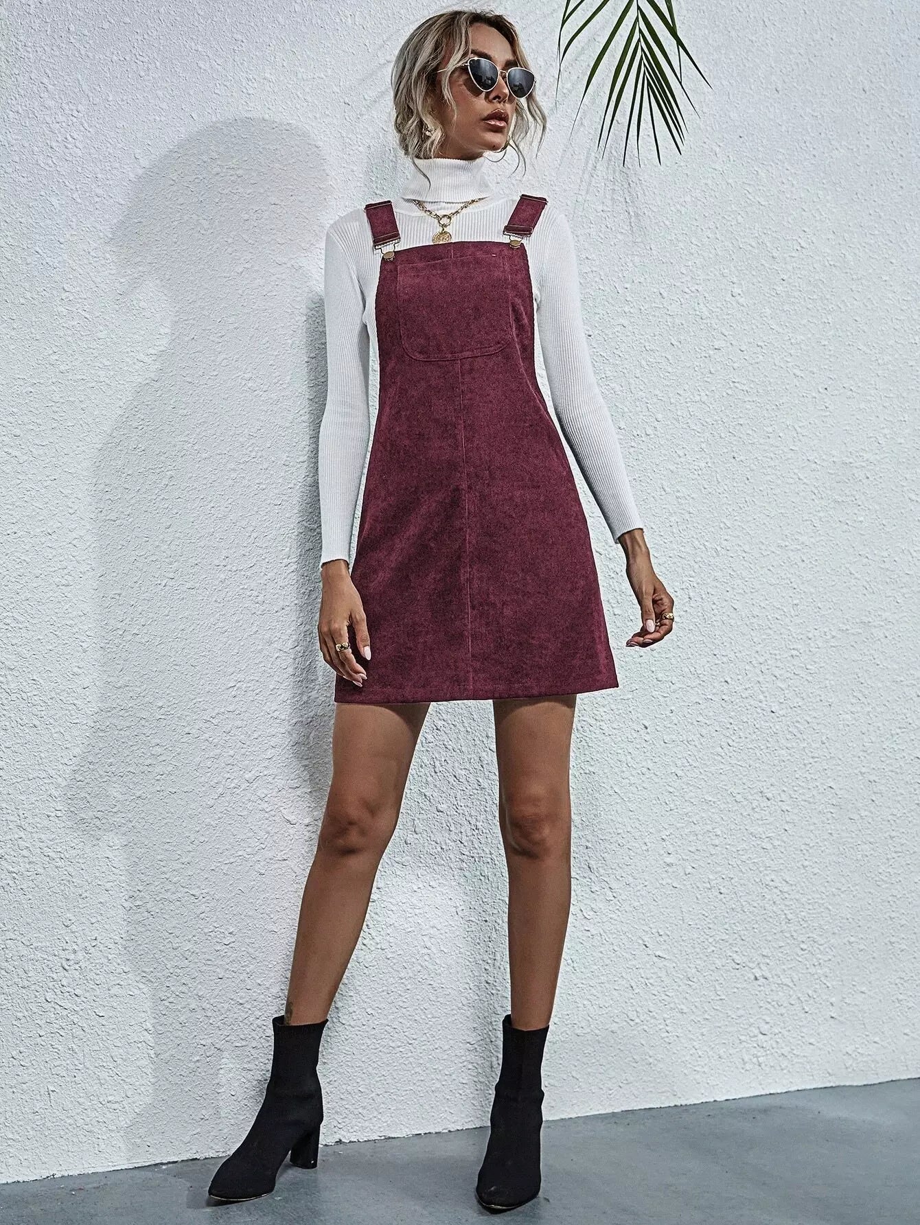 Corduroy Pocket Front Overall Dress