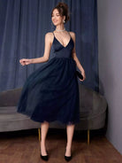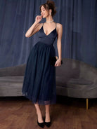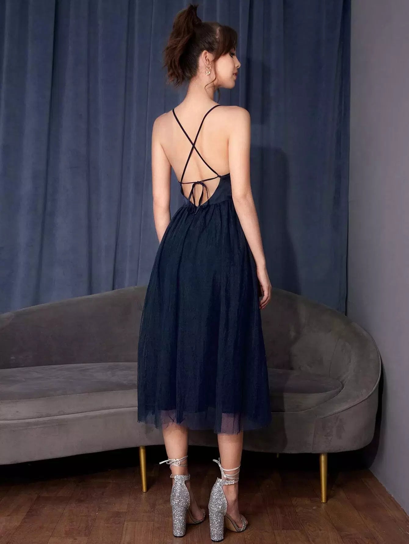 Criss Cross Lace Up Backless Contrast Mesh Cami Dress