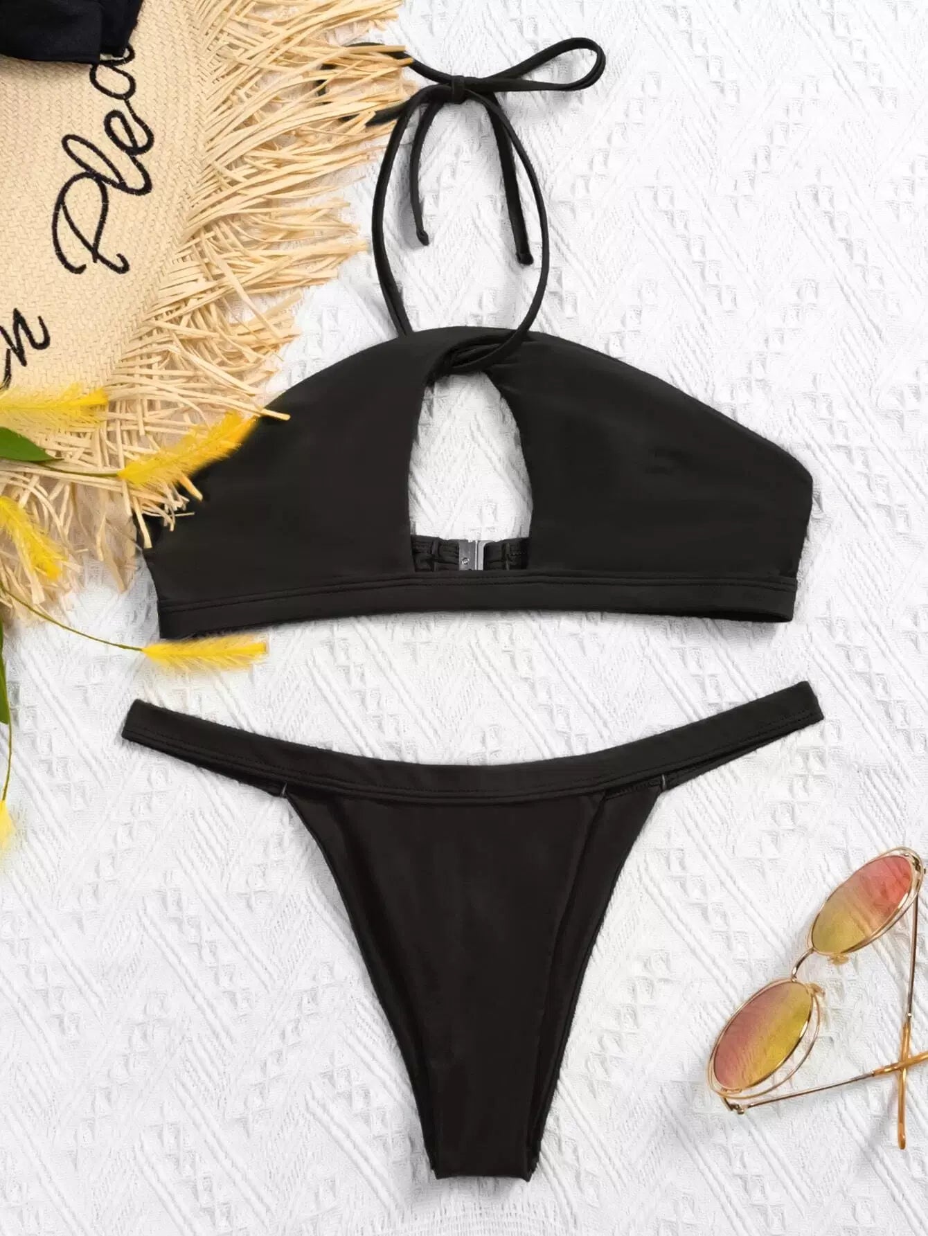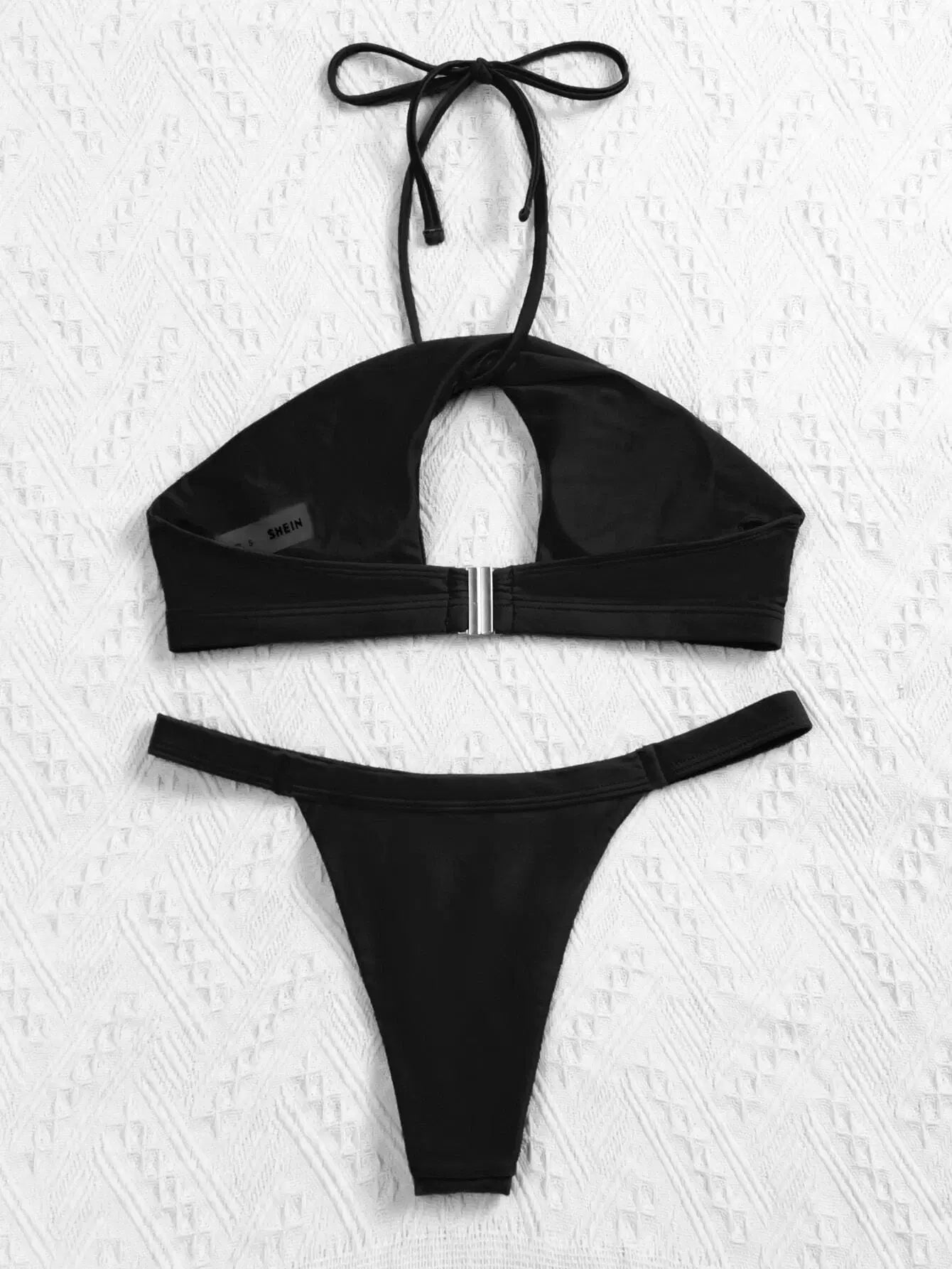 Cut Out Halter Thong Bikini Swimsuit