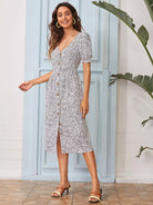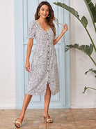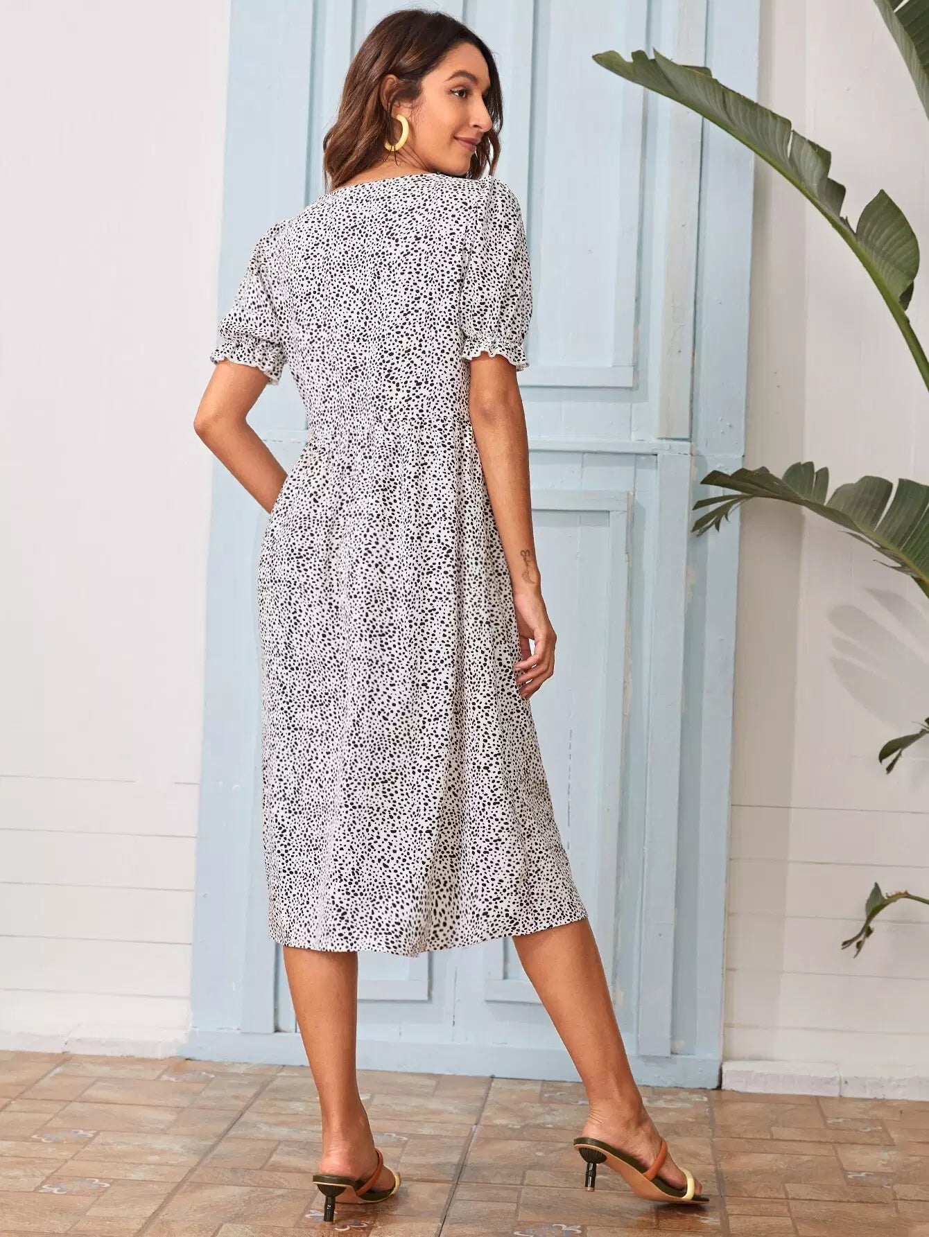 Dalmatian Flounce Sleeve Patch Pocket Button Front Dress