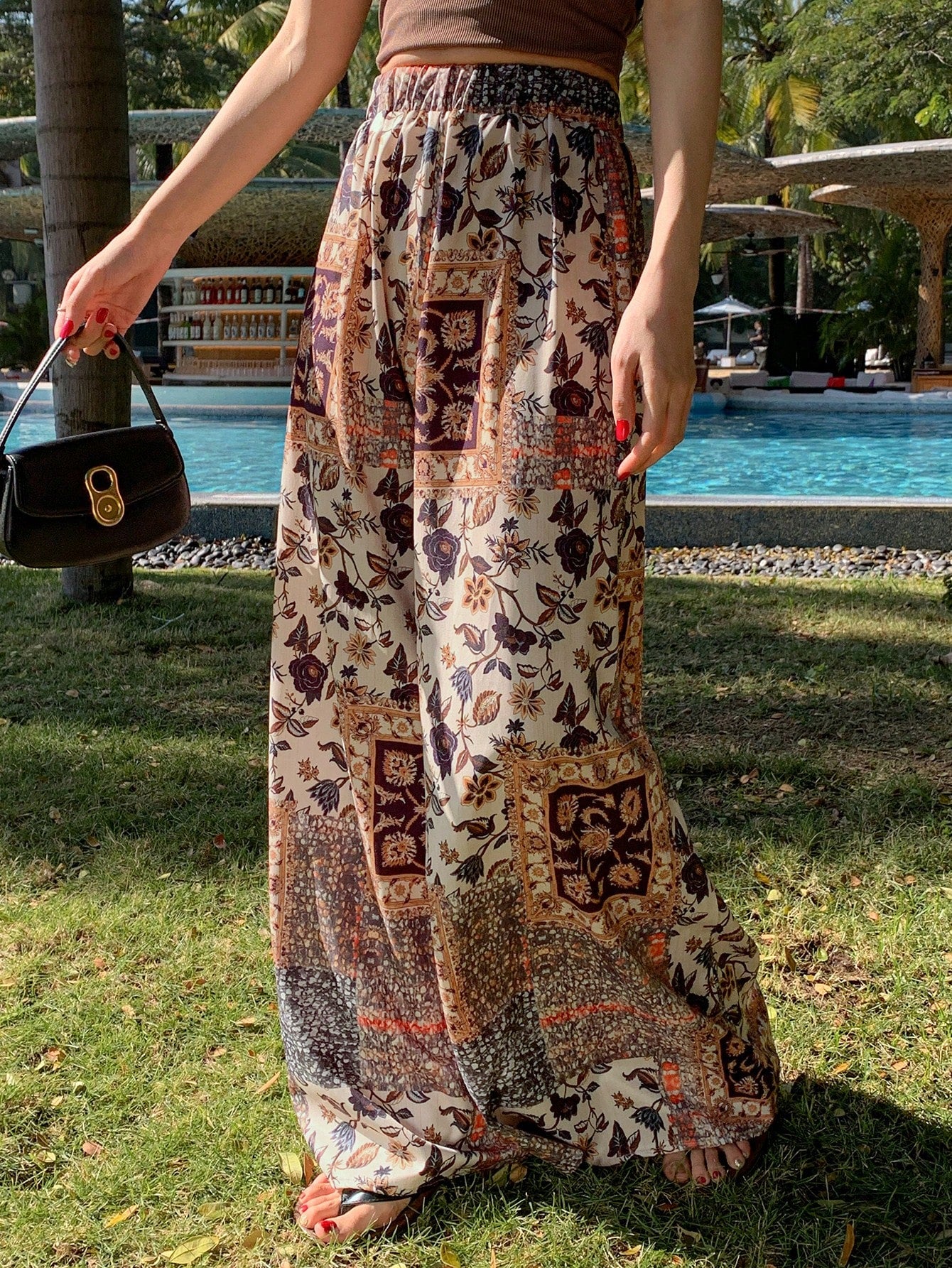DAZY Bohemian Style Full Flower Print Palazzo Pants For Women,Teacher Pants