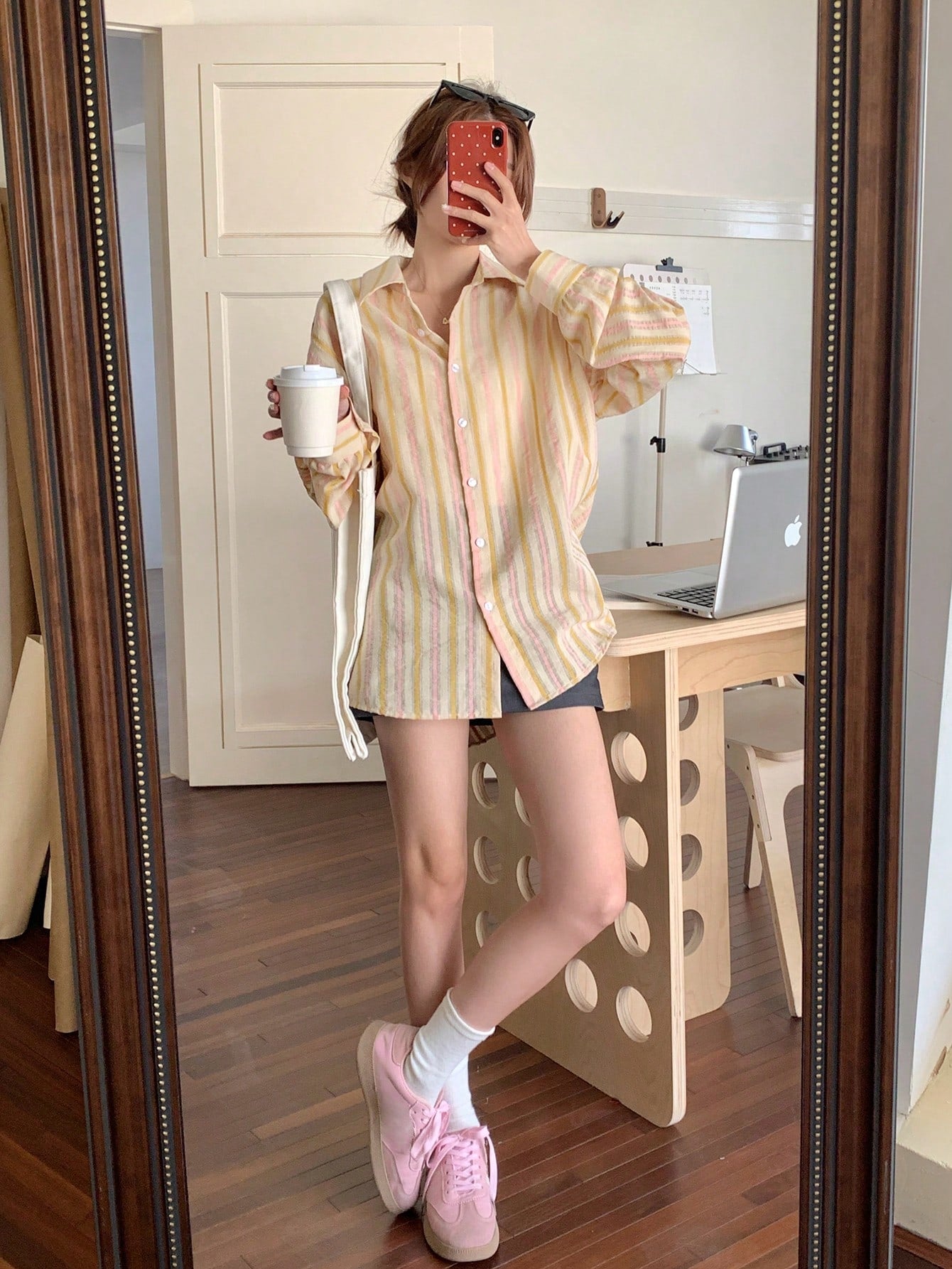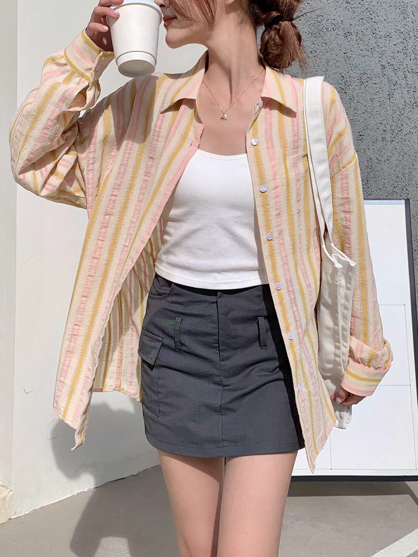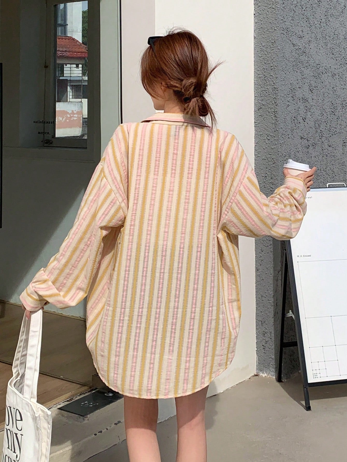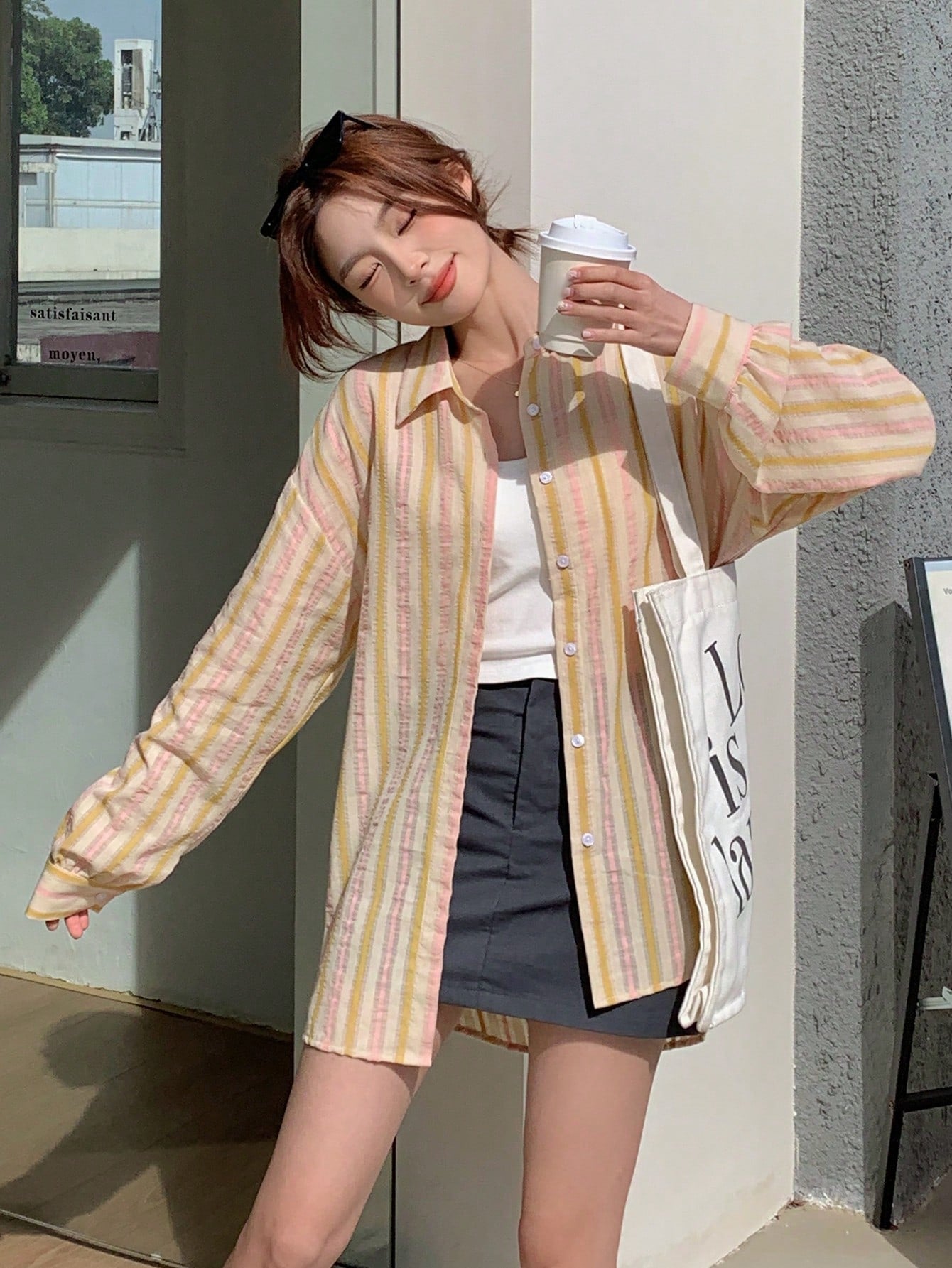 women DAZY Contrast-Color Striped Loose Fit Long Sleeve Lapel Collar Women's Shirt