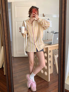 DAZY Contrast-Color Striped Loose Fit Long Sleeve Lapel Collar Women's Shirt