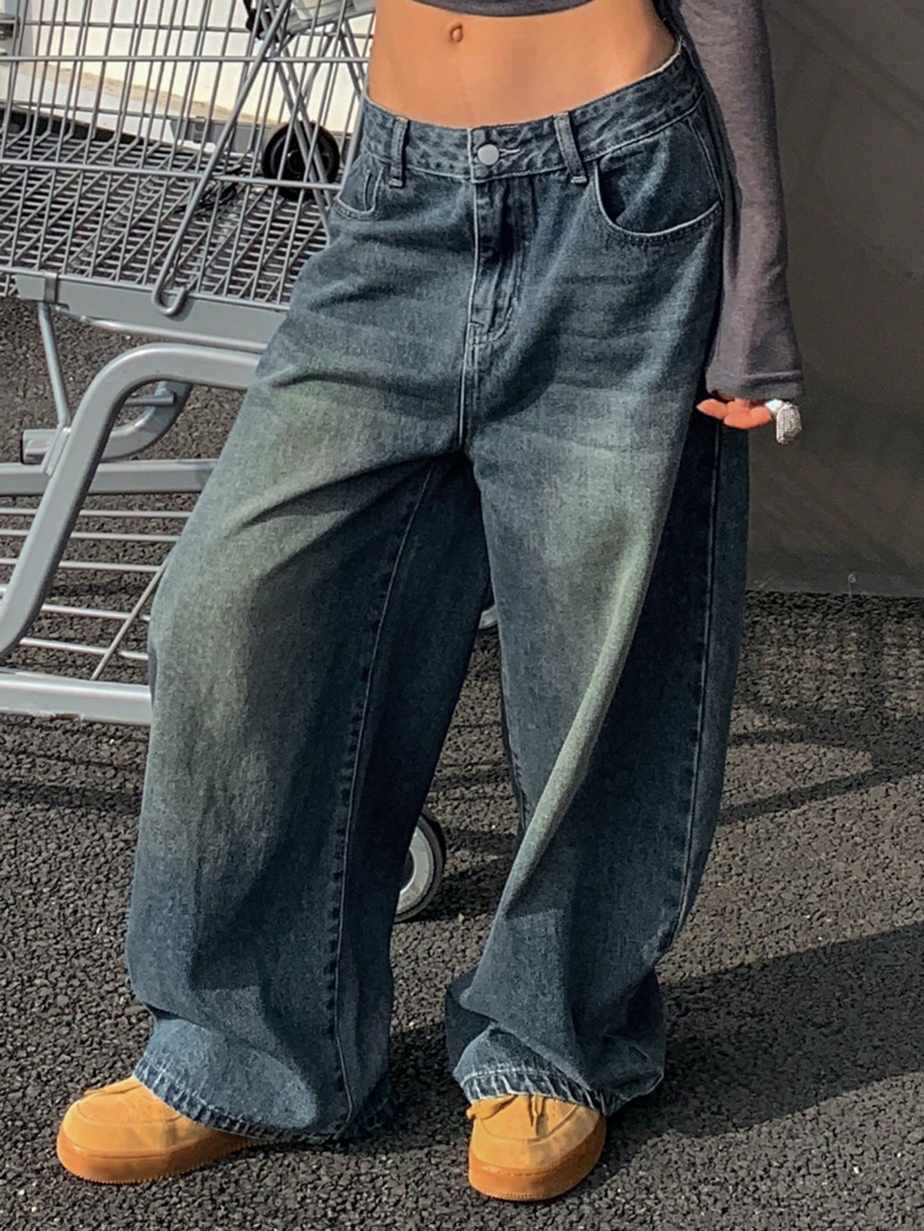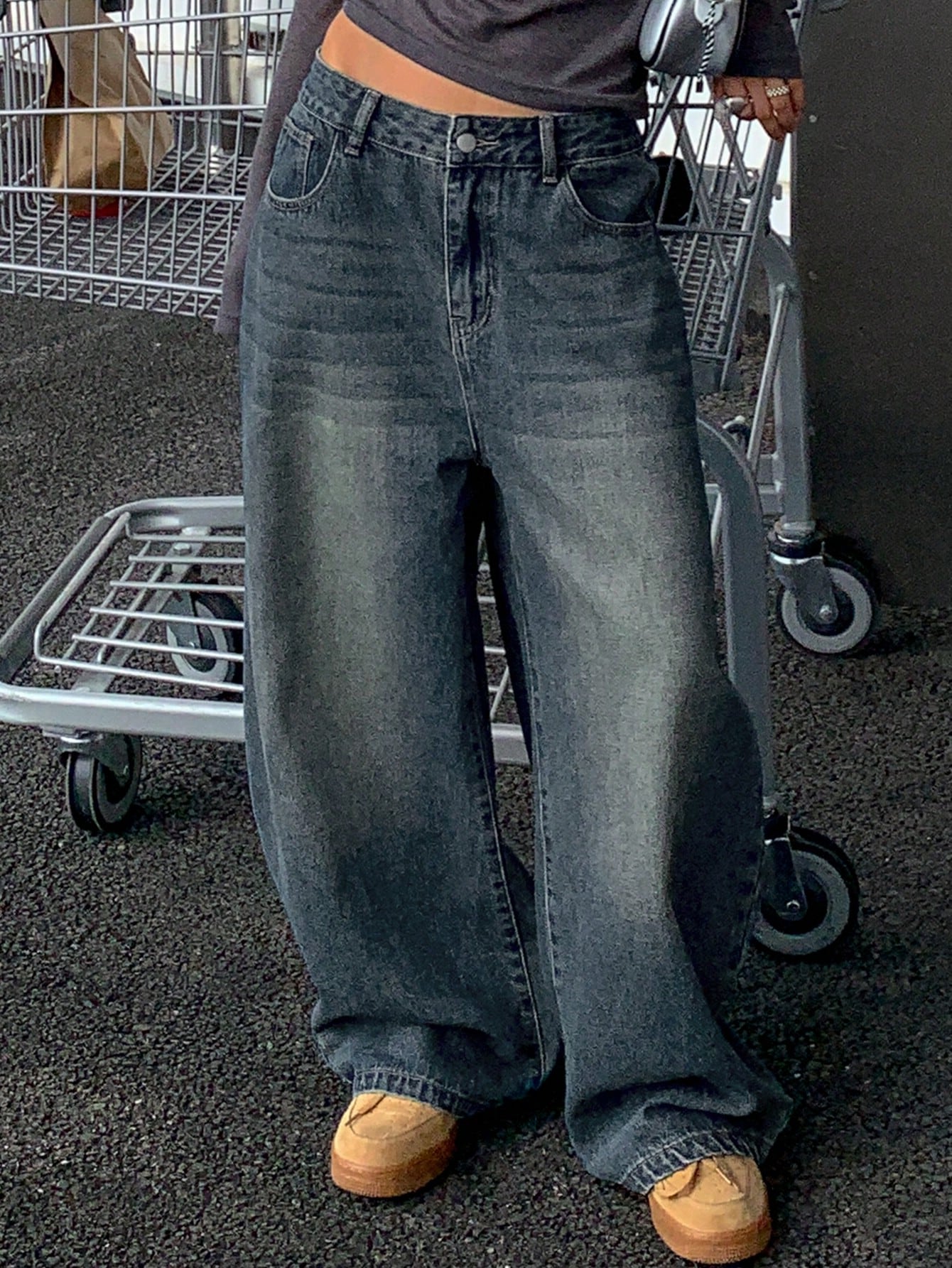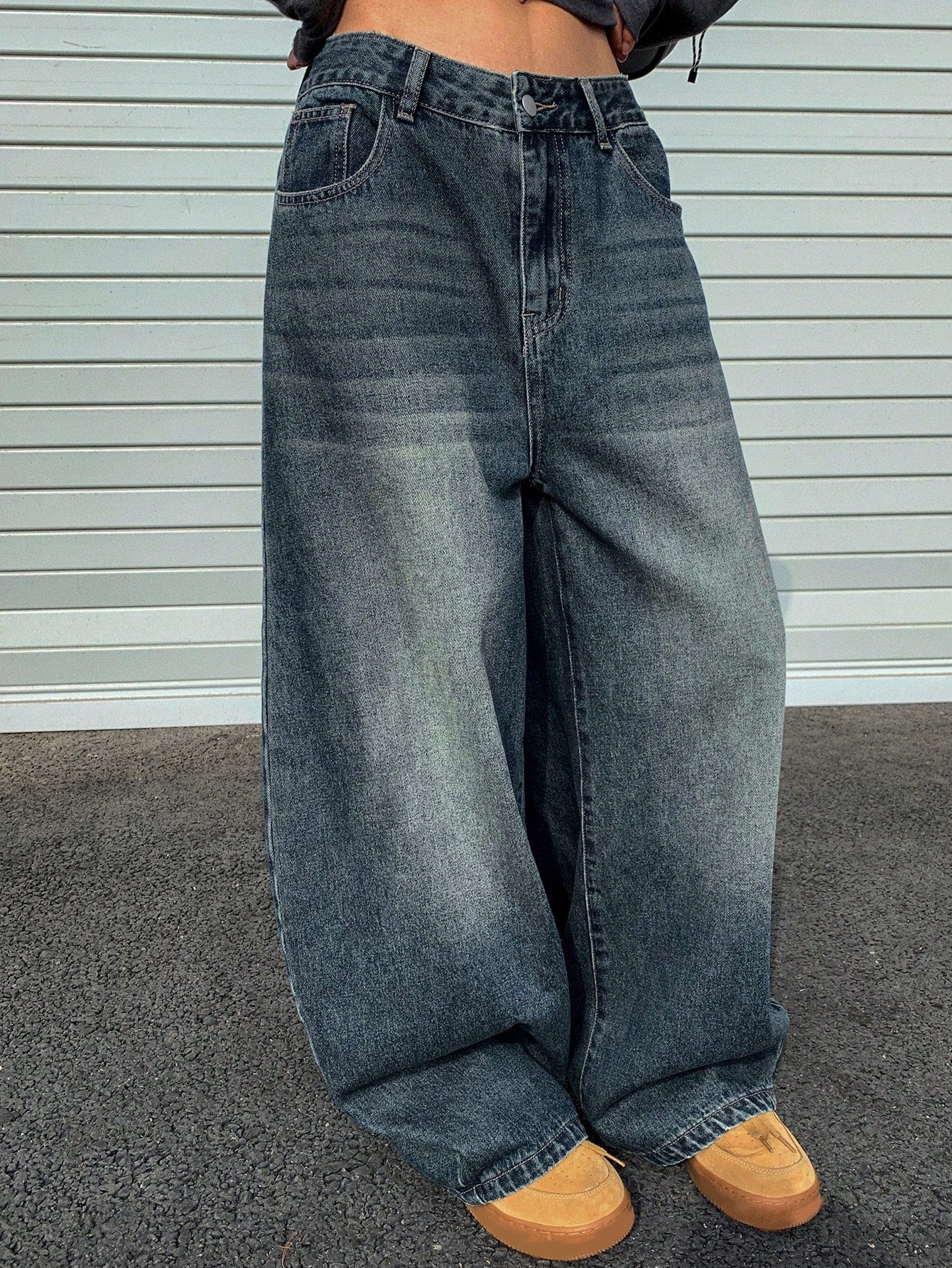 DAZY Vintage Loose Street Wash Faded Wide-Leg Women Baggy Jeans Y2k