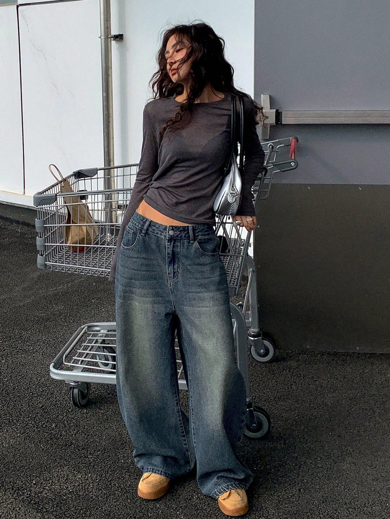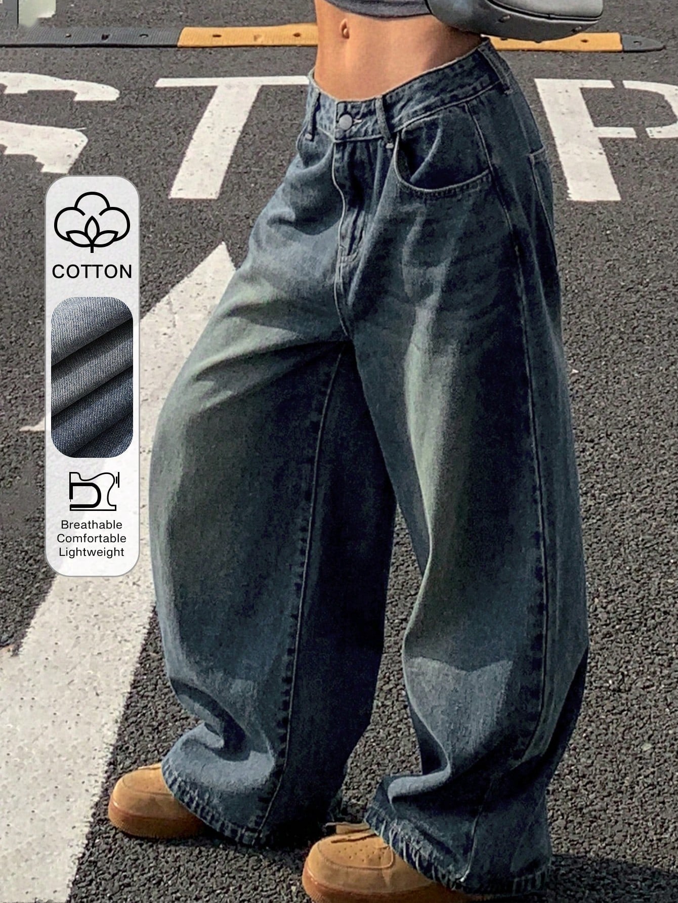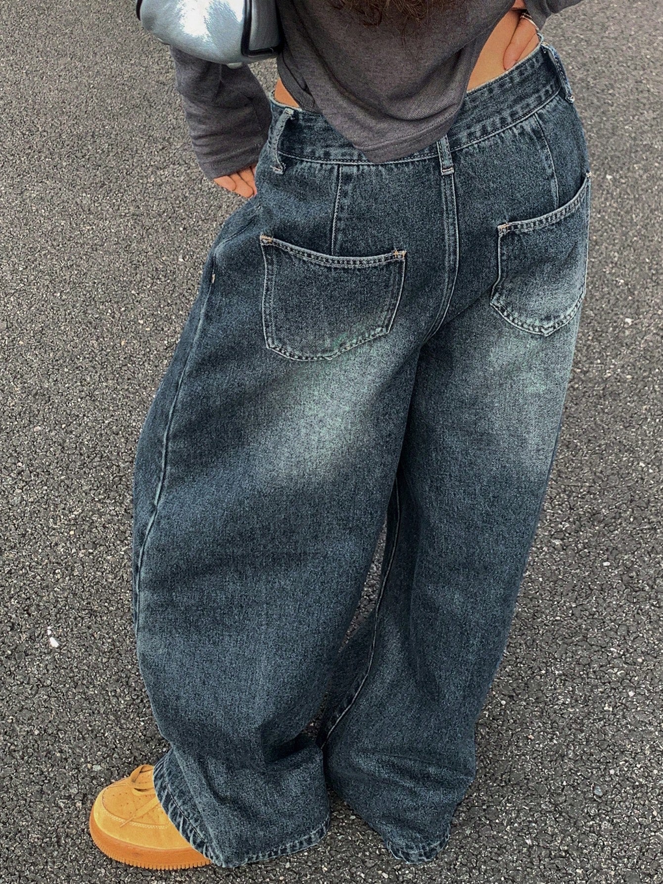 DAZY Vintage Loose Street Wash Faded Wide-Leg Women Baggy Jeans Y2k