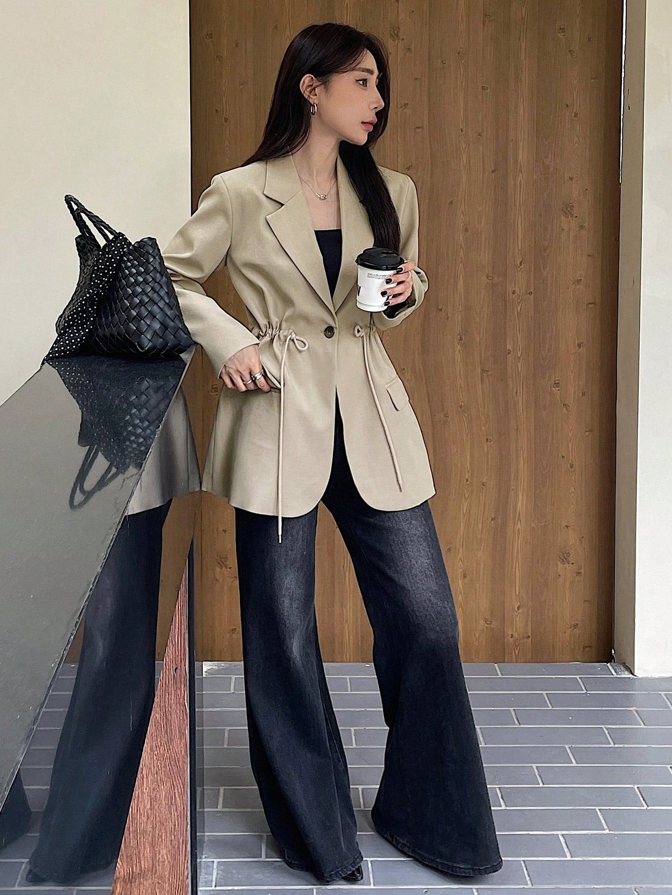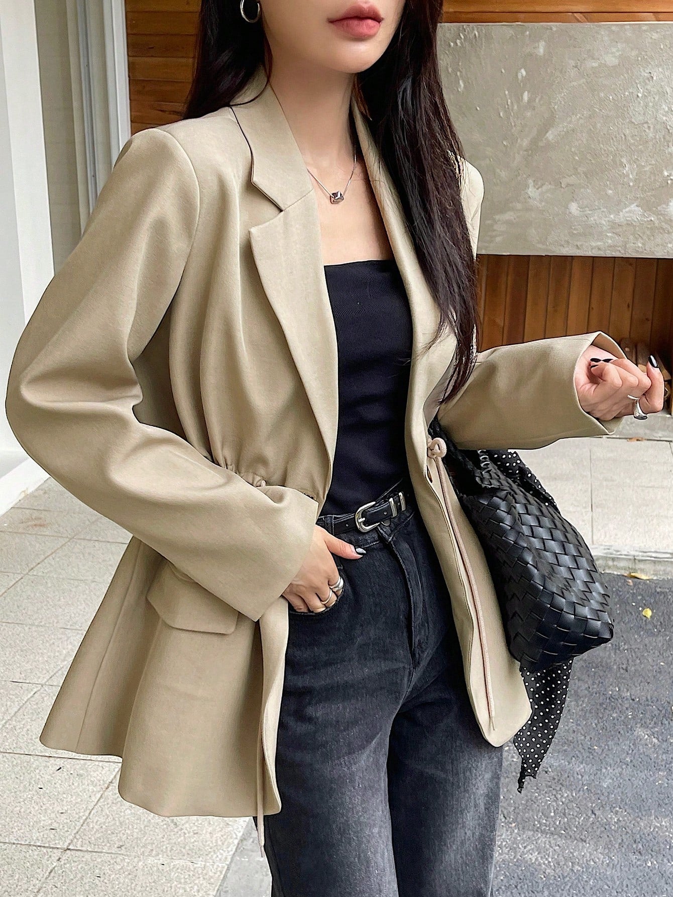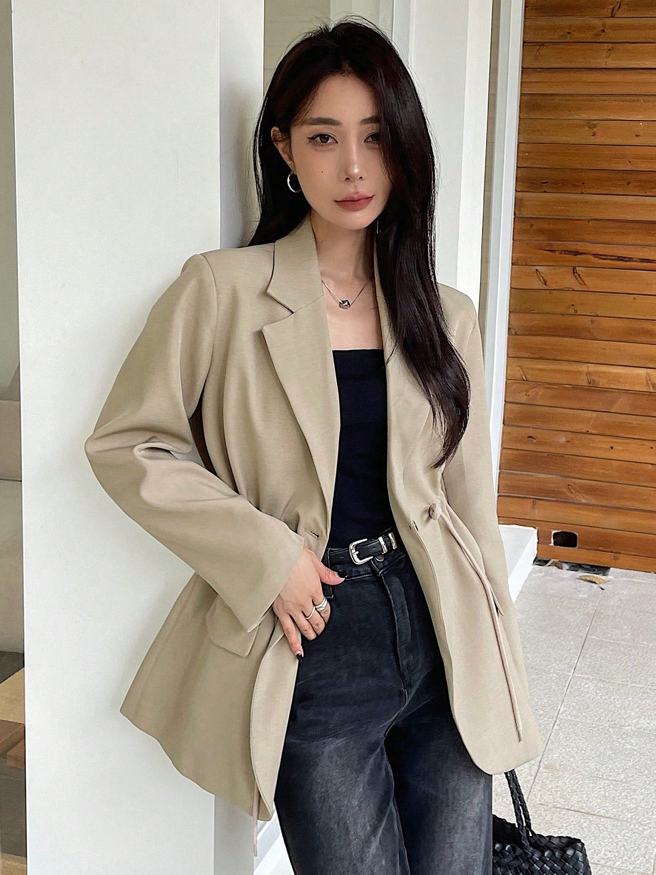 DAZY Women Casual/Work Solid Color Drawstring Waist Blazer,Fall Clothes