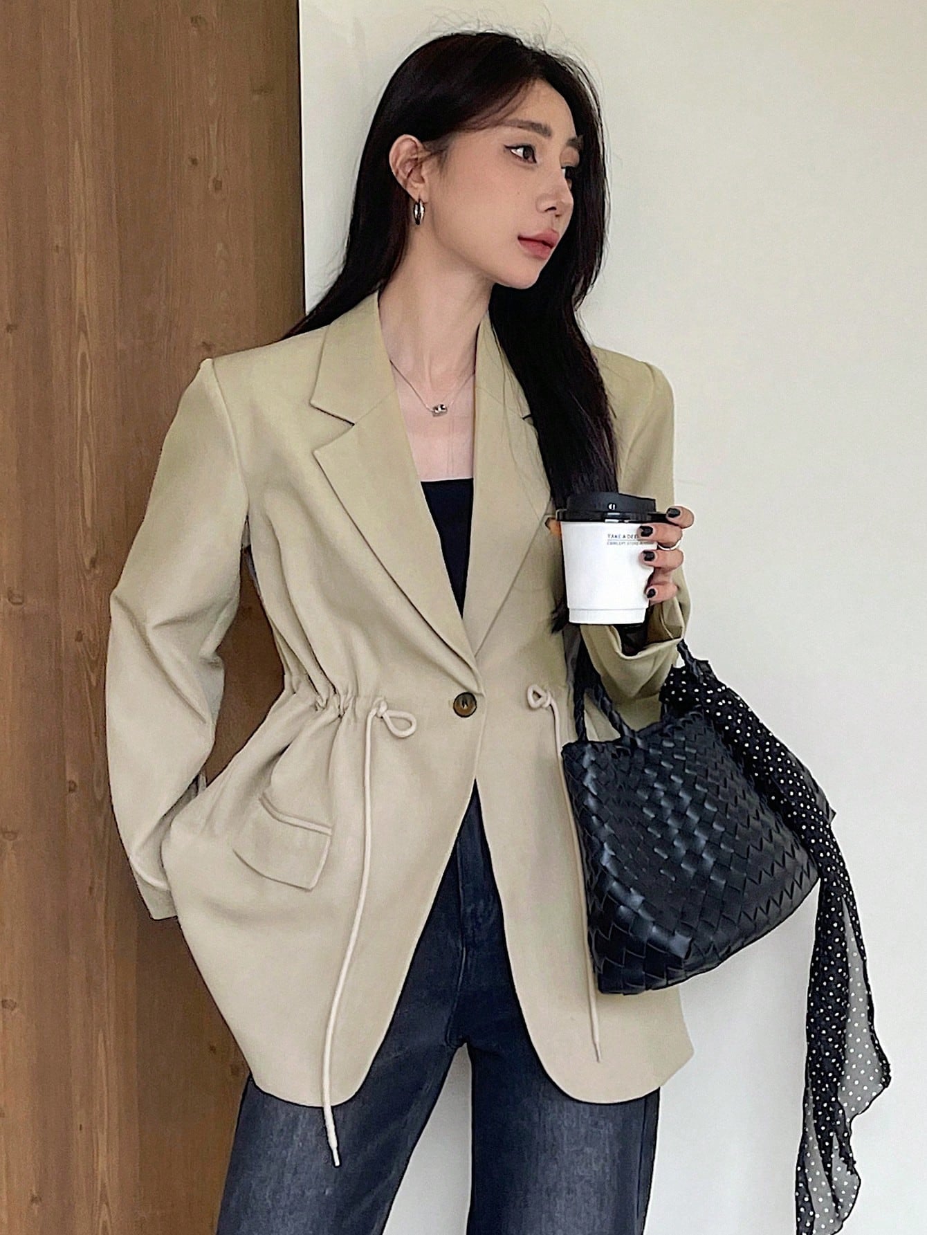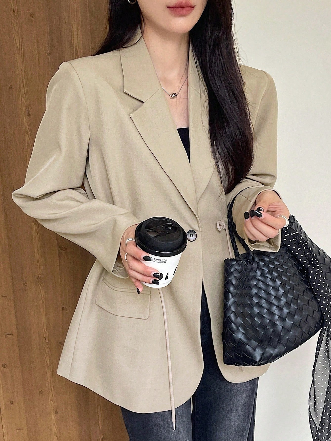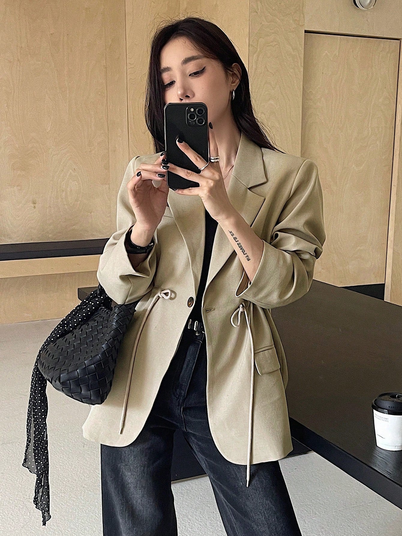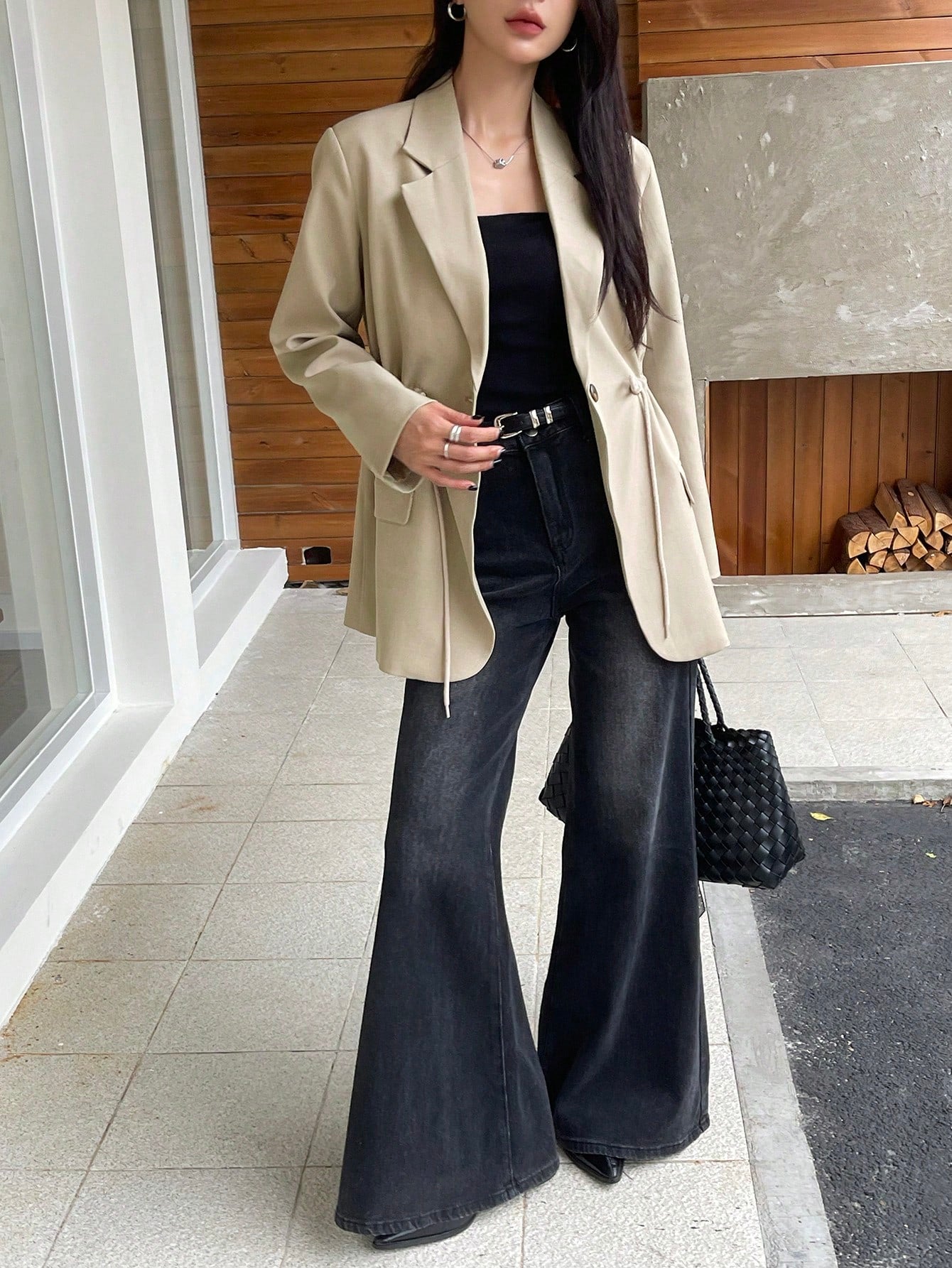 DAZY Women Casual/Work Solid Color Drawstring Waist Blazer,Fall Clothes