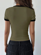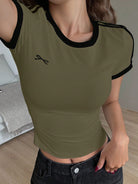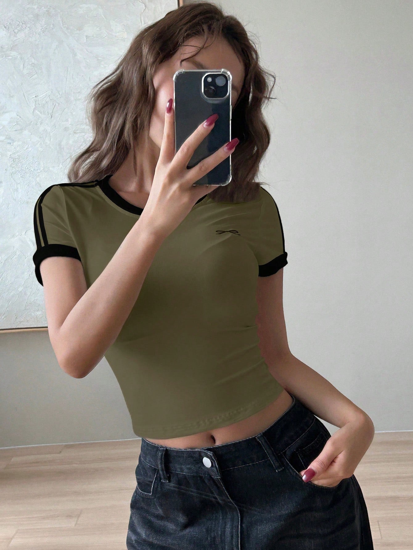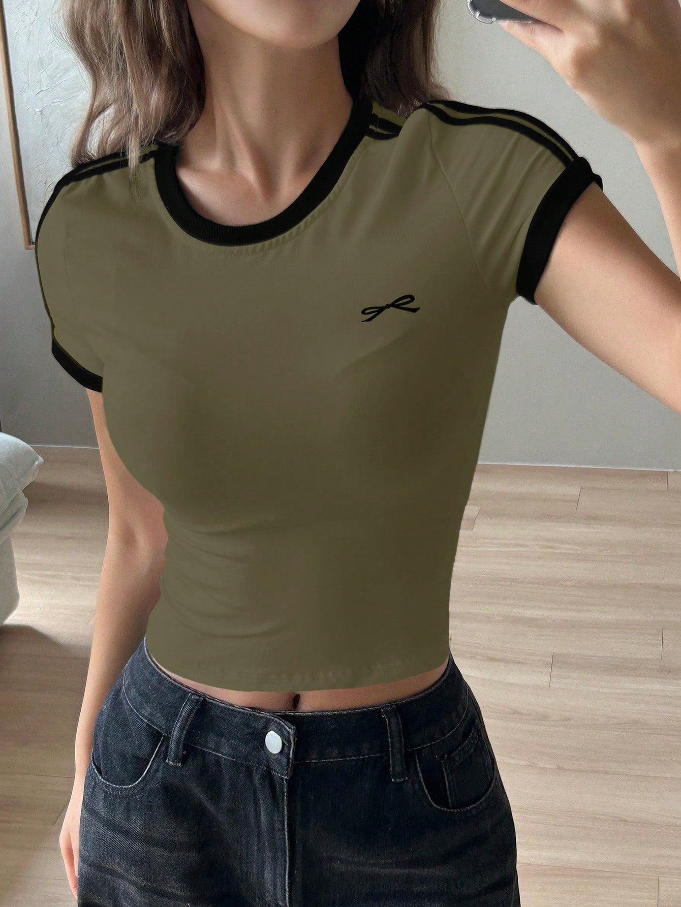 DAZY Women Summer Casual Patchwork Color Block Bow Print Slim Fit T-Shirt