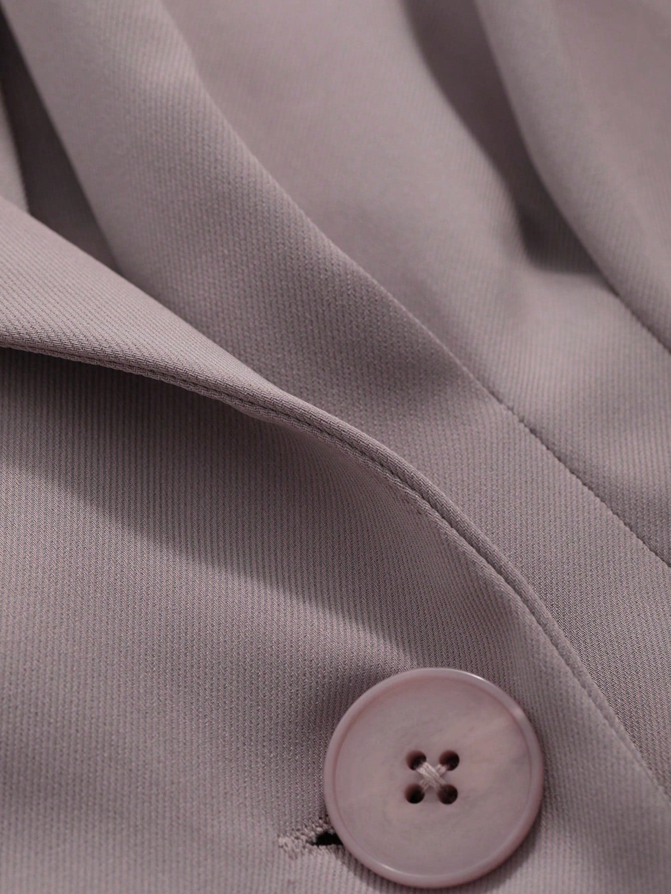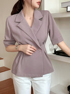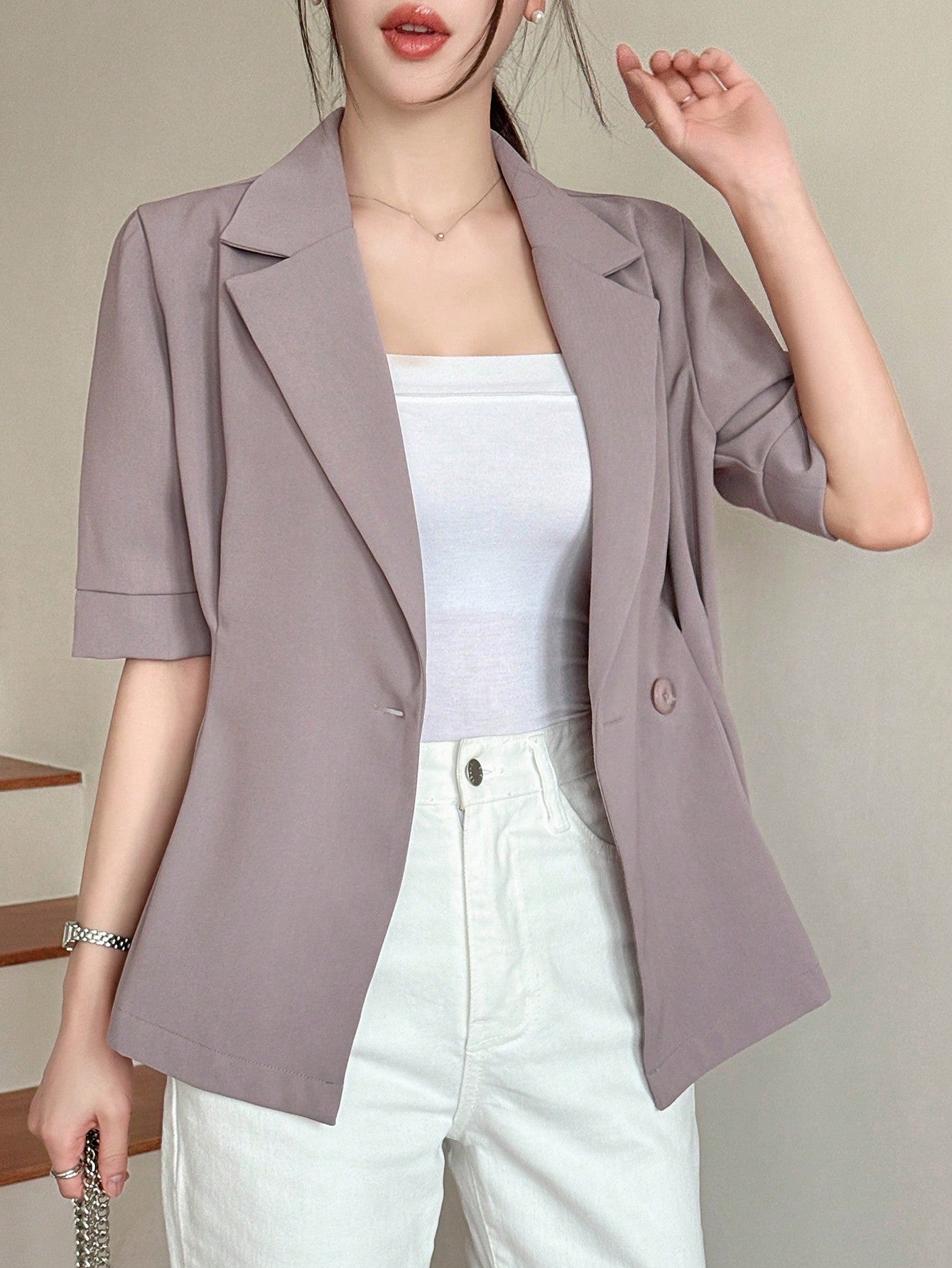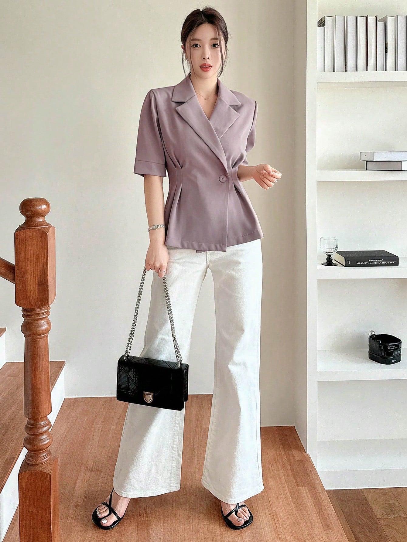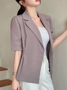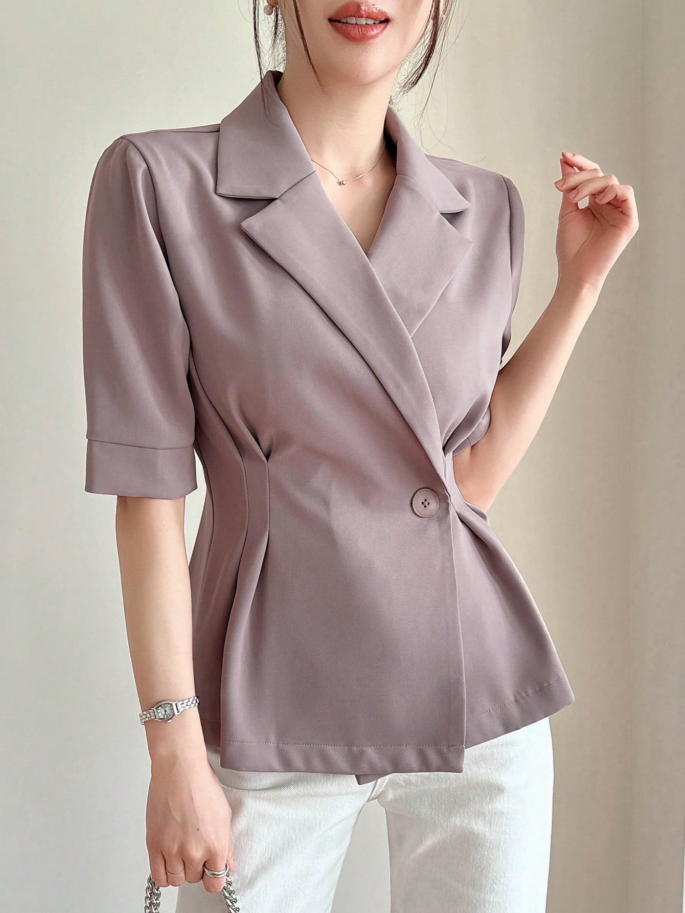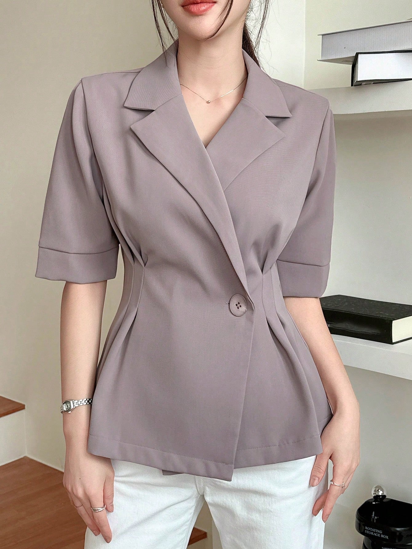 DAZY Women's Cross-Wrap Single-Button Short-Sleeved Blazer In Neutral Color